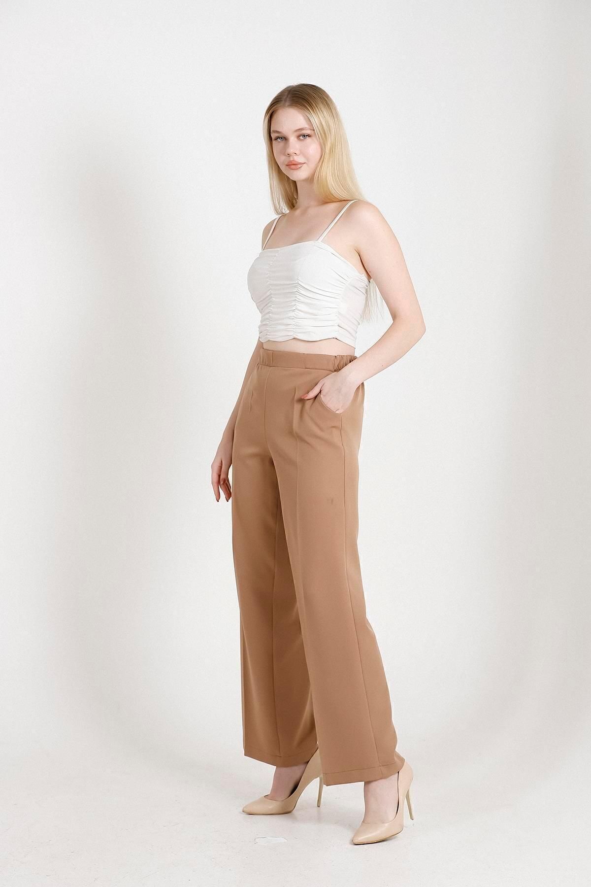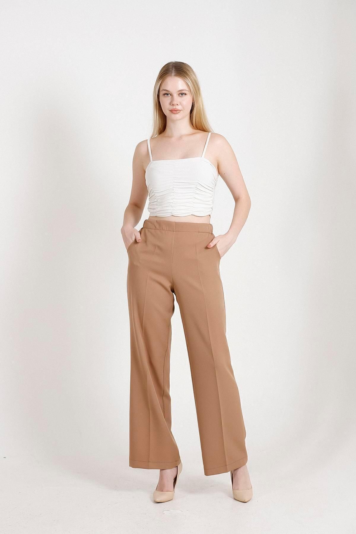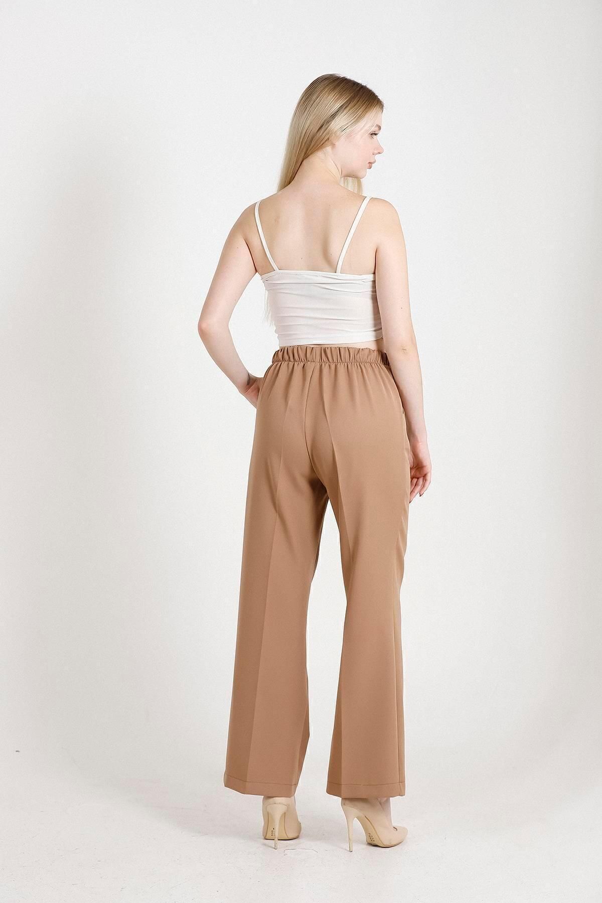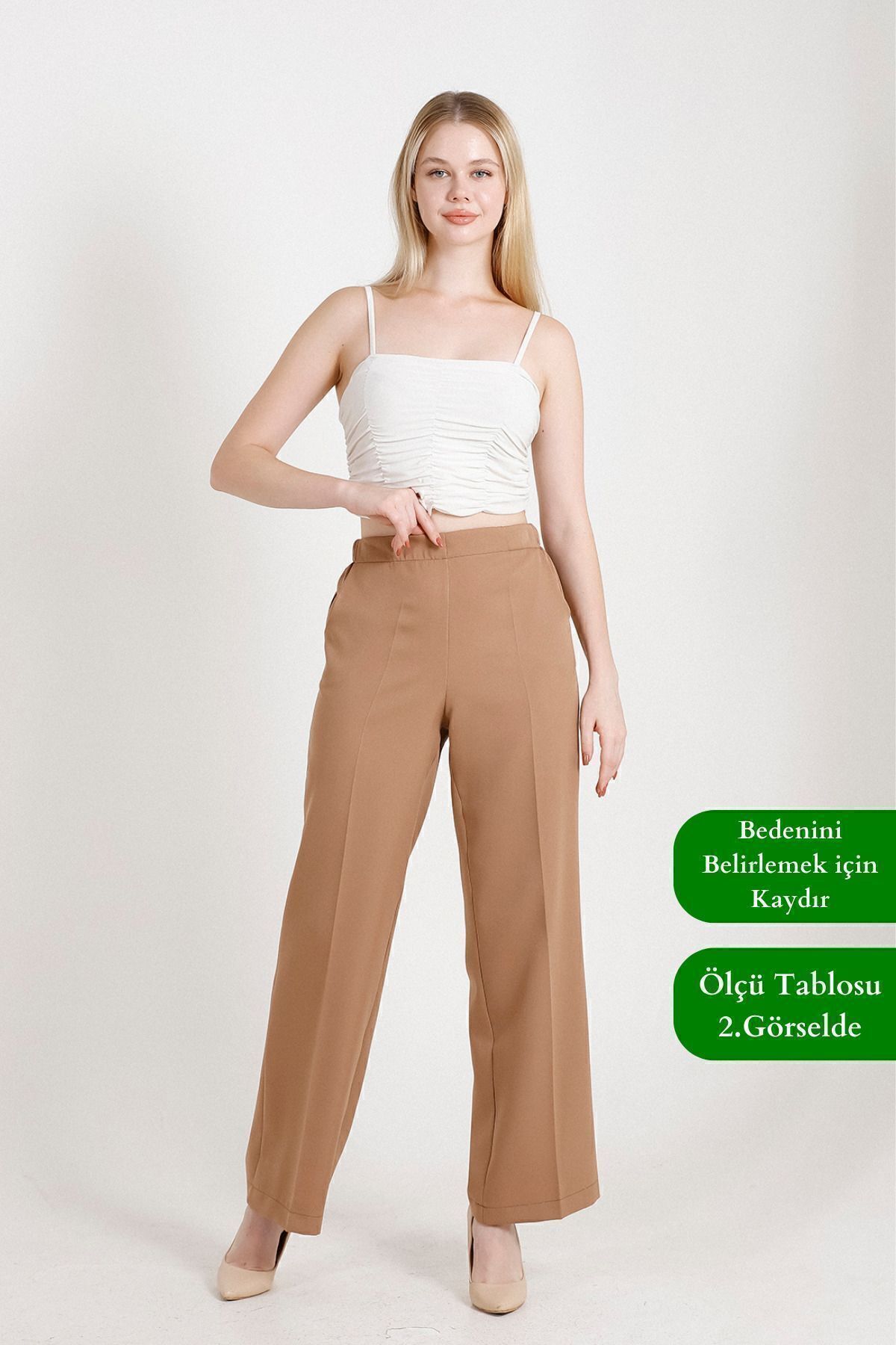 Balenbi Kadın Palazzo Yüksek Bel Likralı Dokuma Pantolon 1003 42 - Camel