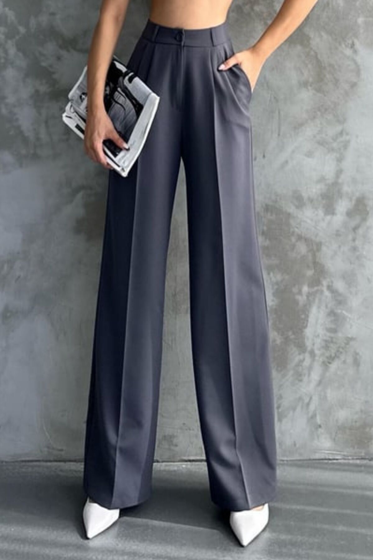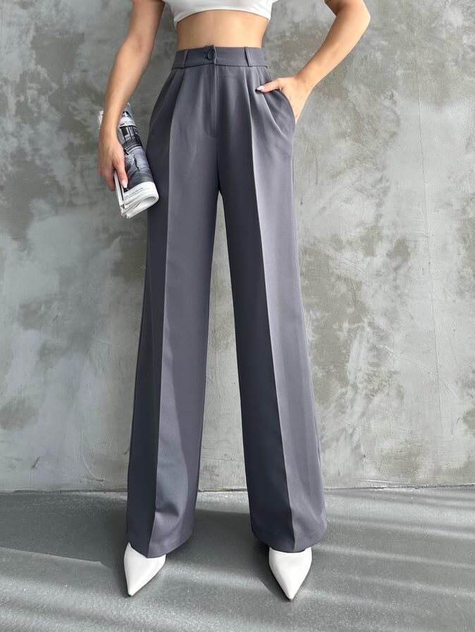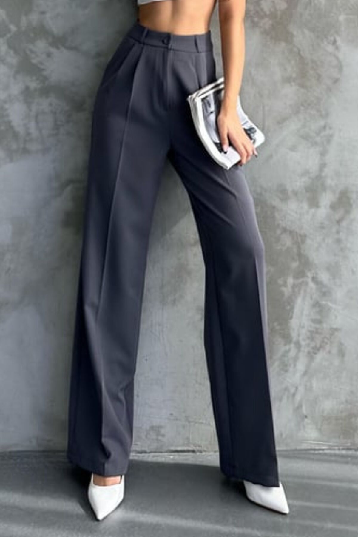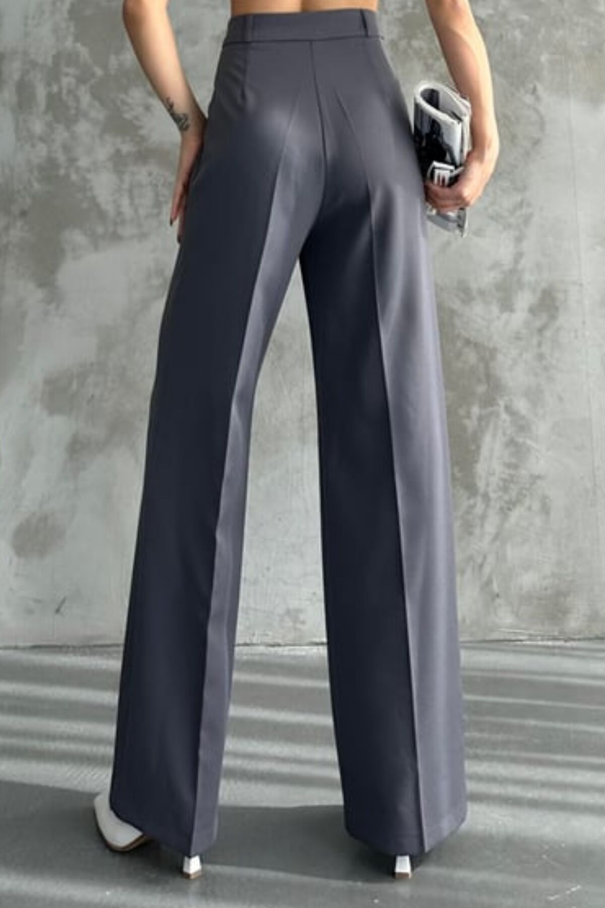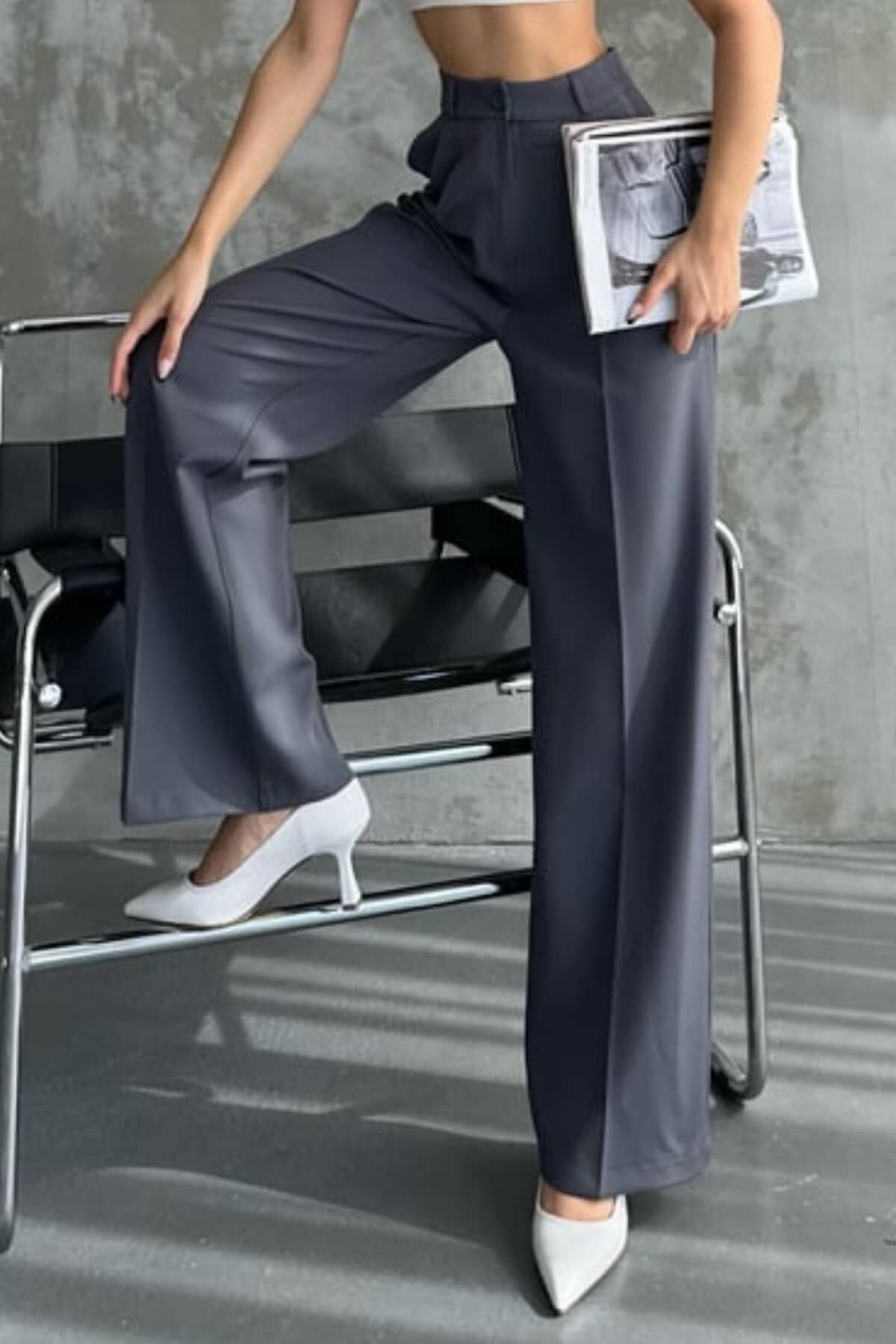 Balenbi Kadın Pileli Yüksek Bel Bol Paça Likralı Palazzo Pantolon 1139 36 - Gri