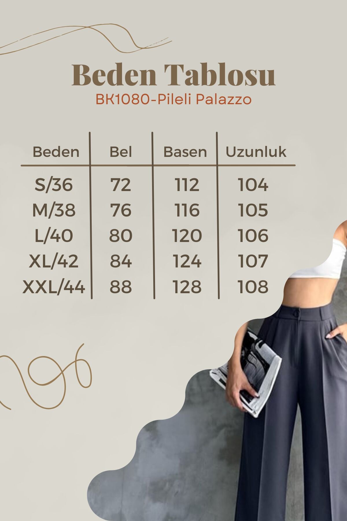 Balenbi Kadın Pileli Yüksek Bel Likralı Palazzo Pantolon 1080