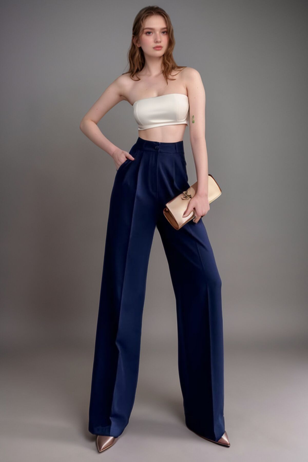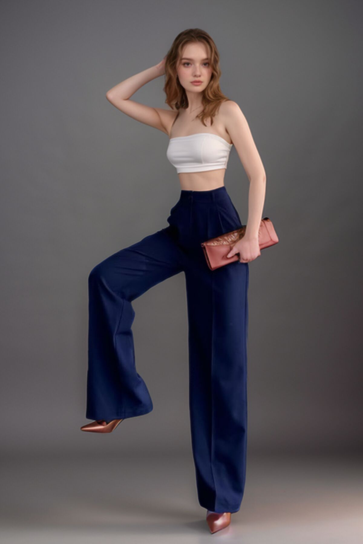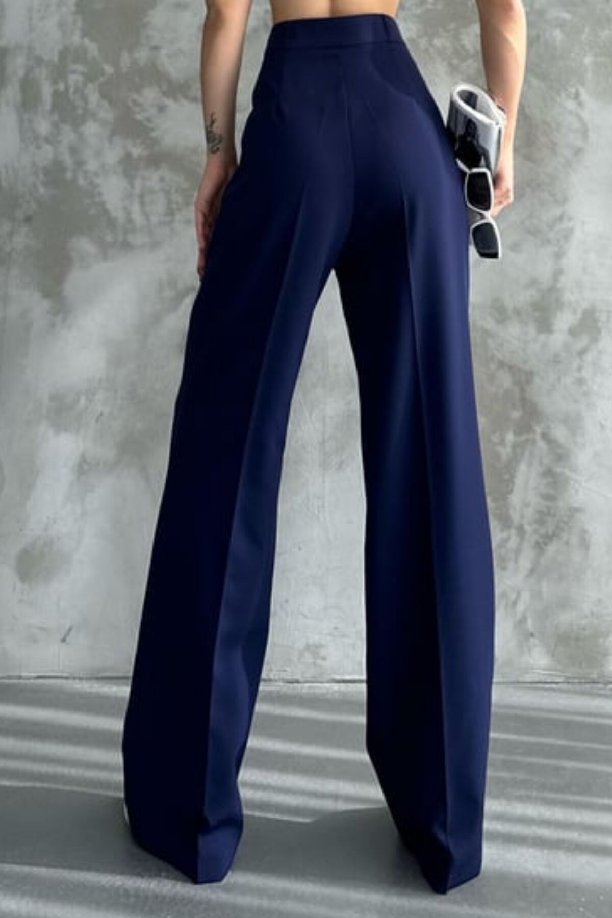 Balenbi Kadın Pileli Yüksek Bel Bol Paça Likralı Palazzo Pantolon 1139 34 - Lacivert
