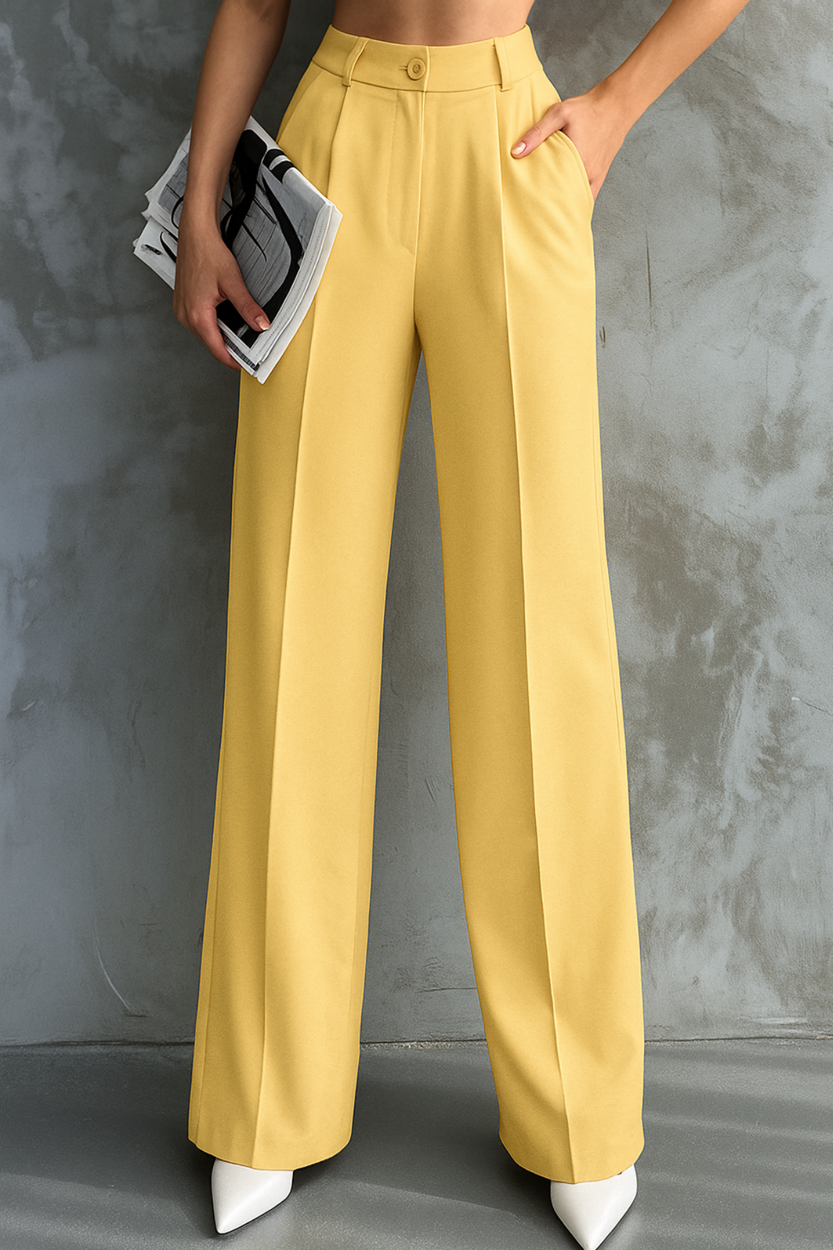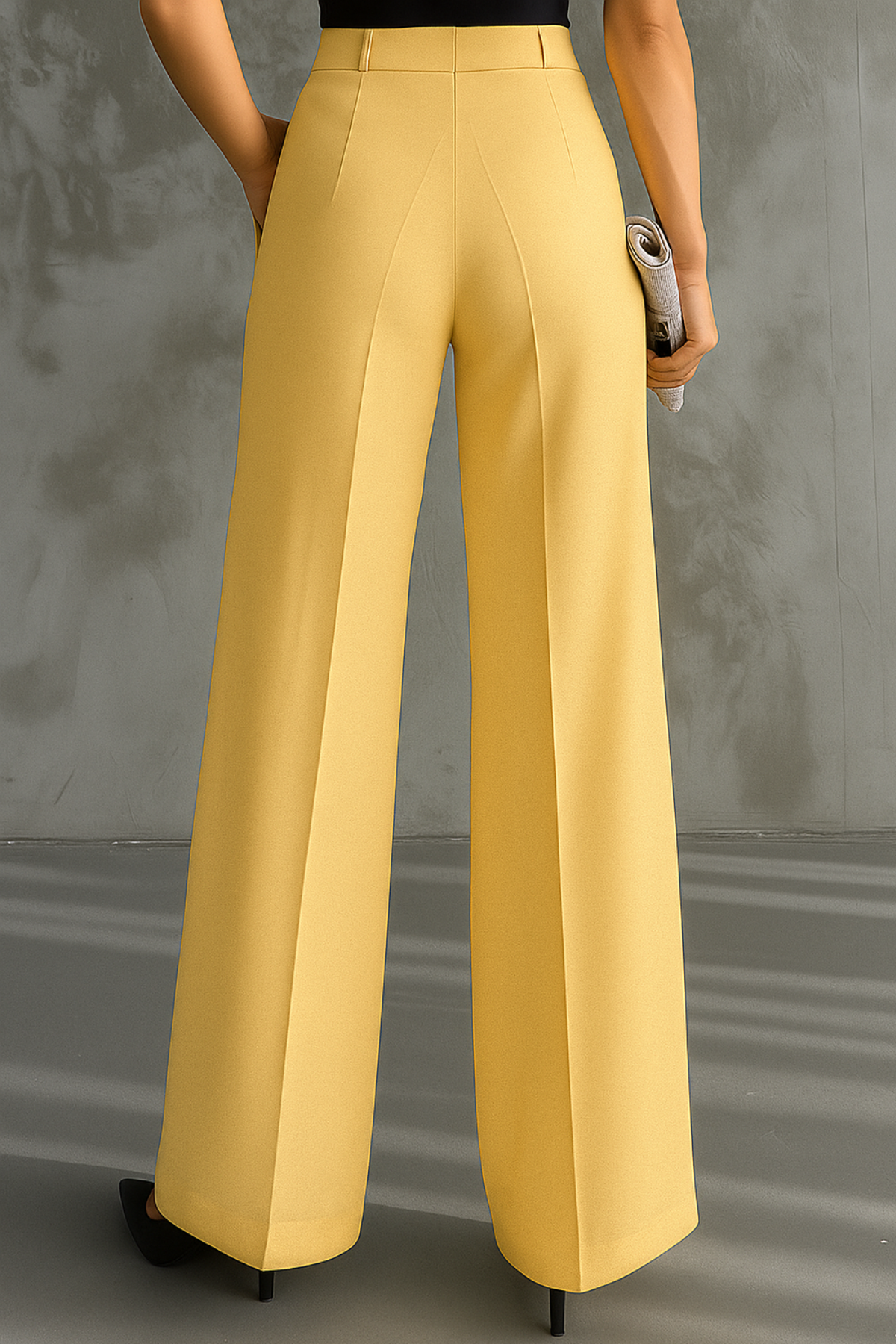 Balenbi Kadın Pileli Yüksek Bel Likralı Palazzo Pantolon 1080 34 - Sarı