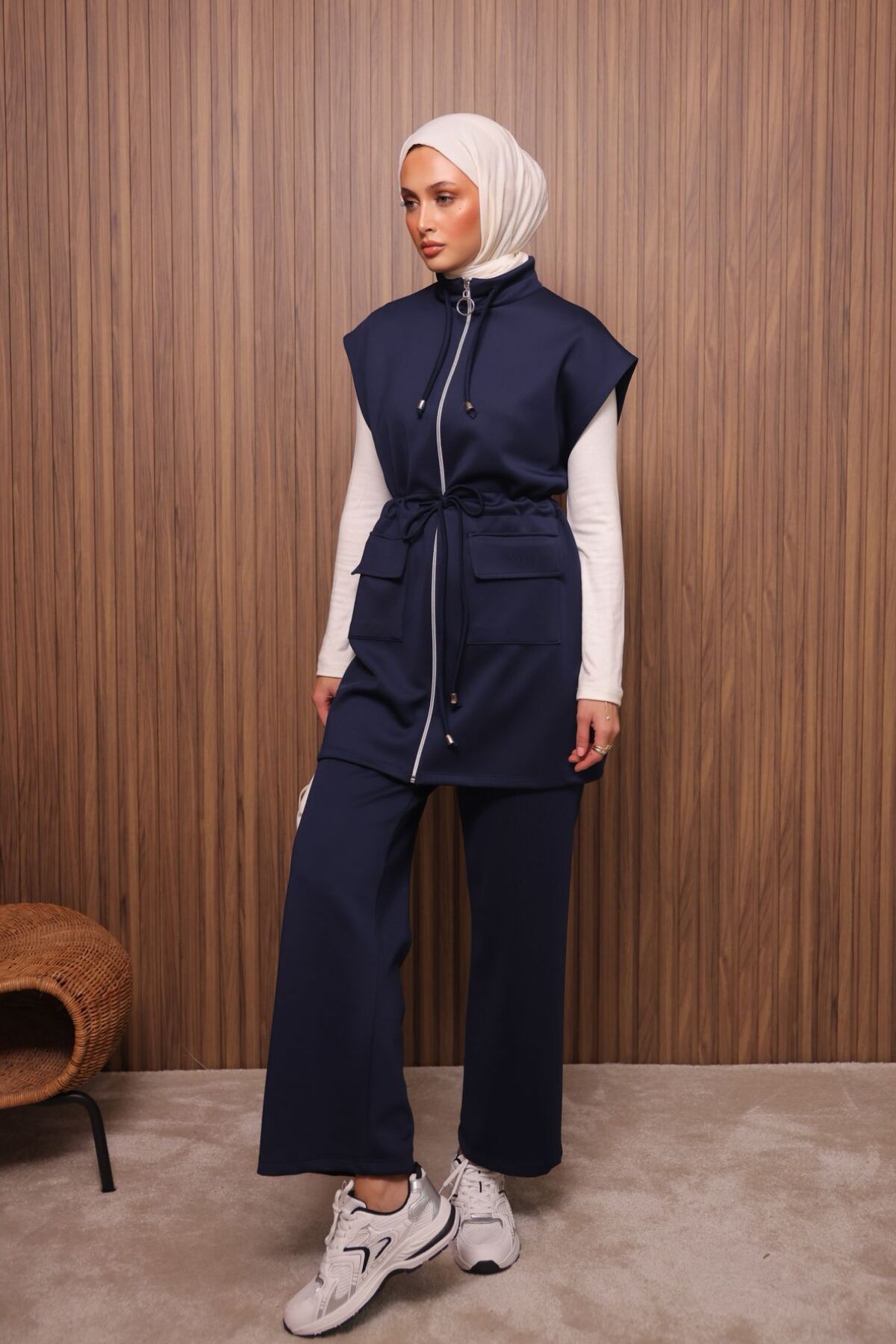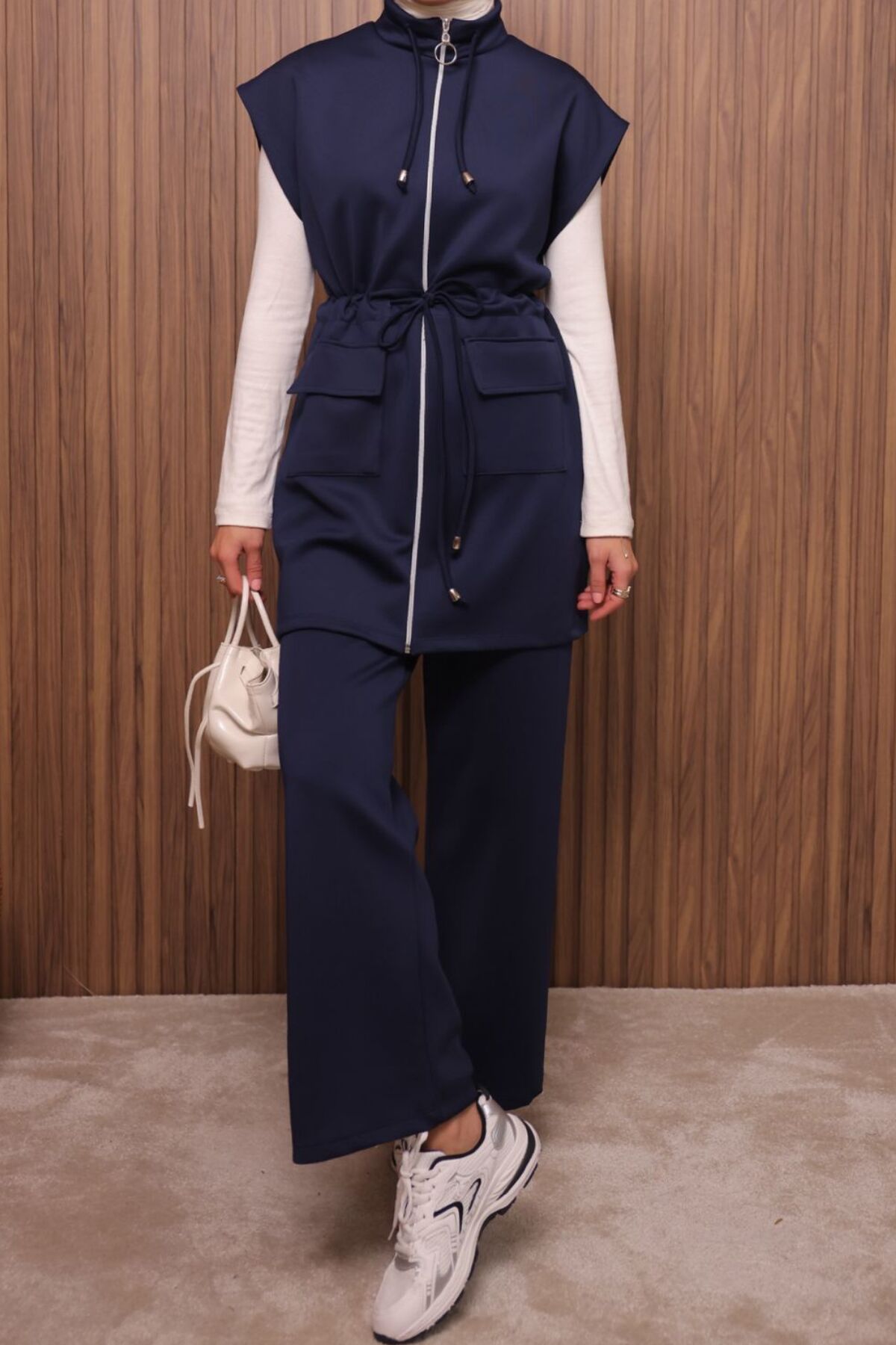 Balenbi Kadın Scuba Kumaş Beli Büzgü Kemerli Yelekli Tesettür Takım 1133 - Şık ve modern tasarımıyla dikkat çeken Scuba Kumaş Beli Büzgü Kemerli Yelekli Tesettür Takım, günlük kullanım için idealdir.; - Yelek ve pantolon olmak üzere iki parçadan oluşan bu takım, rahatlığı ve şıklığı bir arada sunar.; - Bağcıklı kemer detayı ile belinizi istediğiniz gibi ayarlayabilir ve vücut hatlarınıza göre şekillendirebilirsiniz.; - Çift cepli tasarımı sayesinde küçük eşyalarınızı yanınızda taşımanız için pratik bir çözüm sunar.; - Fermuar kapama şekli, kolay giyip çıkarmayı mümkün kılarken aynı zamanda şık bir görünüm sağlar.; - Kolsuz yelek tasarımı ile yaz aylarında serinlik hissi verirken, katmanlı giyim imkanı sunar.; - Tesettür giyim tarzına uygun olarak tasarlanmış bu takım, zarif ve modern bir siluet oluşturur.; - Çift cepli yapısı ile fonksiyonellik katarken, aynı zamanda estetik bir dokunuş sunar.; - Bağcıklı kemer detayı sayesinde belinizi istediğiniz gibi ayarlayabilir ve vücut hatlarınıza göre şekillendirebilirsiniz.; - Fermuar kapama şekli, kolay giyip çıkarmayı mümkün kılarken aynı zamanda şık bir görünüm sağlar.; - Tesettür giyim tarzına uygun olarak tasarlanmış bu takım, zarif ve modern bir siluet oluşturur.; - Çift cepli yapısı ile fonksiyonellik katarken, aynı zamanda estetik bir dokunuş sunar.; - Bağcıklı kemer detayı sayesinde belinizi istediğiniz gibi ayarlayabilir ve vücut hatlarınıza göre şekillendirebilirsiniz.; - Fermuar kapama şekli, kolay giyip çıkarmayı mümkün kılarken aynı zamanda şık bir görünüm sağlar.; - Tesettür giyim tarzına uygun olarak tasarlanmış bu takım, zarif ve modern bir siluet oluşturur.;