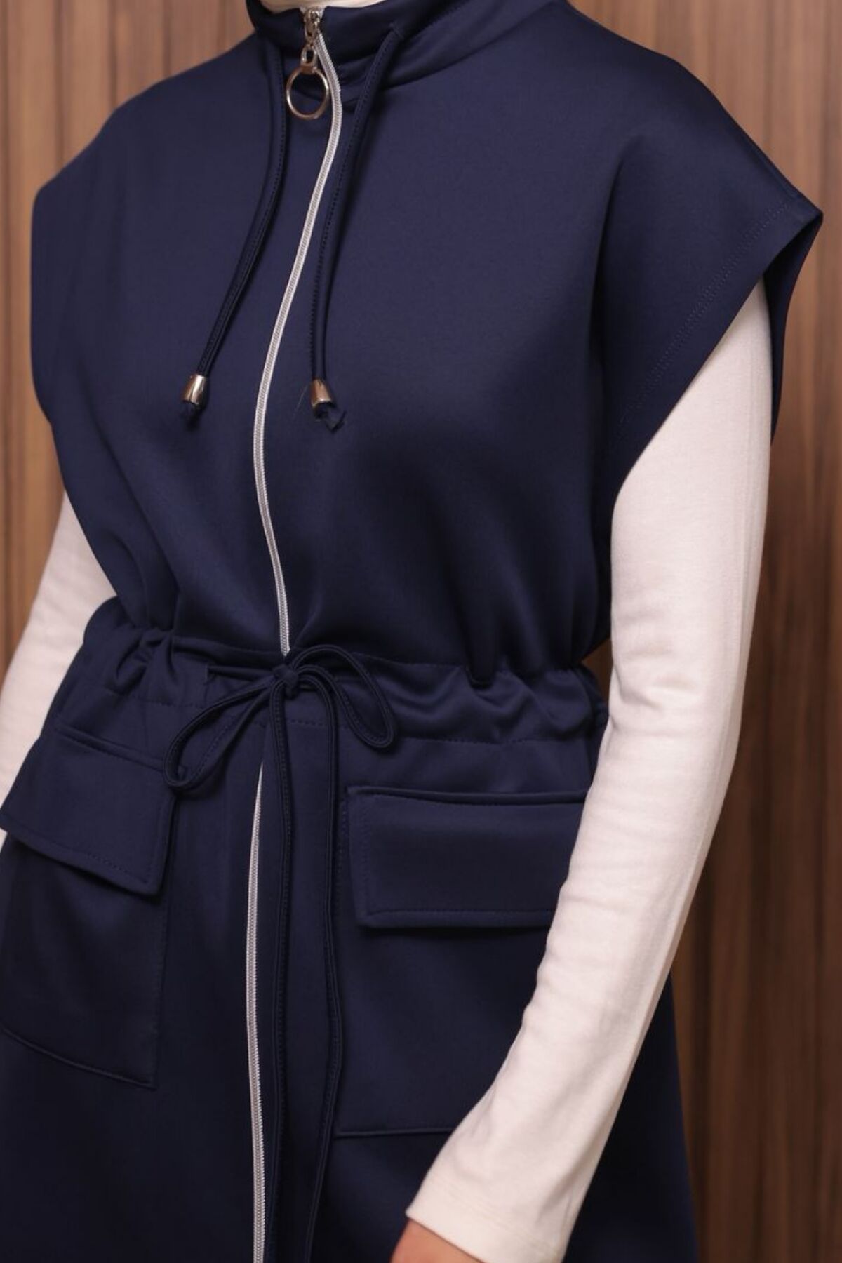 Balenbi Kadın Scuba Kumaş Beli Büzgü Kemerli Yelekli Tesettür Takım 1133 M - Lacivert
