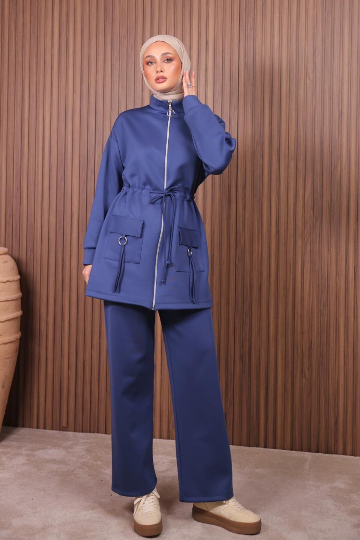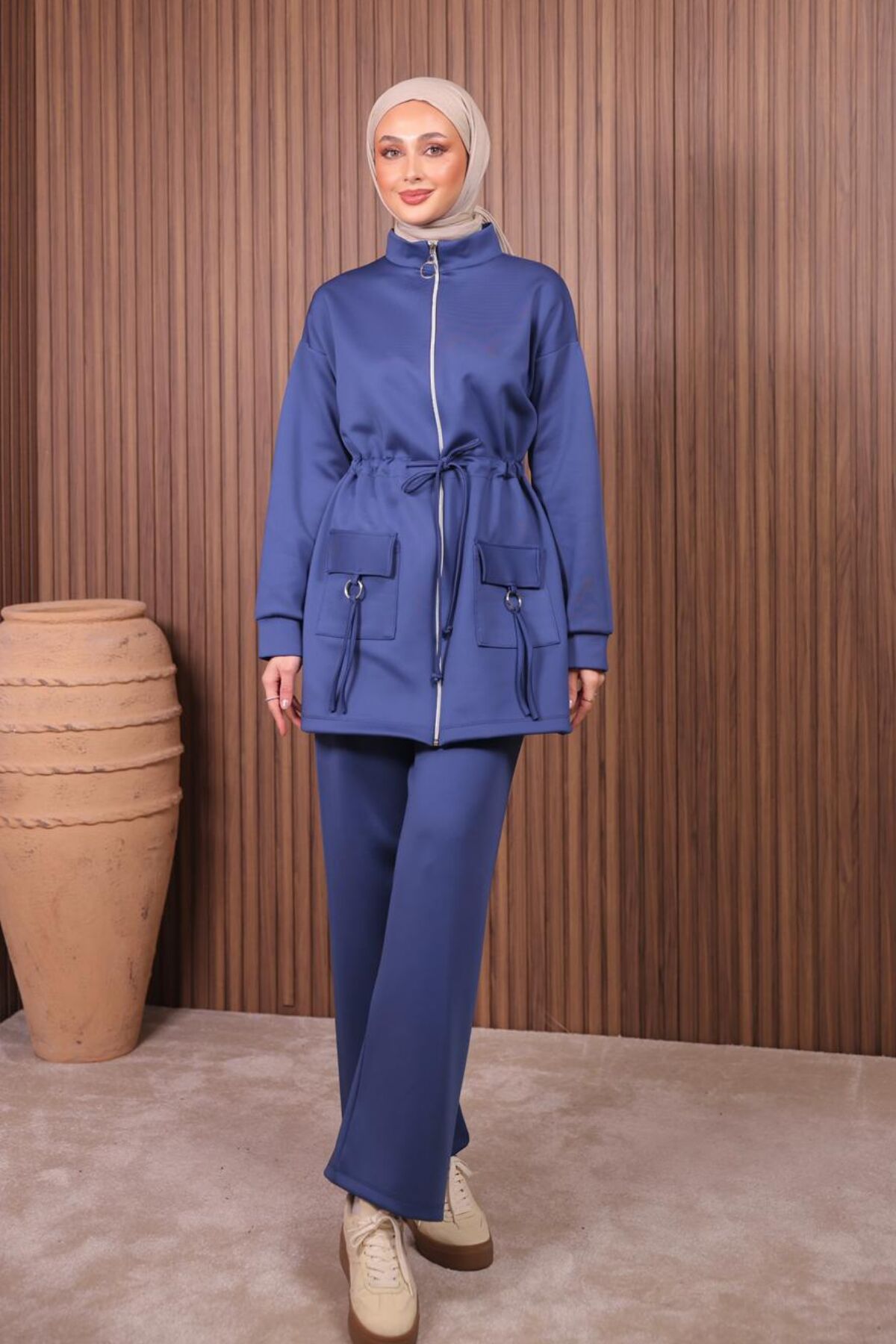 Balenbi Kadın Scuba Kumaş Cep Detaylı Fermuarlı Tesettür Takım 1120 - Dik yaka tasarımı ile modern ve şık bir görünüm sunar.; - Beli lastikli silueti sayesinde rahat bir kullanım sağlar ve vücut hatlarınıza uyum sağlar.; - Full fermuar kapama özelliği ile kolay giyilip çıkarılabilir ve pratik bir kullanım sunar.; - Kış sezonunda sıcak tutan yapısıyla konforlu bir deneyim yaşatır.; - Takma kol detayı ile hareket özgürlüğünüzü kısıtlamaz.; - Dalgıç/Scuba kumaş tipi, dayanıklılığı ve esnekliği ile öne çıkar.; - Regular kalıp, her bedene uygun rahat bir oturuş sunar.;