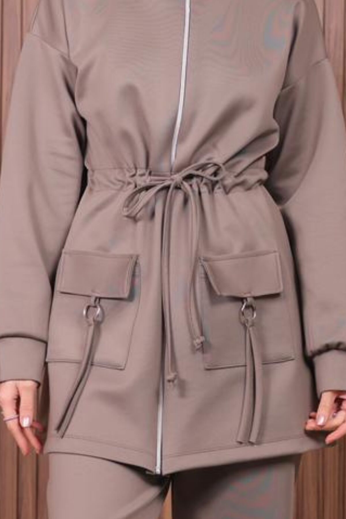 Balenbi Kadın Scuba Kumaş Cep Detaylı Fermuarlı Tesettür Takım 1120 XL - Vizon