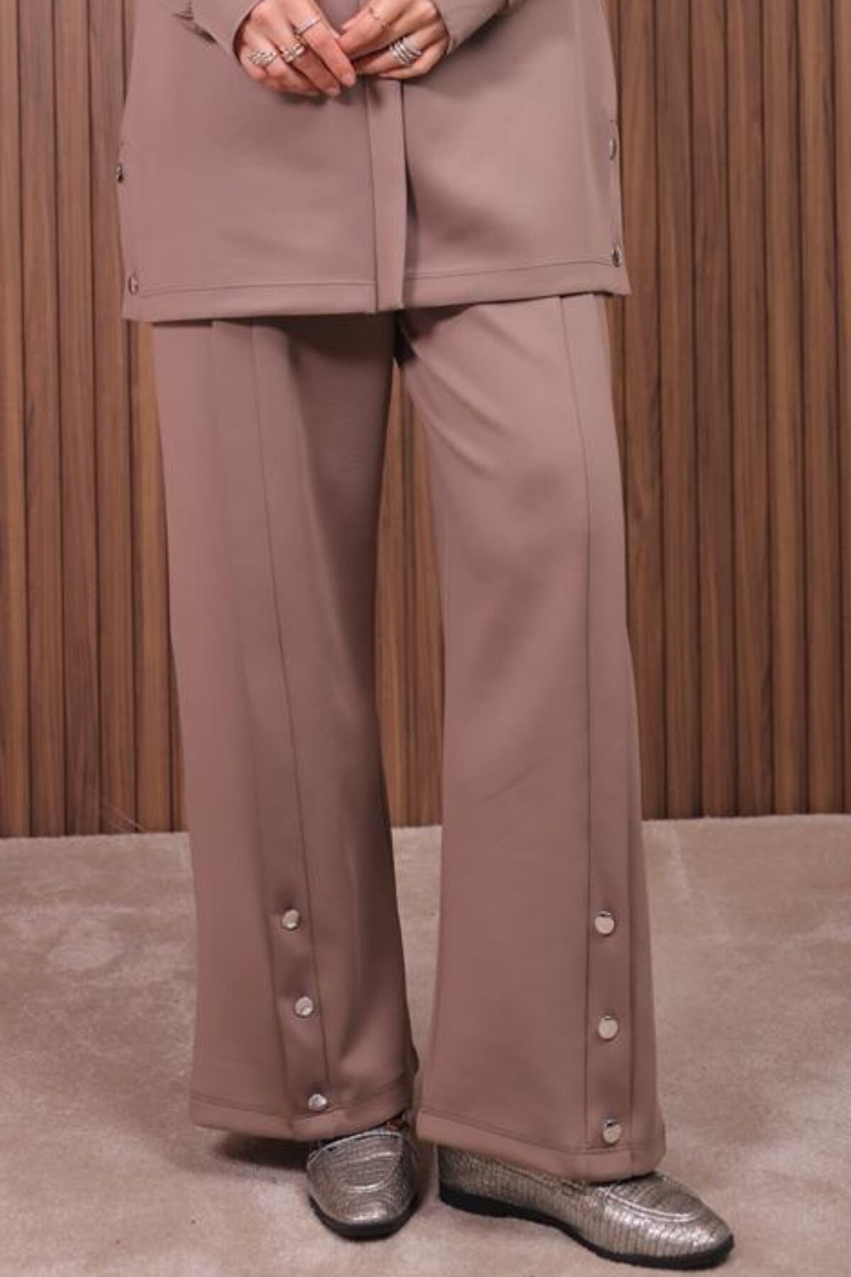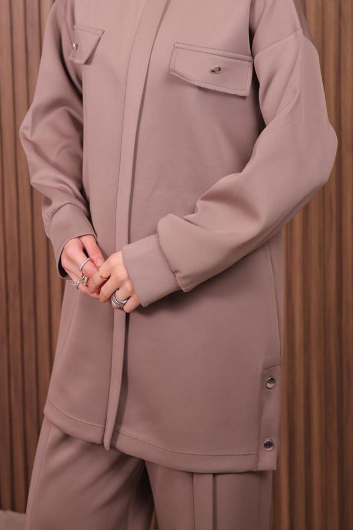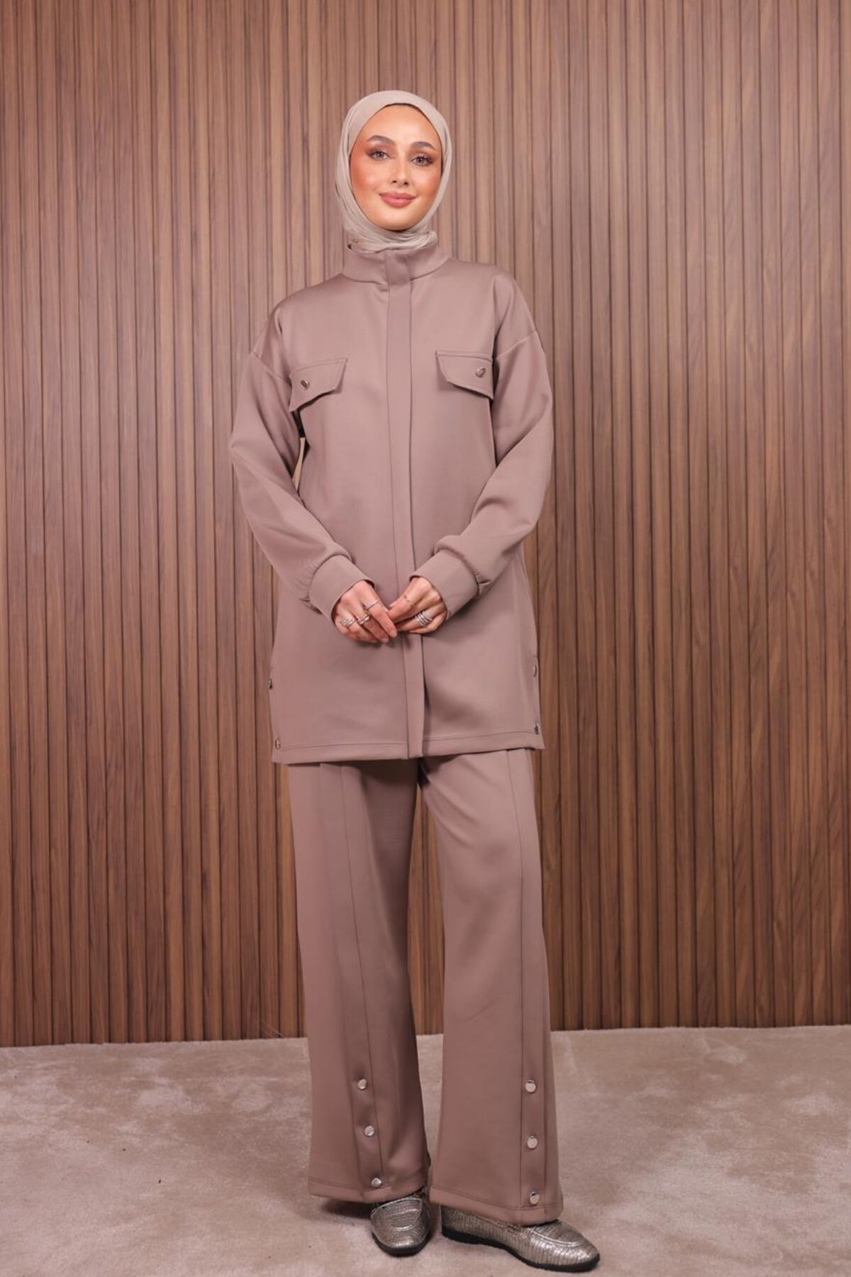 Balenbi Kadın Scuba Kumaş Pantolon Düğme Detaylı Tesettür Takım 1122 XL - Vizon