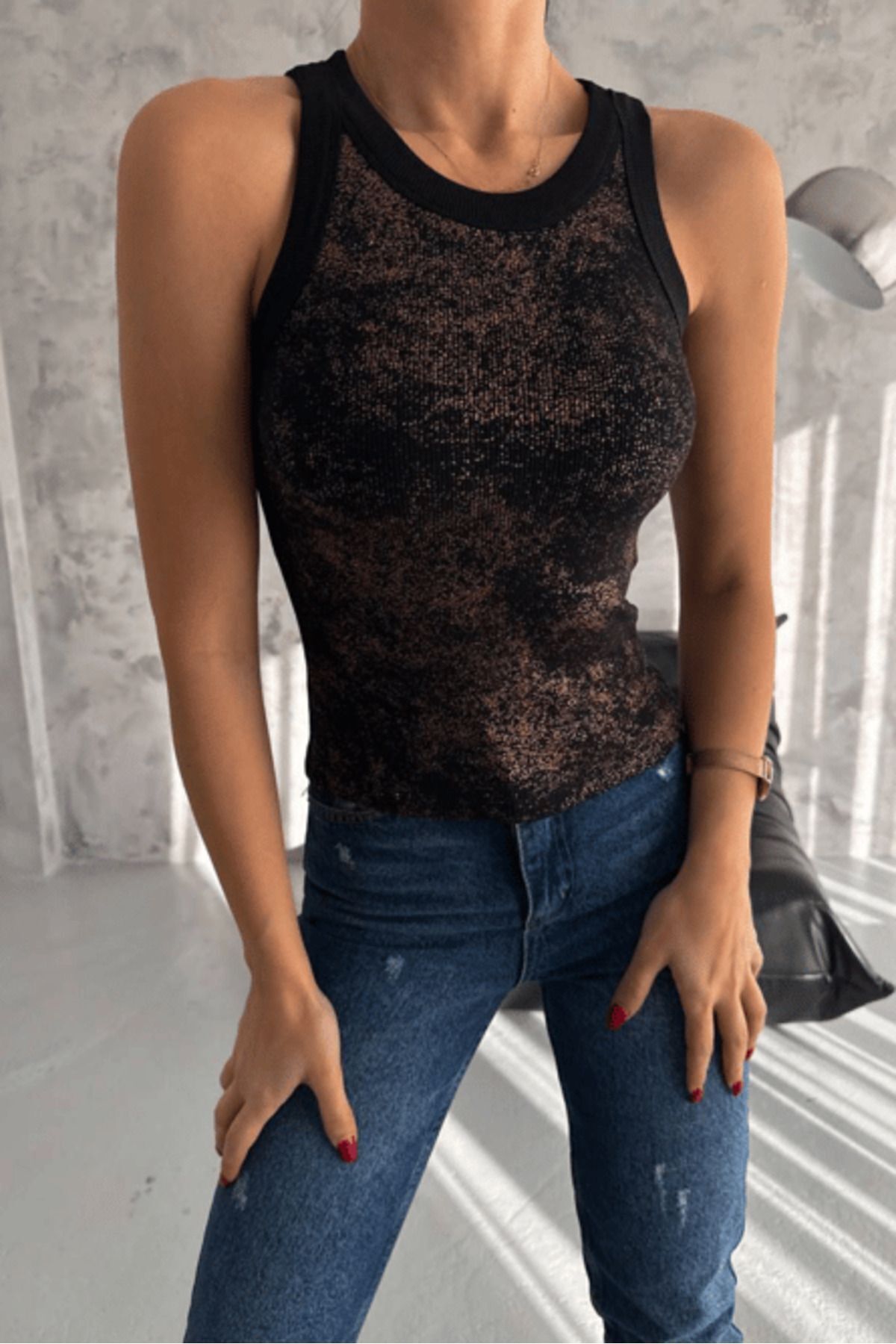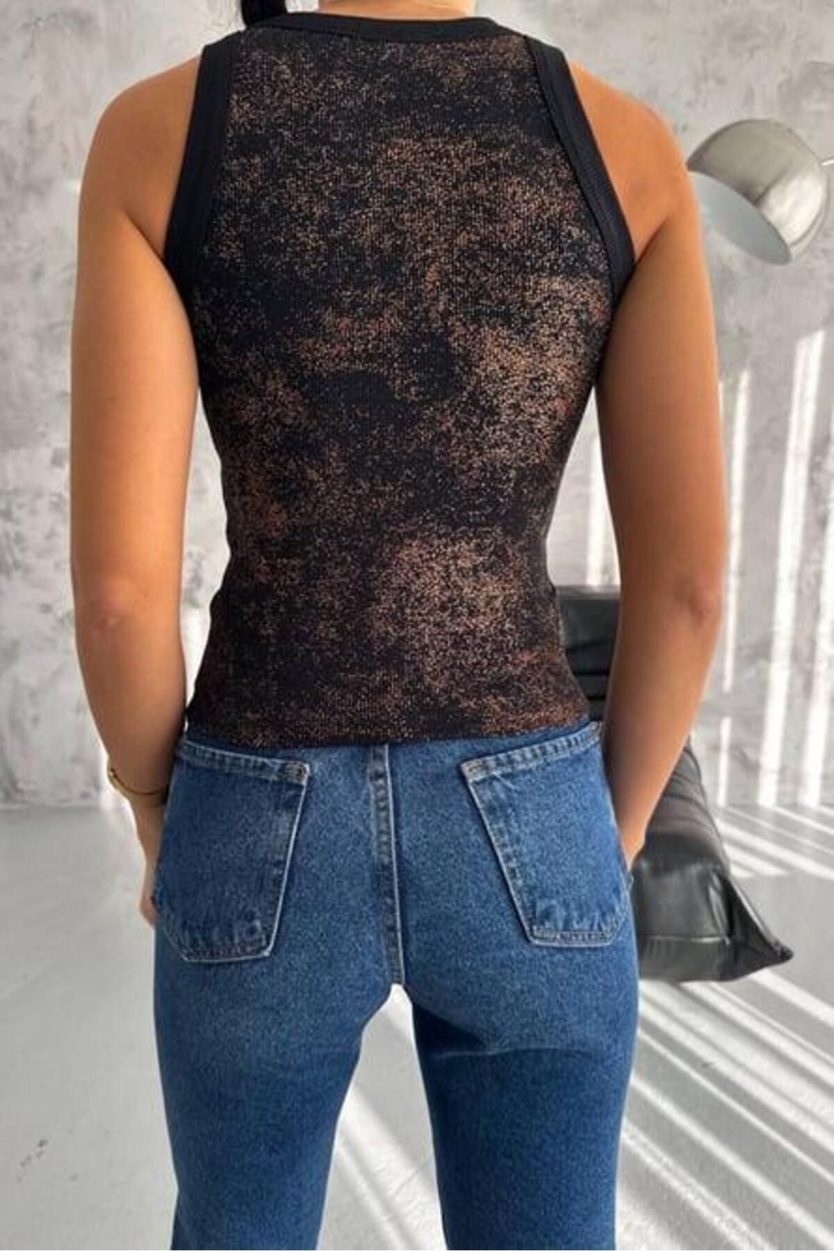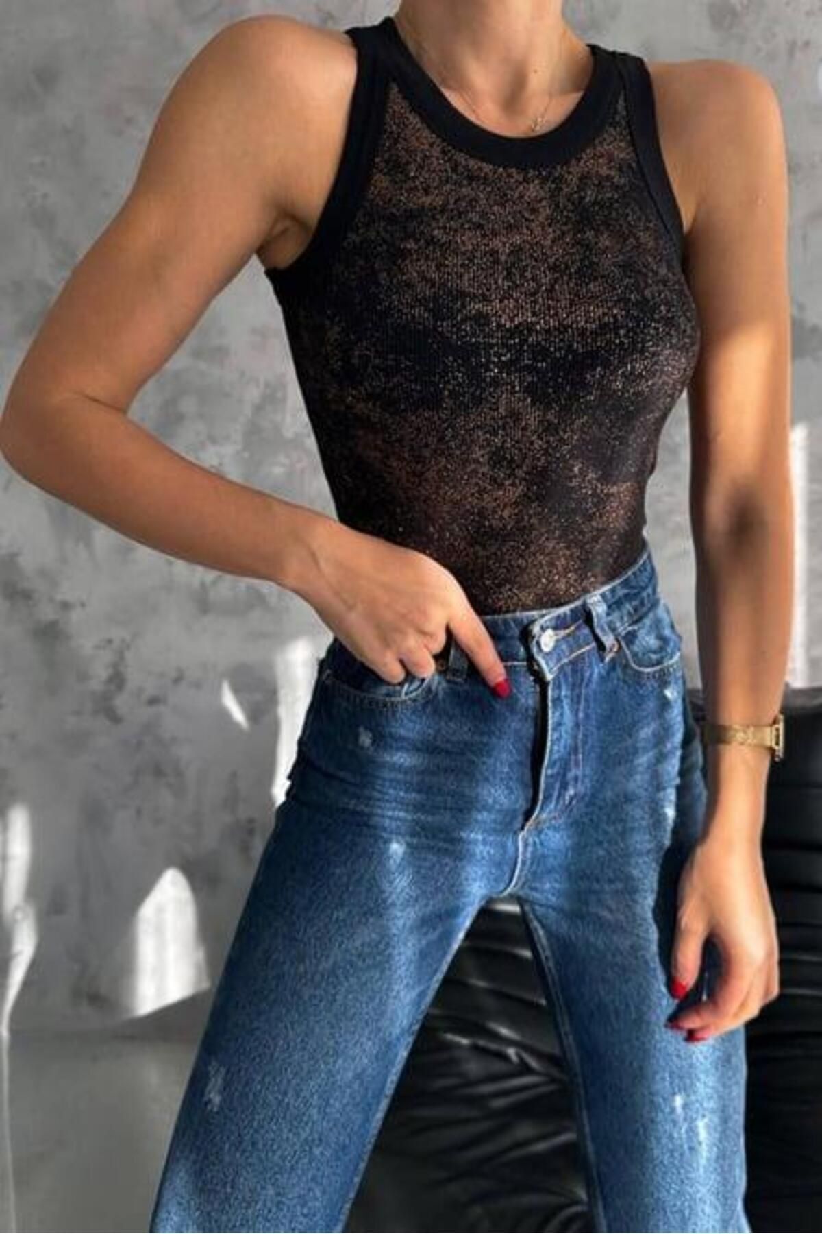 Balenbi Kadın Sim Baskılı Kolsuz Kaşkorse Body 1065 S - Siyah 2