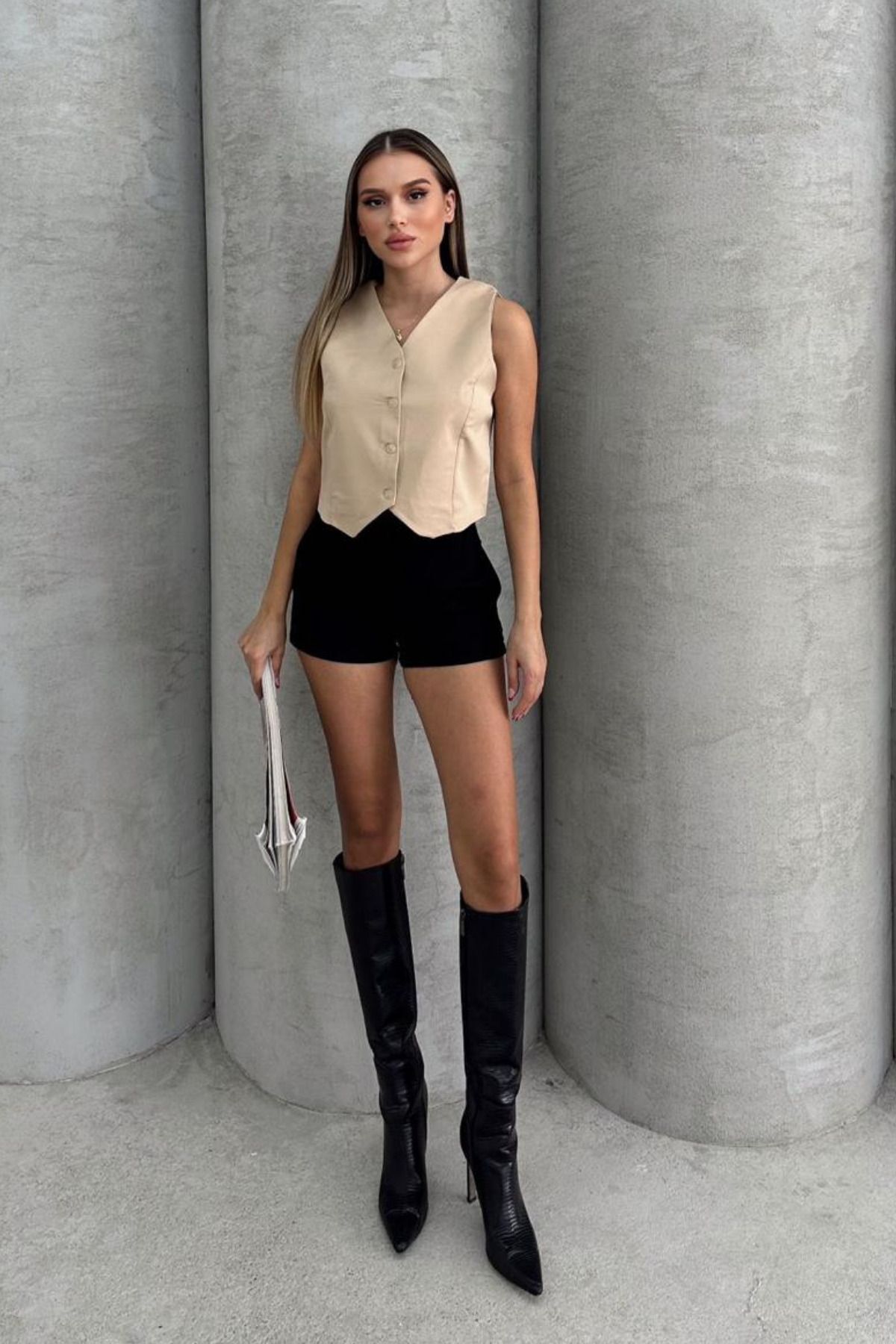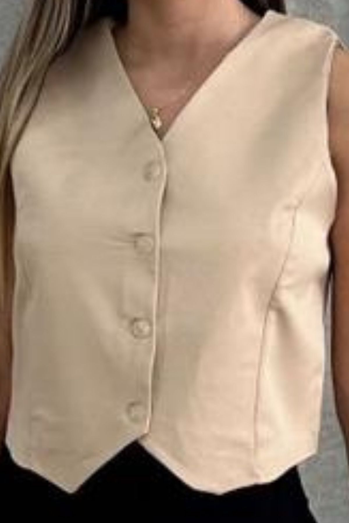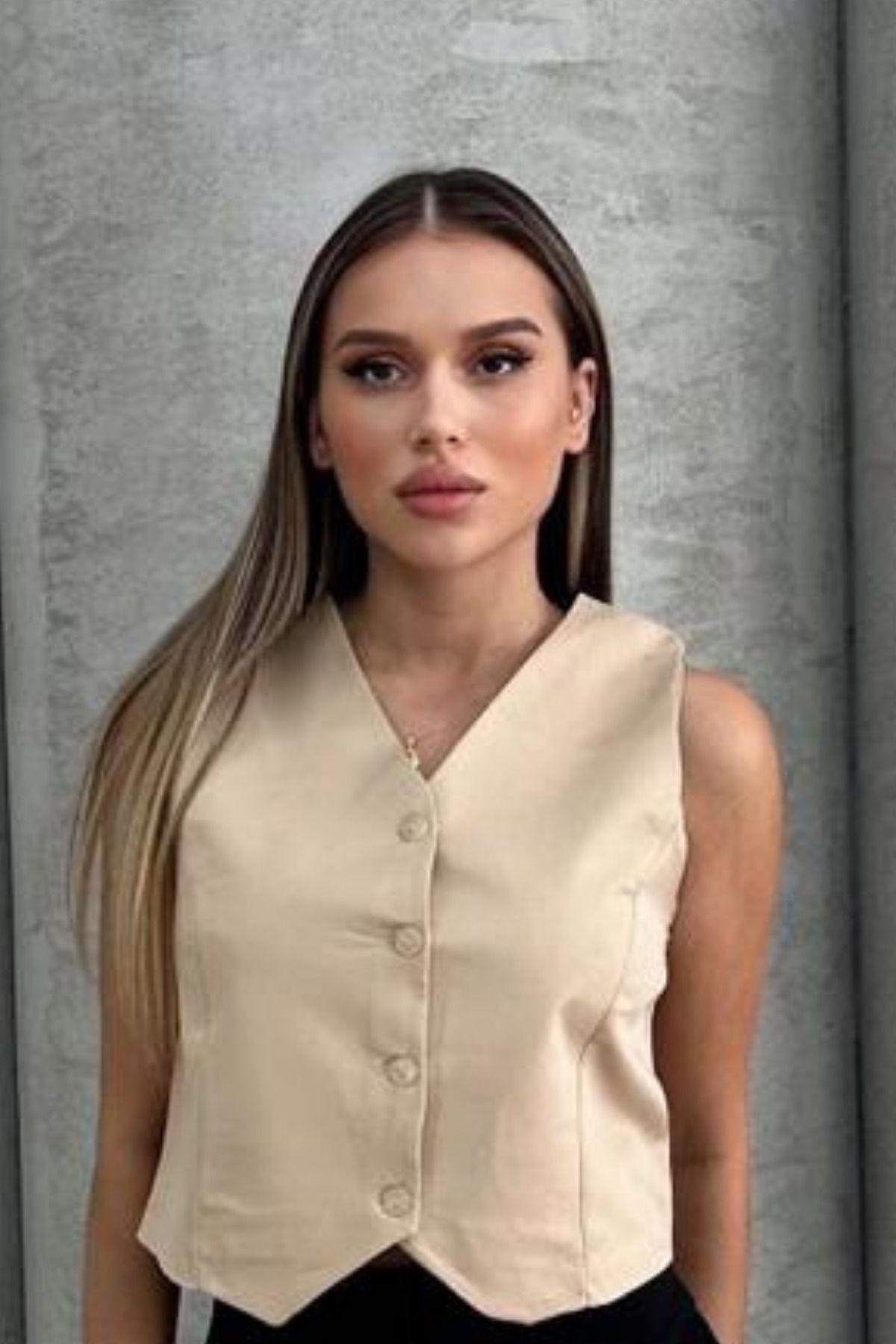 Balenbi Kadın V Yaka Kısa Double Krep Dokuma Yelek 1088 XL - Bej