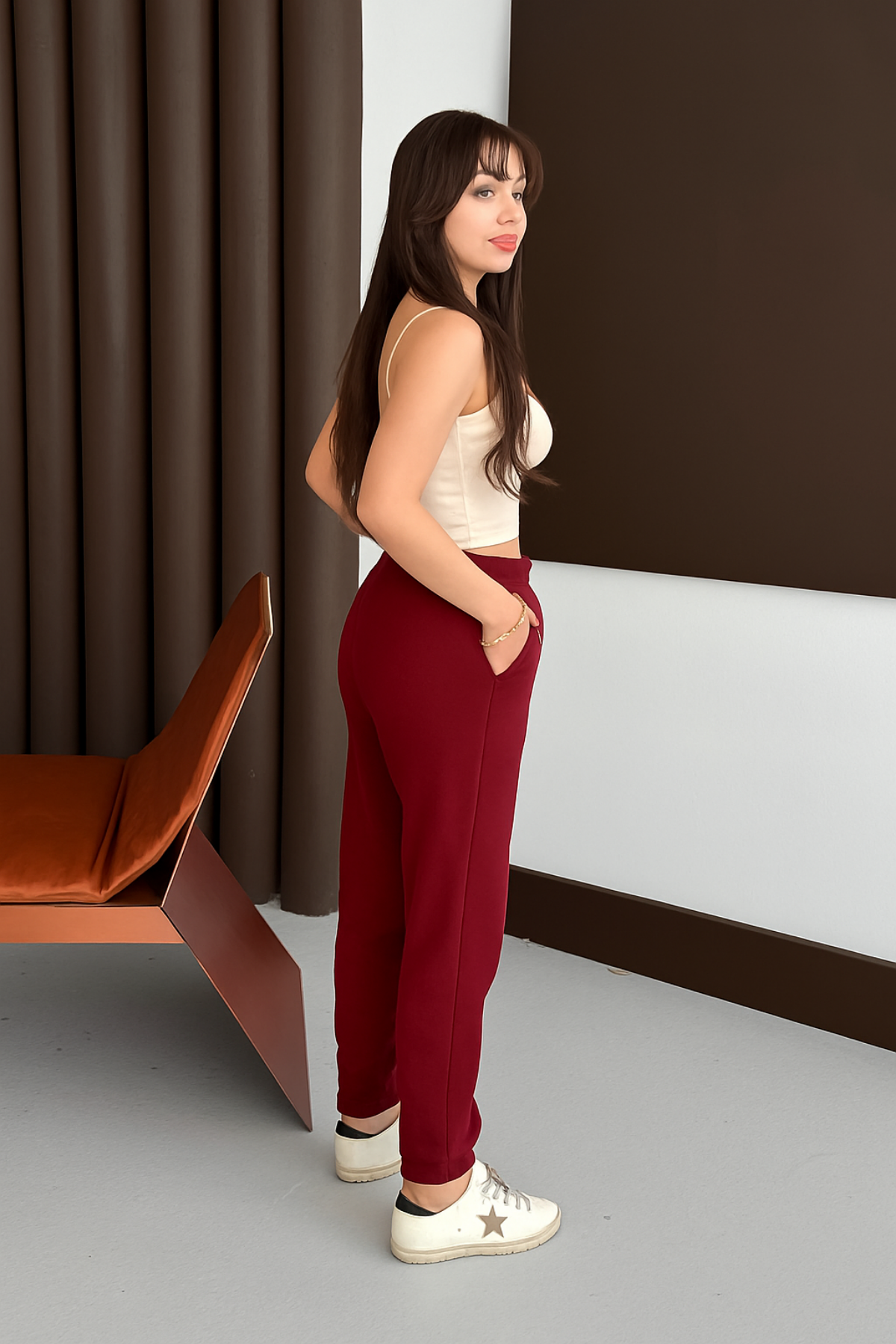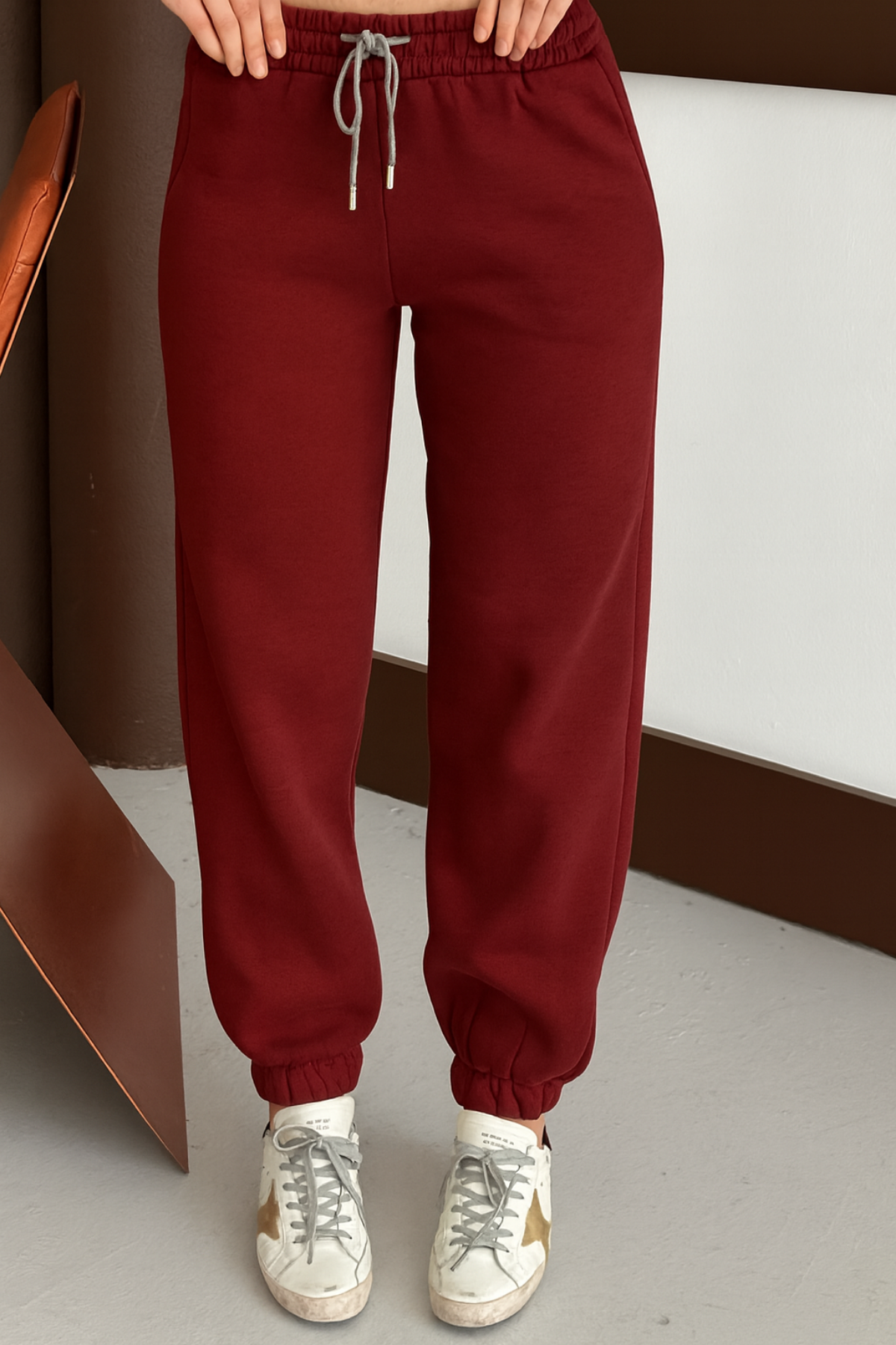 Balenbi Kadın Yüksek Bel Kışlık içi Polarlı Kalın Eşofman Altı 1091 L - Bordo