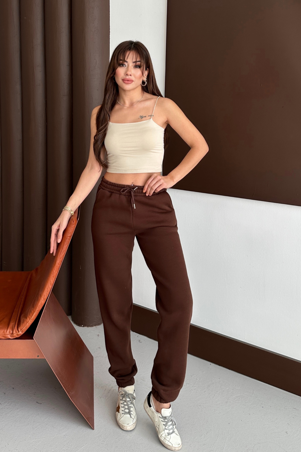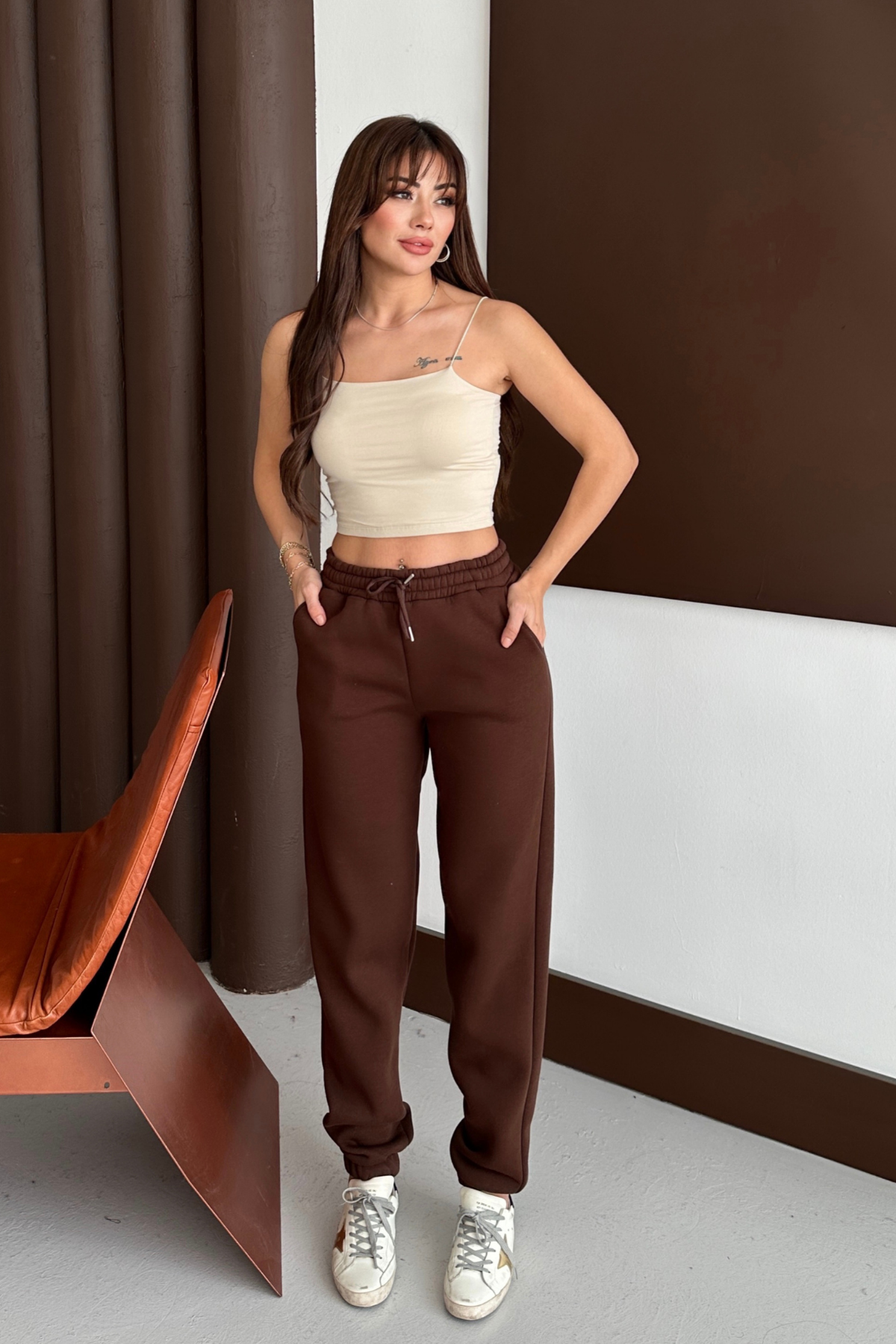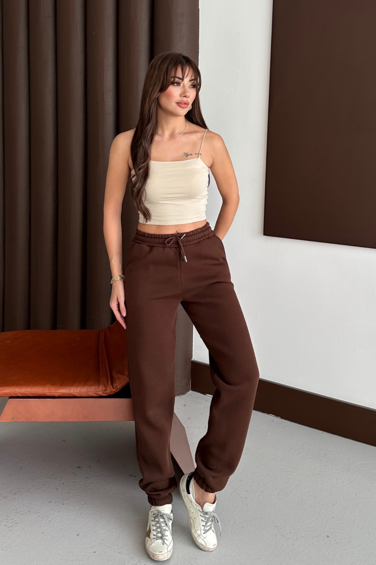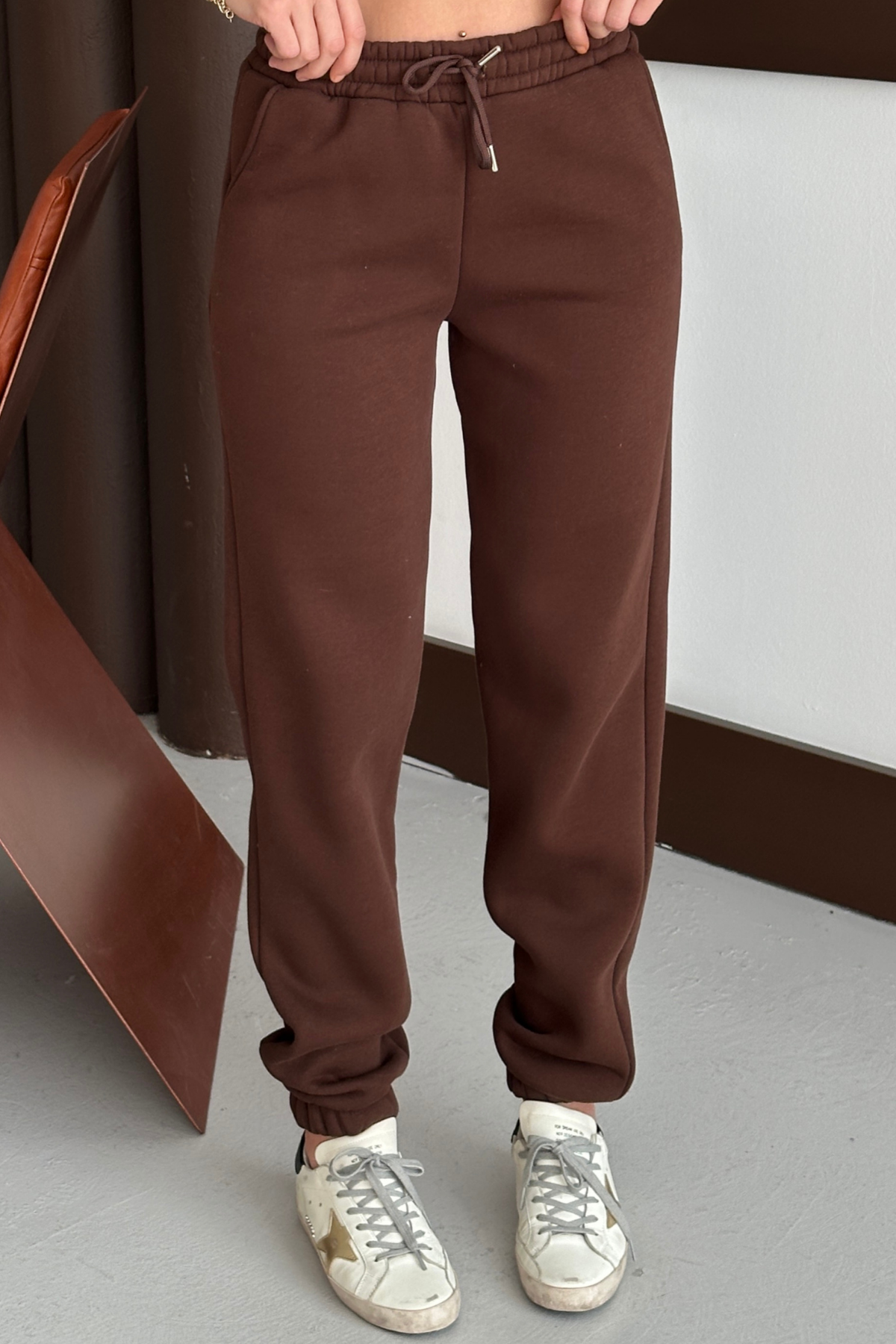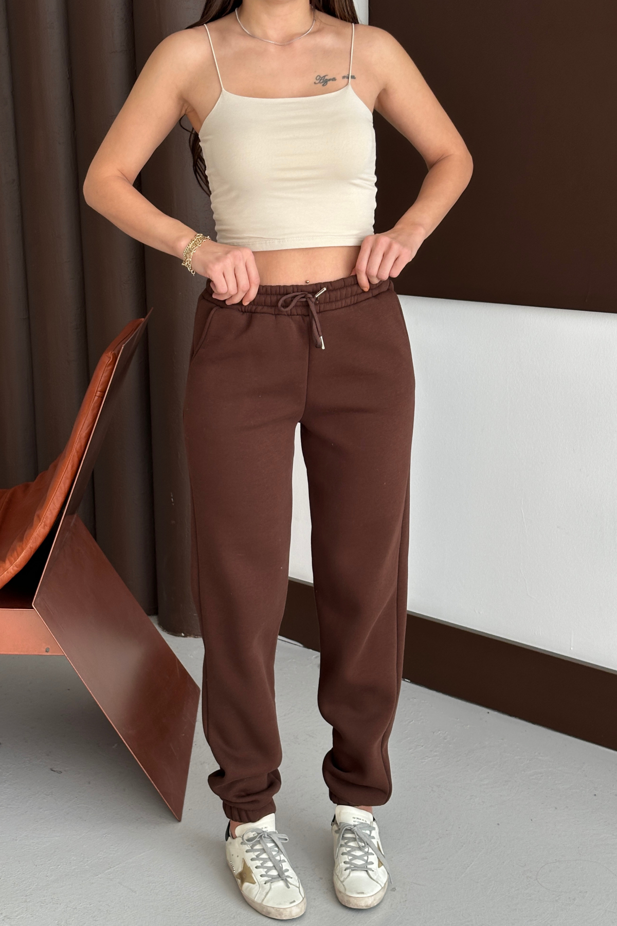Balenbi Kadın Yüksek Bel Kışlık içi Polarlı Kalın Eşofman Altı 1091 L - Kahverengi