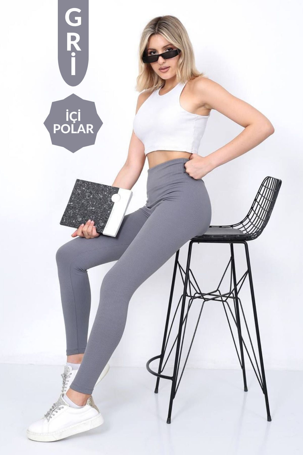 Balenbi Kadın Yüksek Bel Şardonlu Incelten Toparlayıcı Fitilli Tayt 1055 S - Gri
