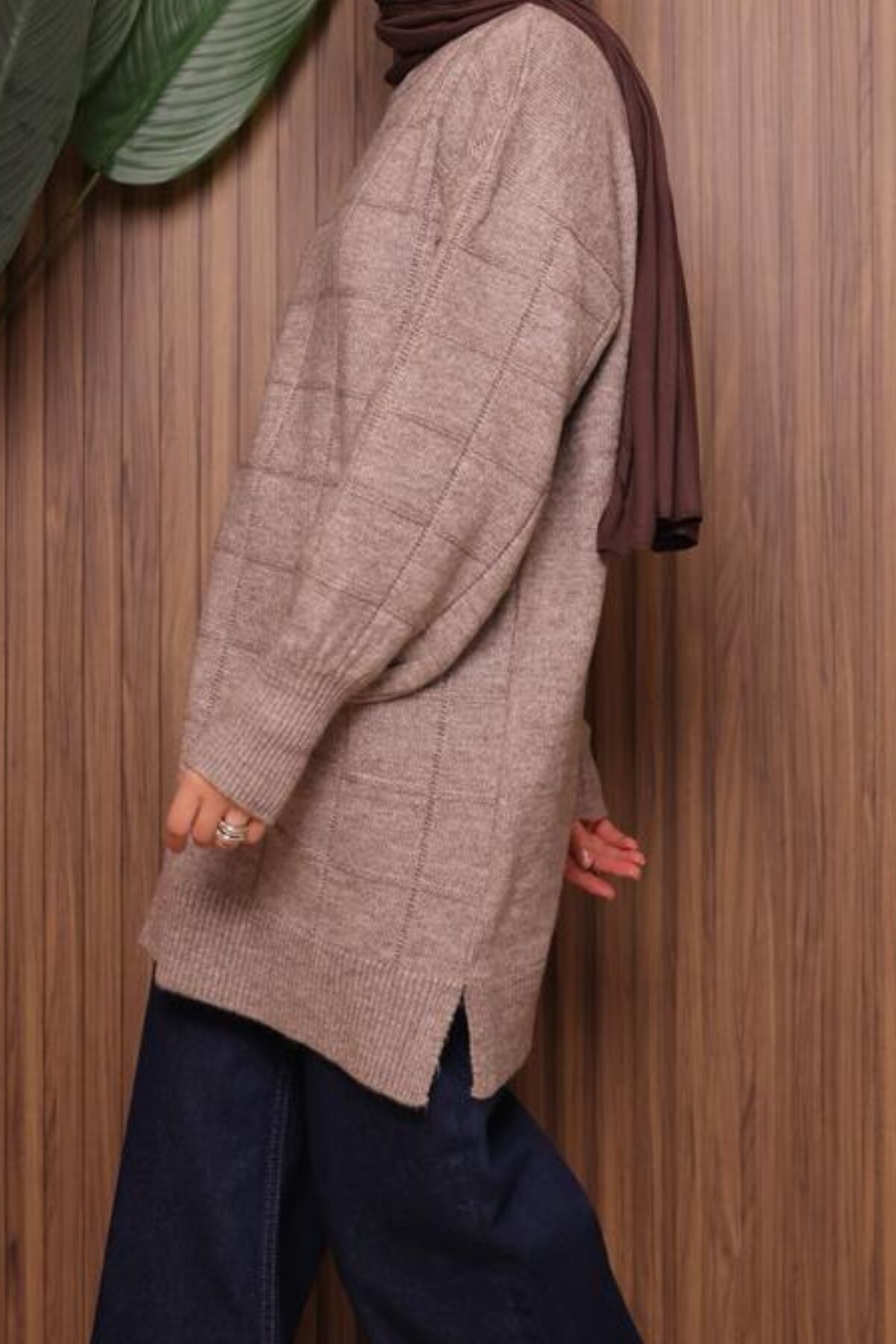 Balenbi İlmek Detaylı Uzun Oversize Tesettür Triko Tunik – 7028