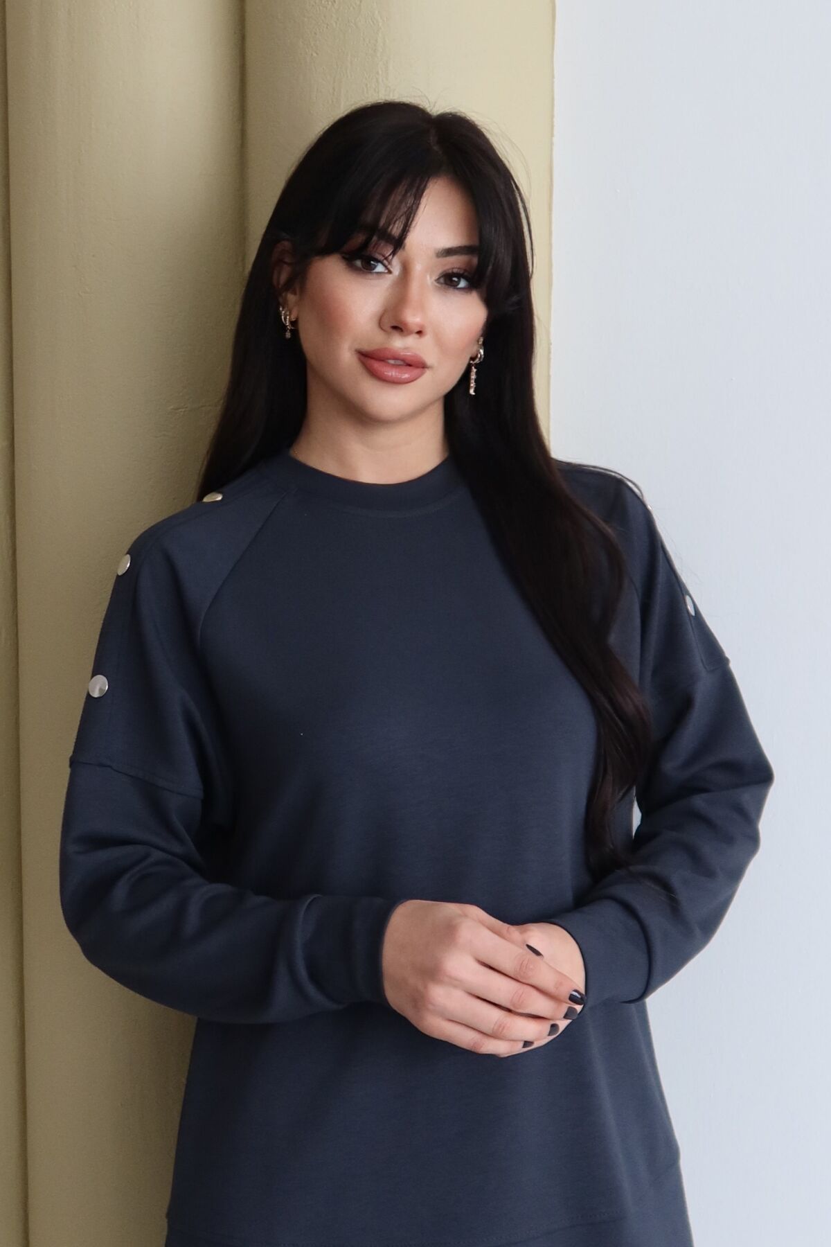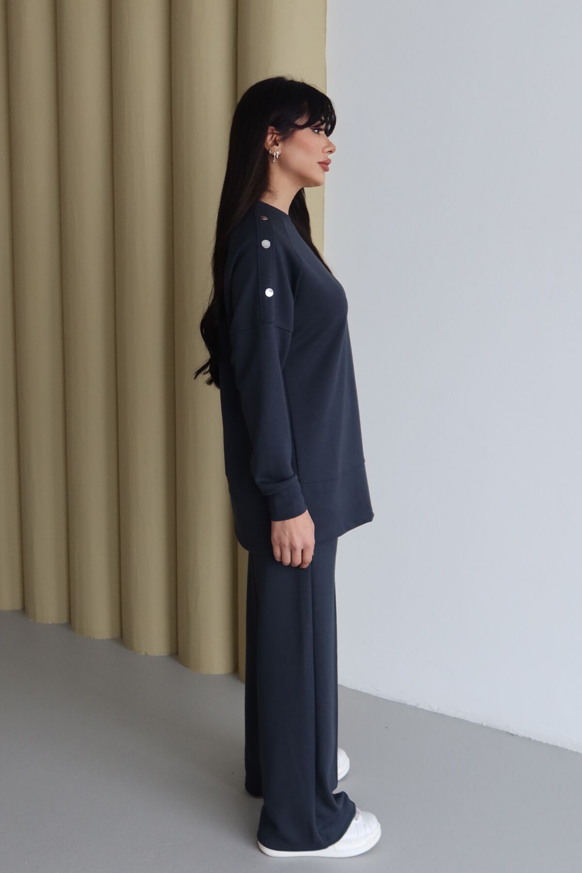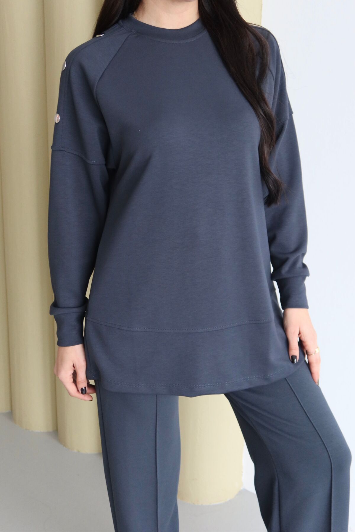 Balenbi Omuz Çıtçıt Detaylı Bisiklet Yaka Oversize Modal Tesettür Takım 1178 M - Füme