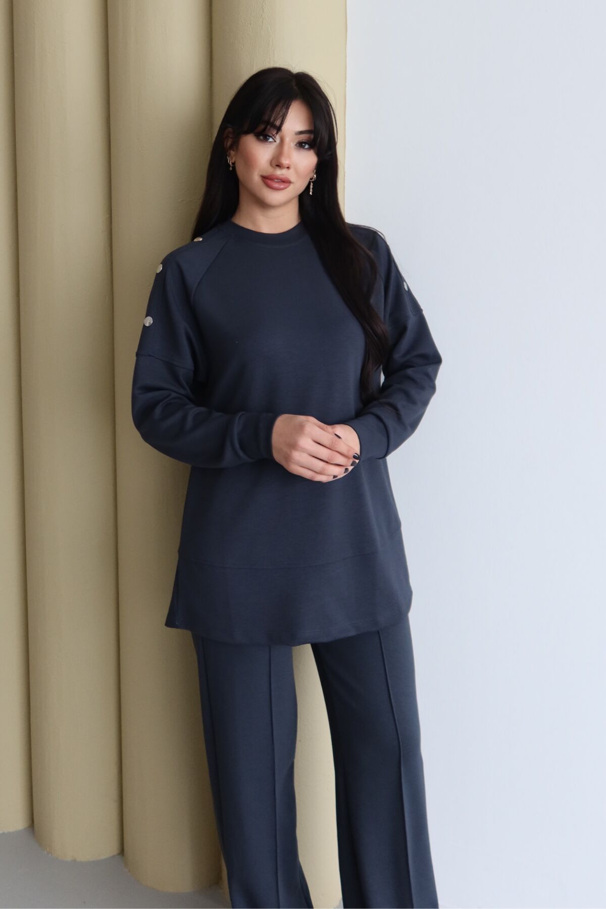 Balenbi Omuz Çıtçıt Detaylı Bisiklet Yaka Oversize Modal Tesettür Takım 1178