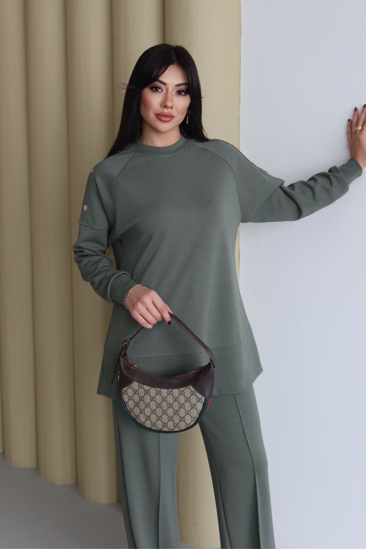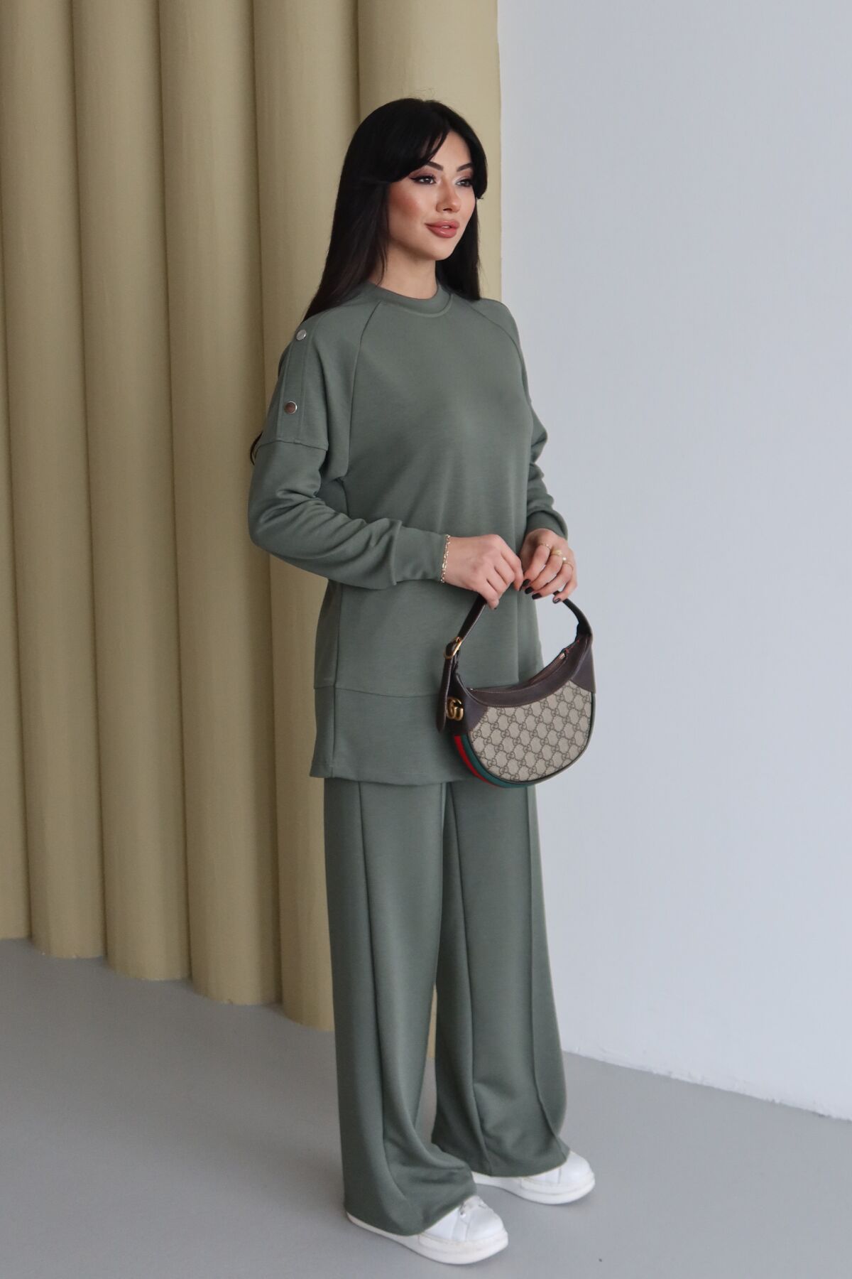 Balenbi Omuz Çıtçıt Detaylı Bisiklet Yaka Oversize Modal Tesettür Takım 1178 XL - Haki