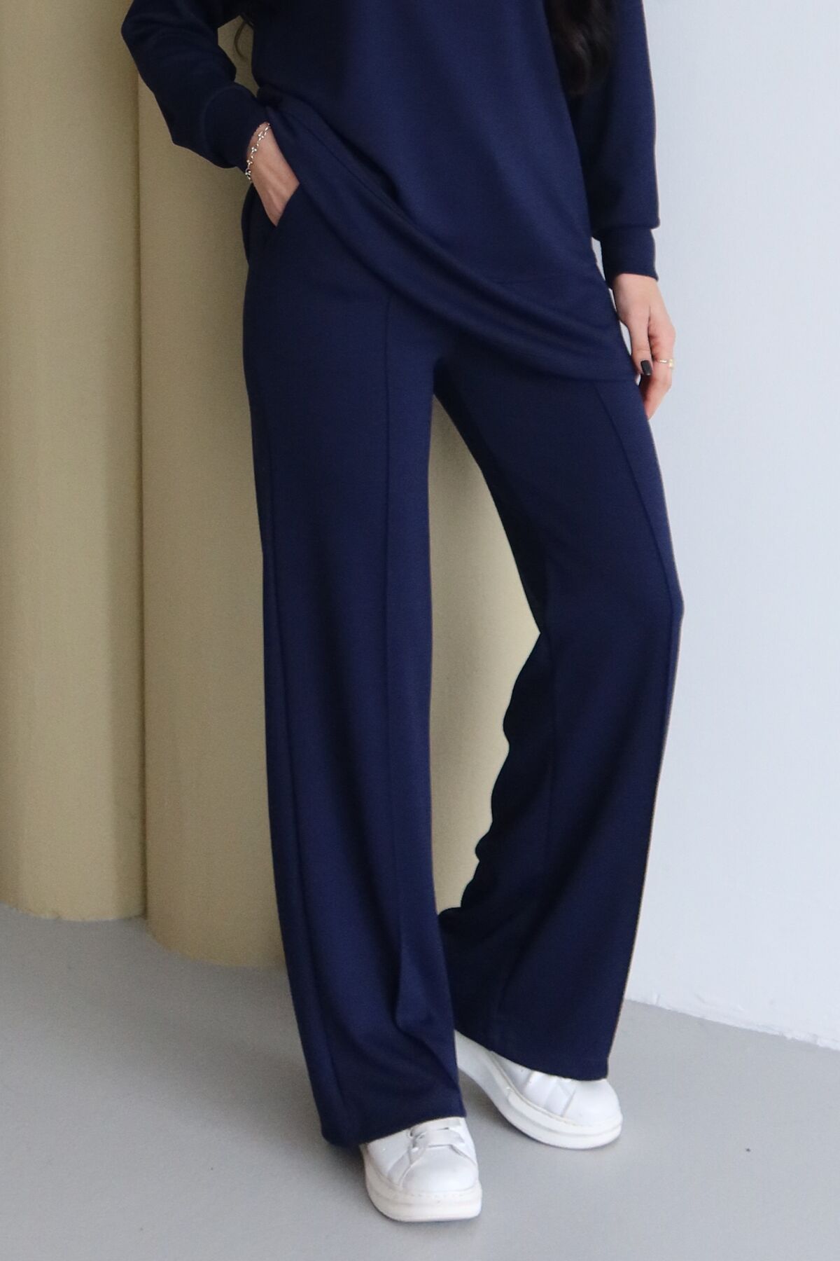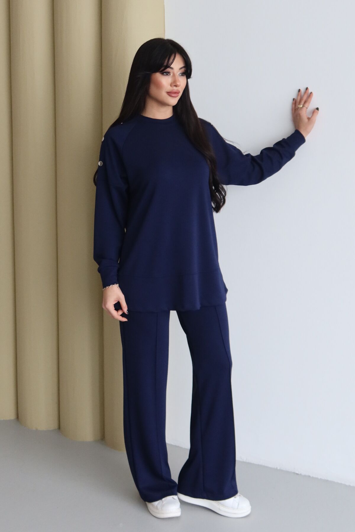 Balenbi Omuz Çıtçıt Detaylı Bisiklet Yaka Oversize Modal Tesettür Takım 1178 XL - Lacivert