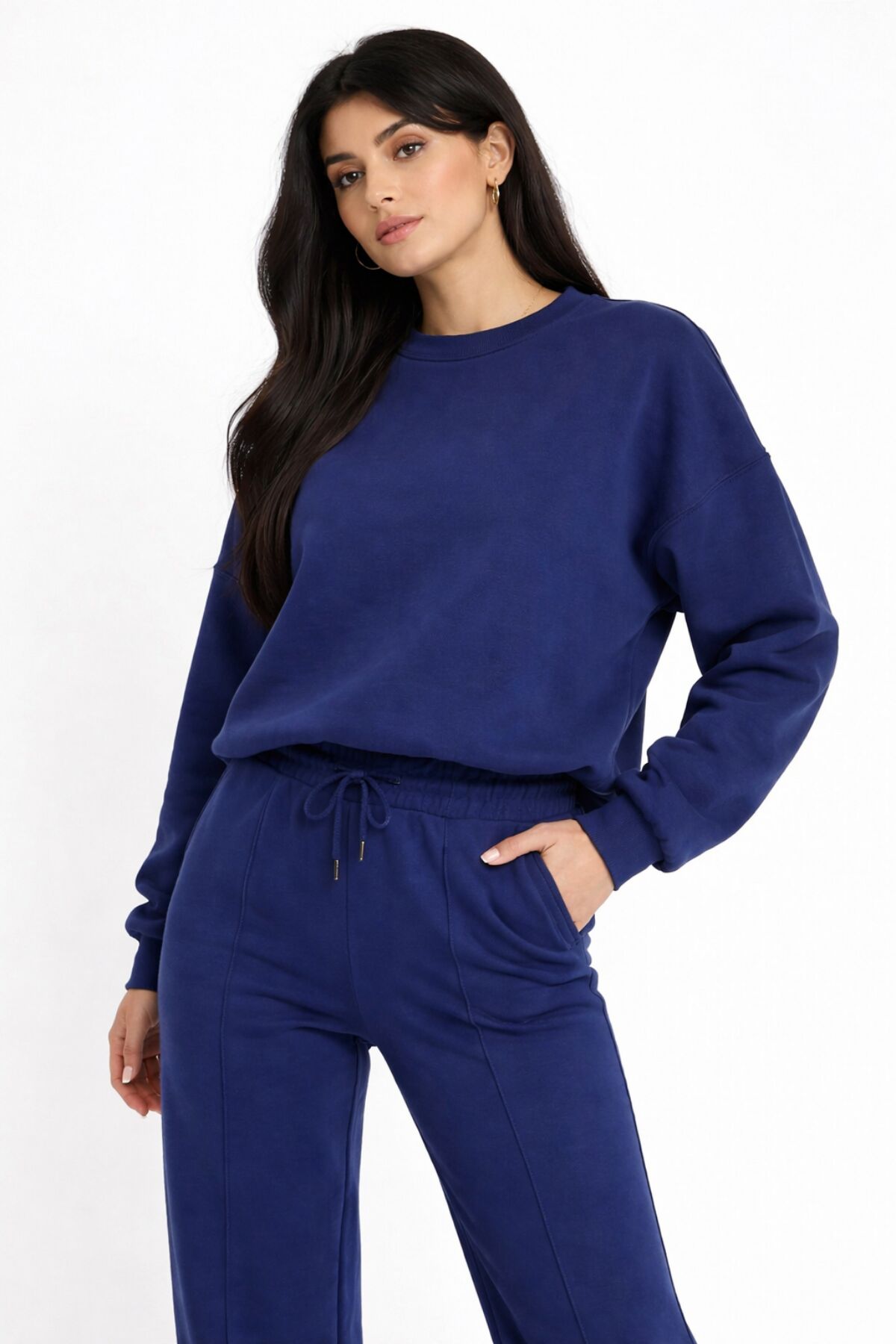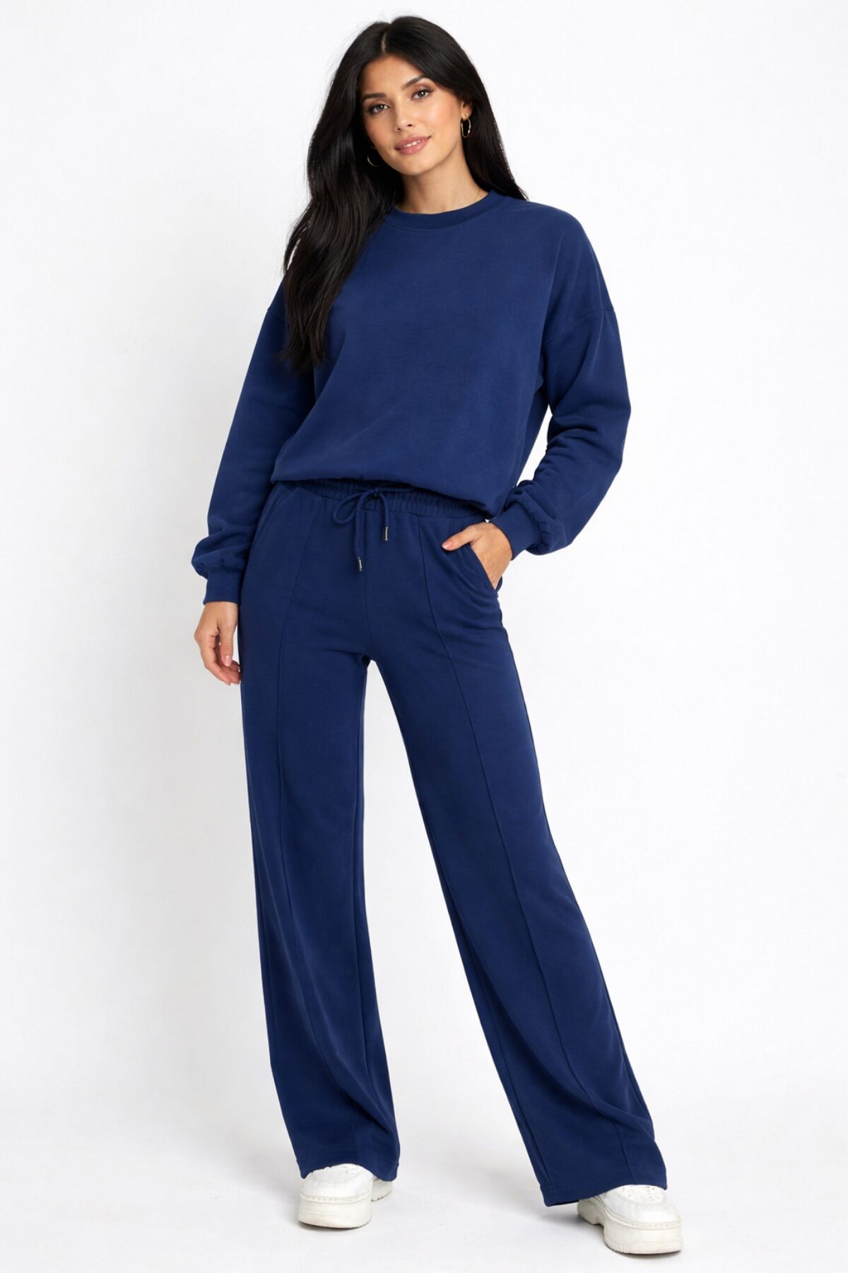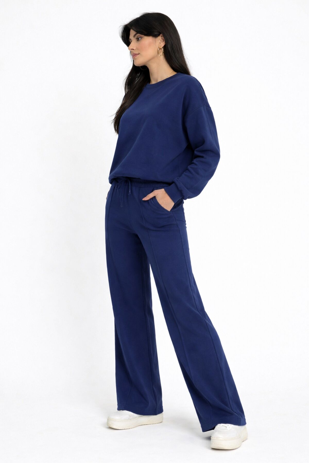 Balenbi Oversize Bisiklet Yaka Basic Modal Kadın Takım 1206 - Form Serisi L - Lacivert