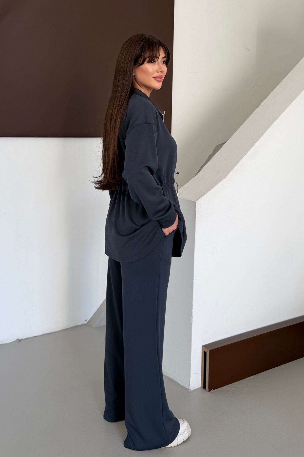Balenbi Oversize Fermuarlı Beli Bağcıklı Polo Yaka Modal Kadın Takım 1196 - Form Serisi S - Füme