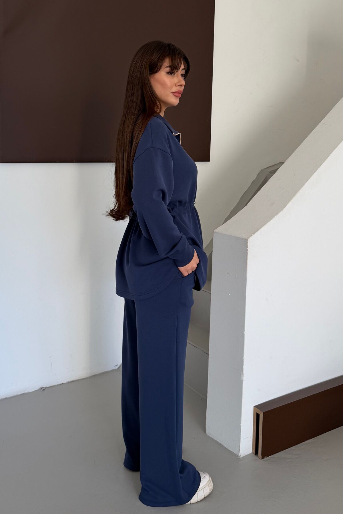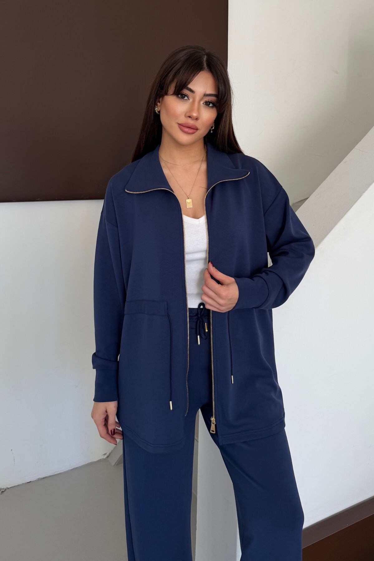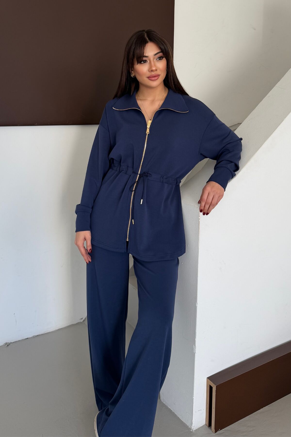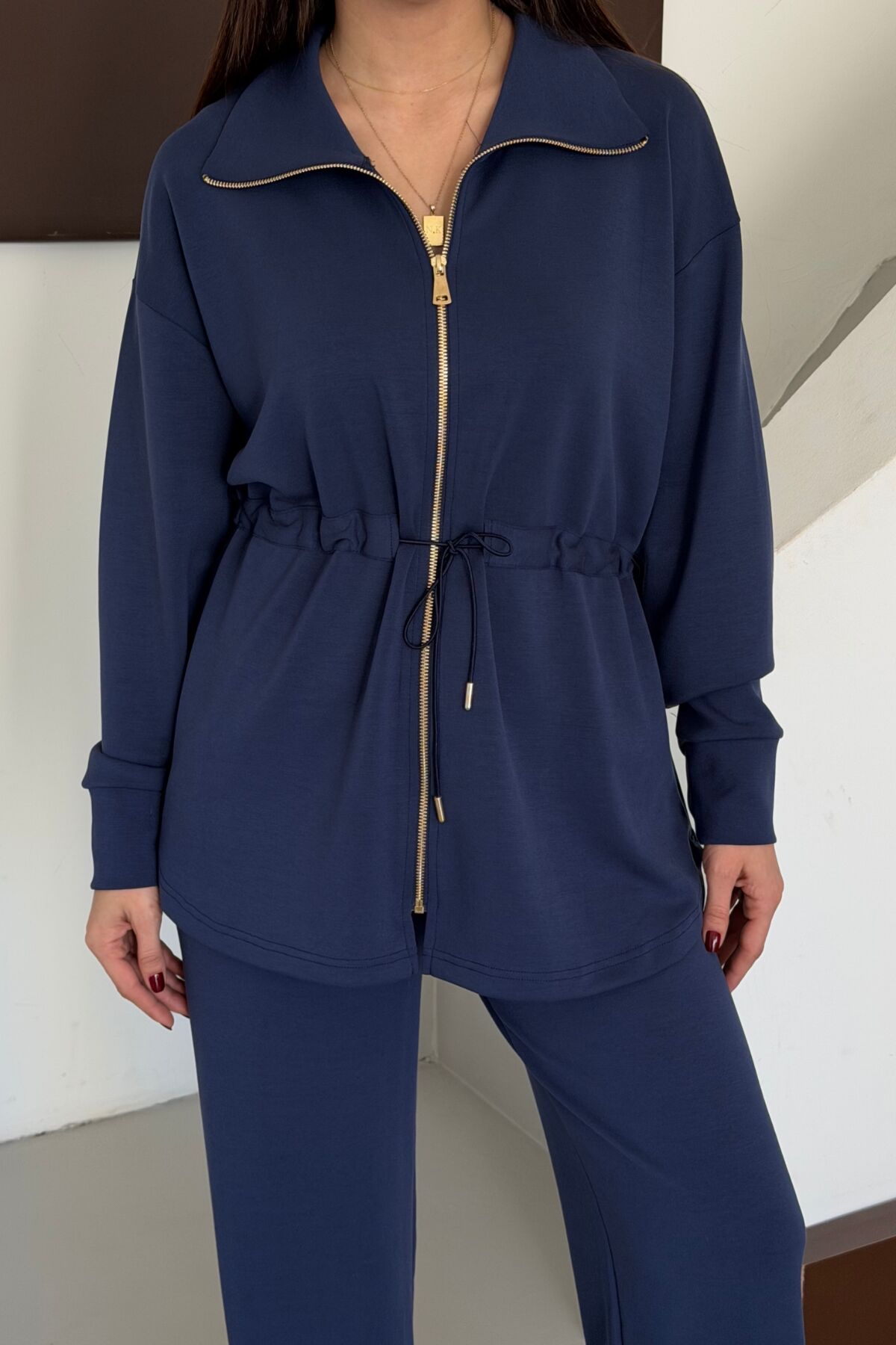 Balenbi Oversize Fermuarlı Beli Bağcıklı Polo Yaka Modal Kadın Takım 1196 - Form Serisi XL - Lacivert