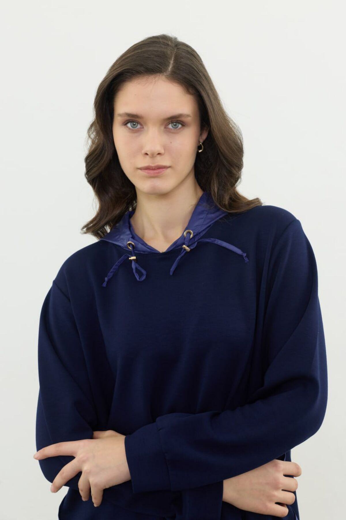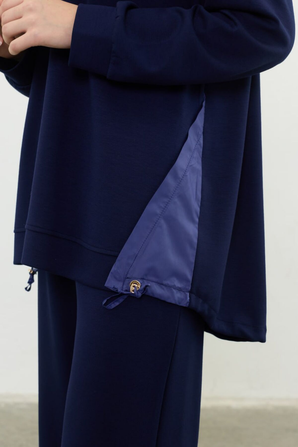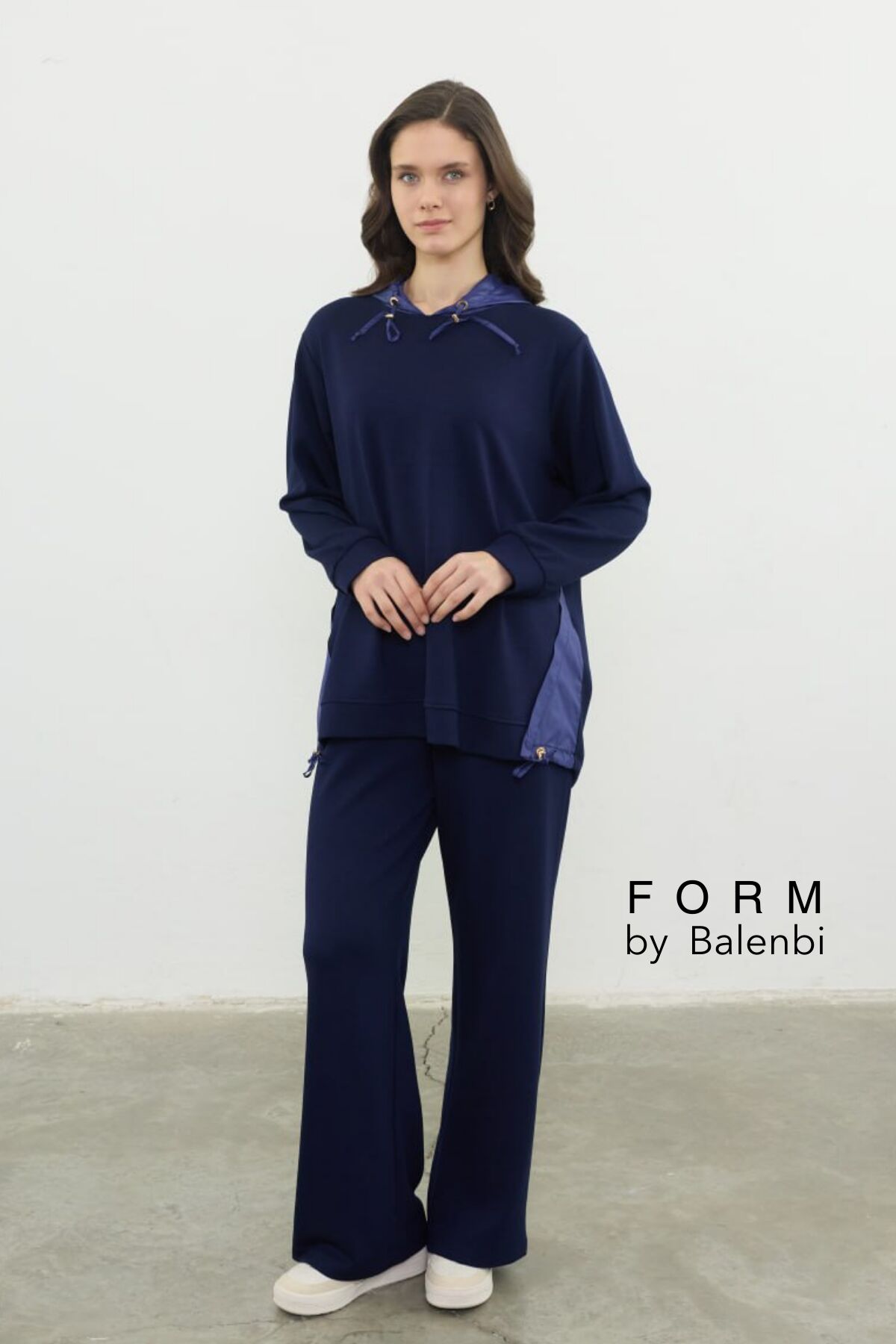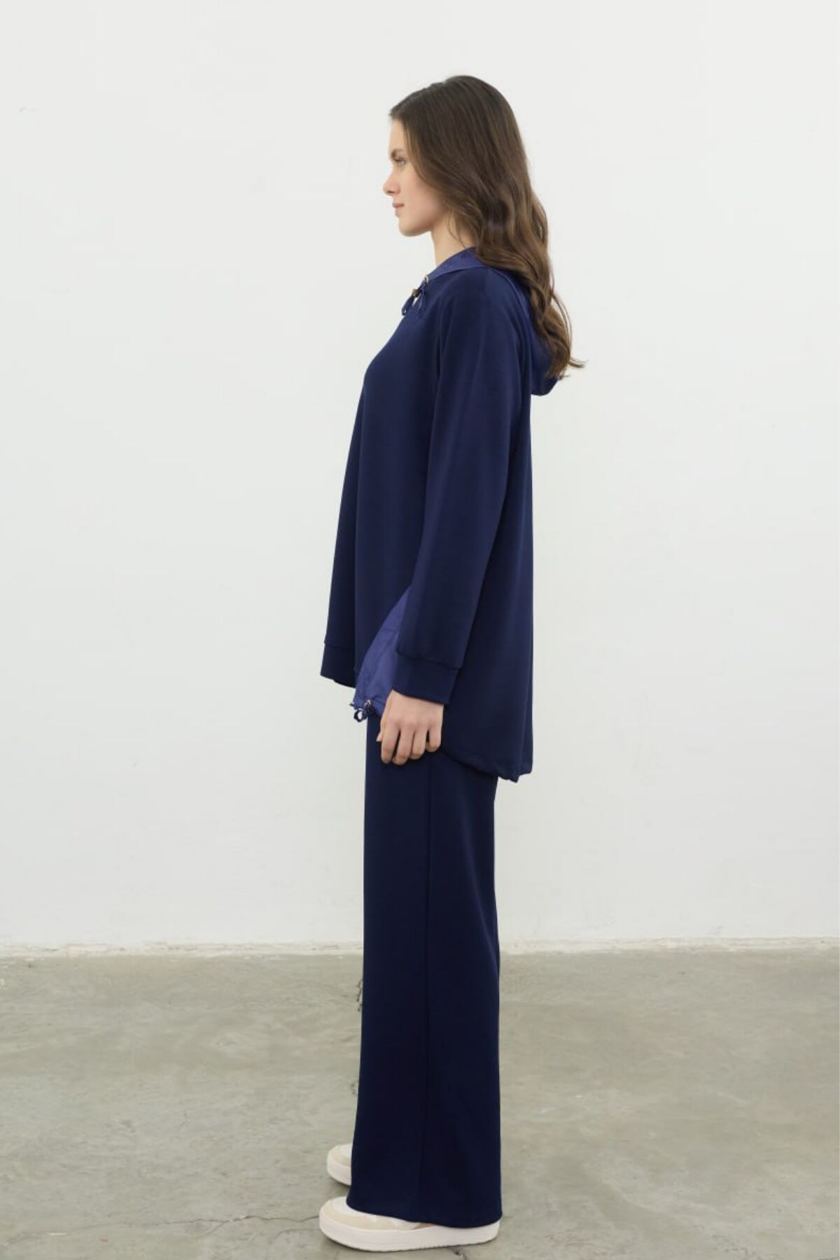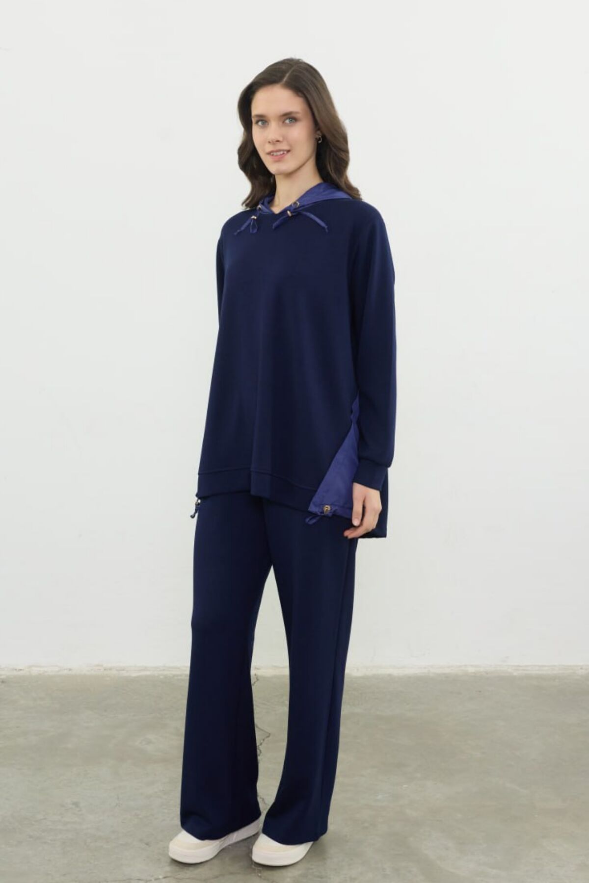 Balenbi Oversize Garni Detaylı Modal Tesettür Kapüşonlu Kadın Takım 1199 - Form Serisi S/M - Lacivert