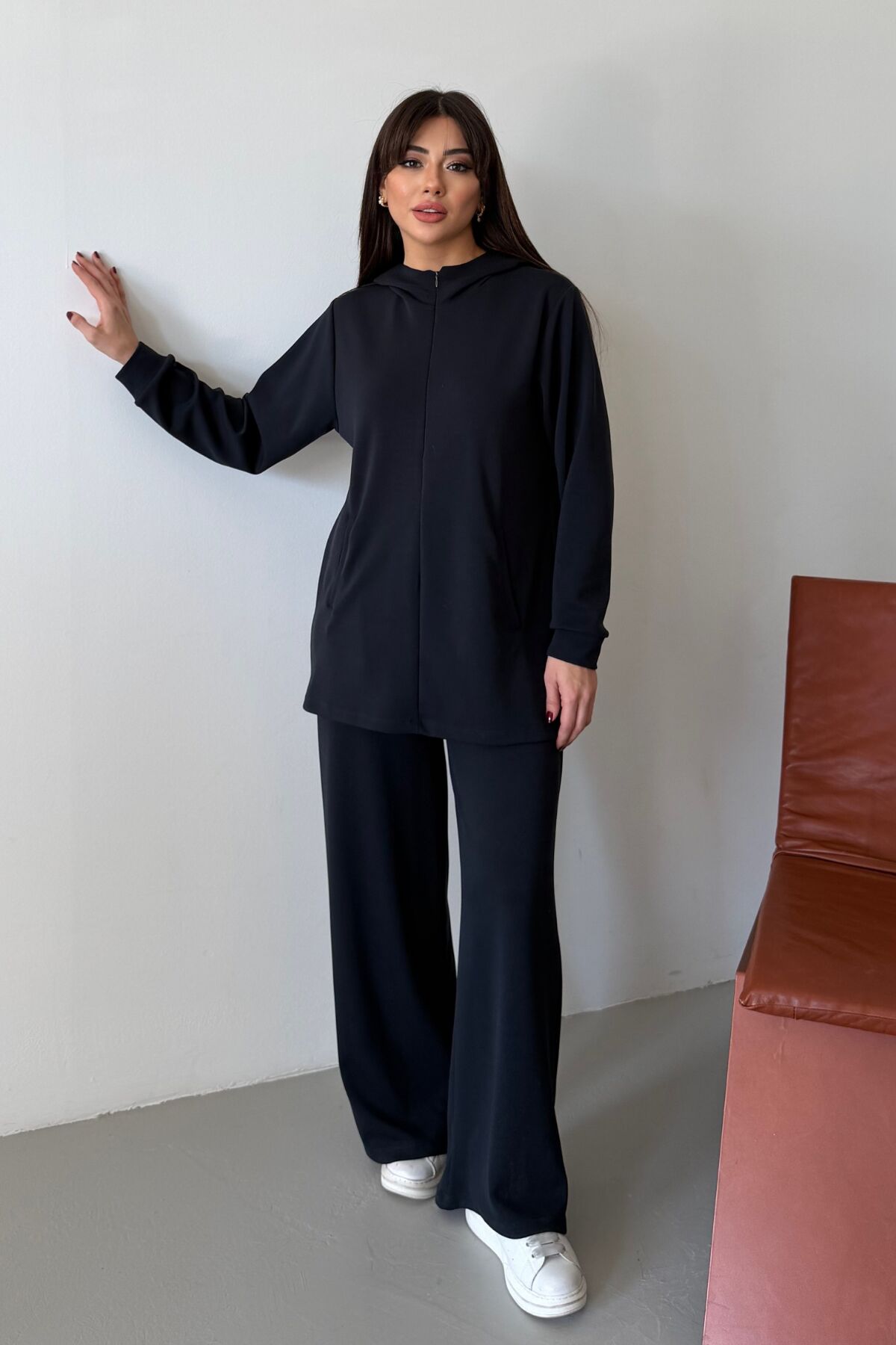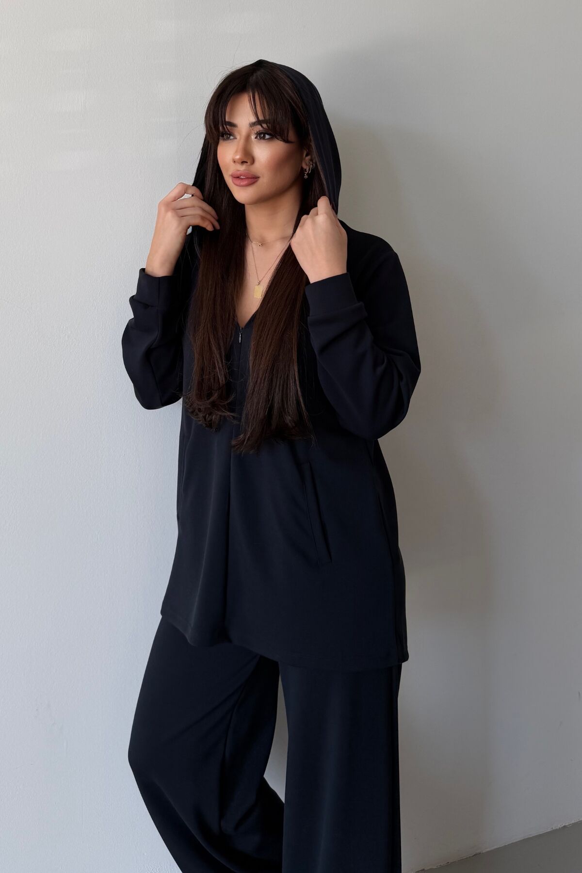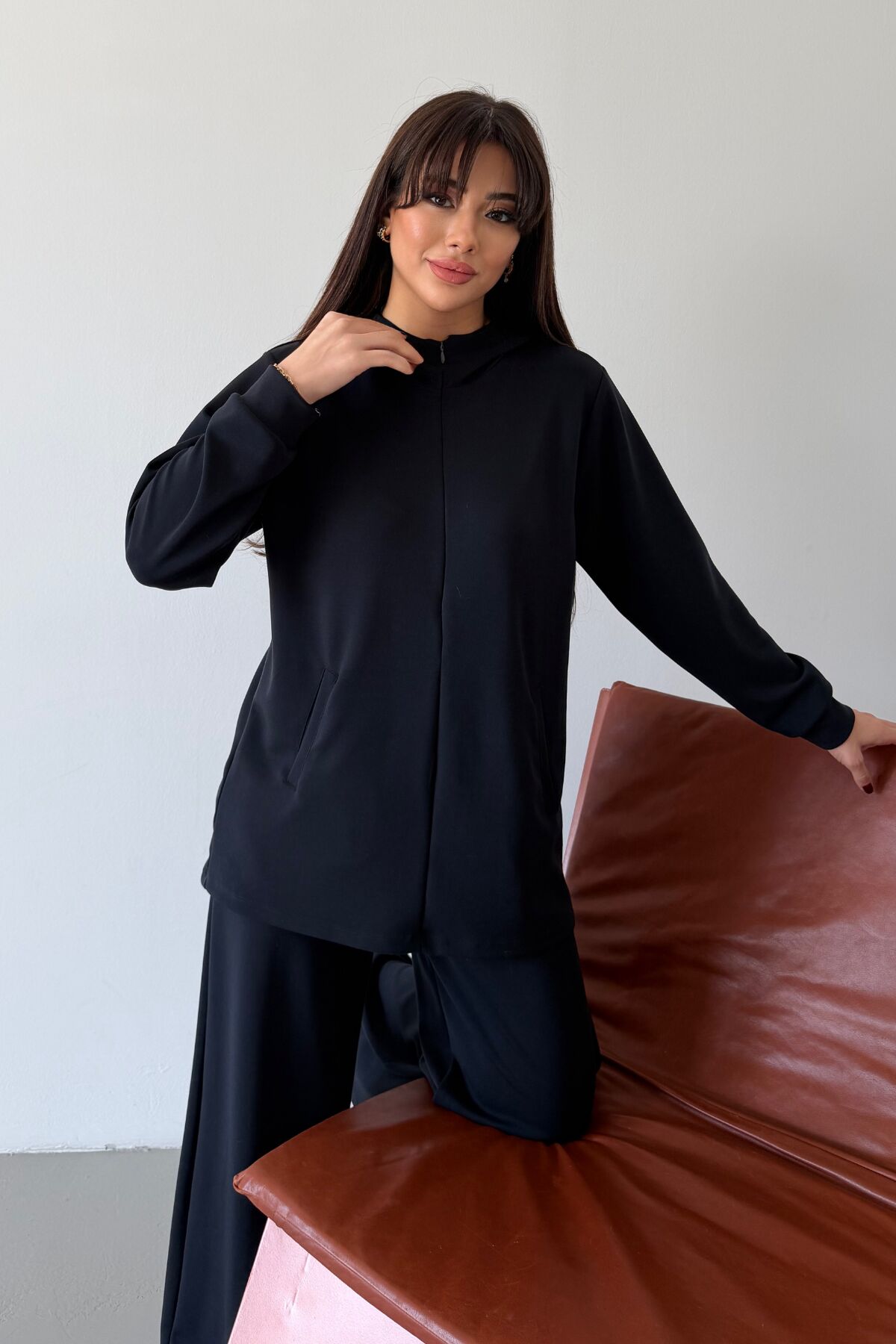 Balenbi Oversize Kapüşonlu Fermuarlı Modal Tesettür Takım 1186 – Form Serisi