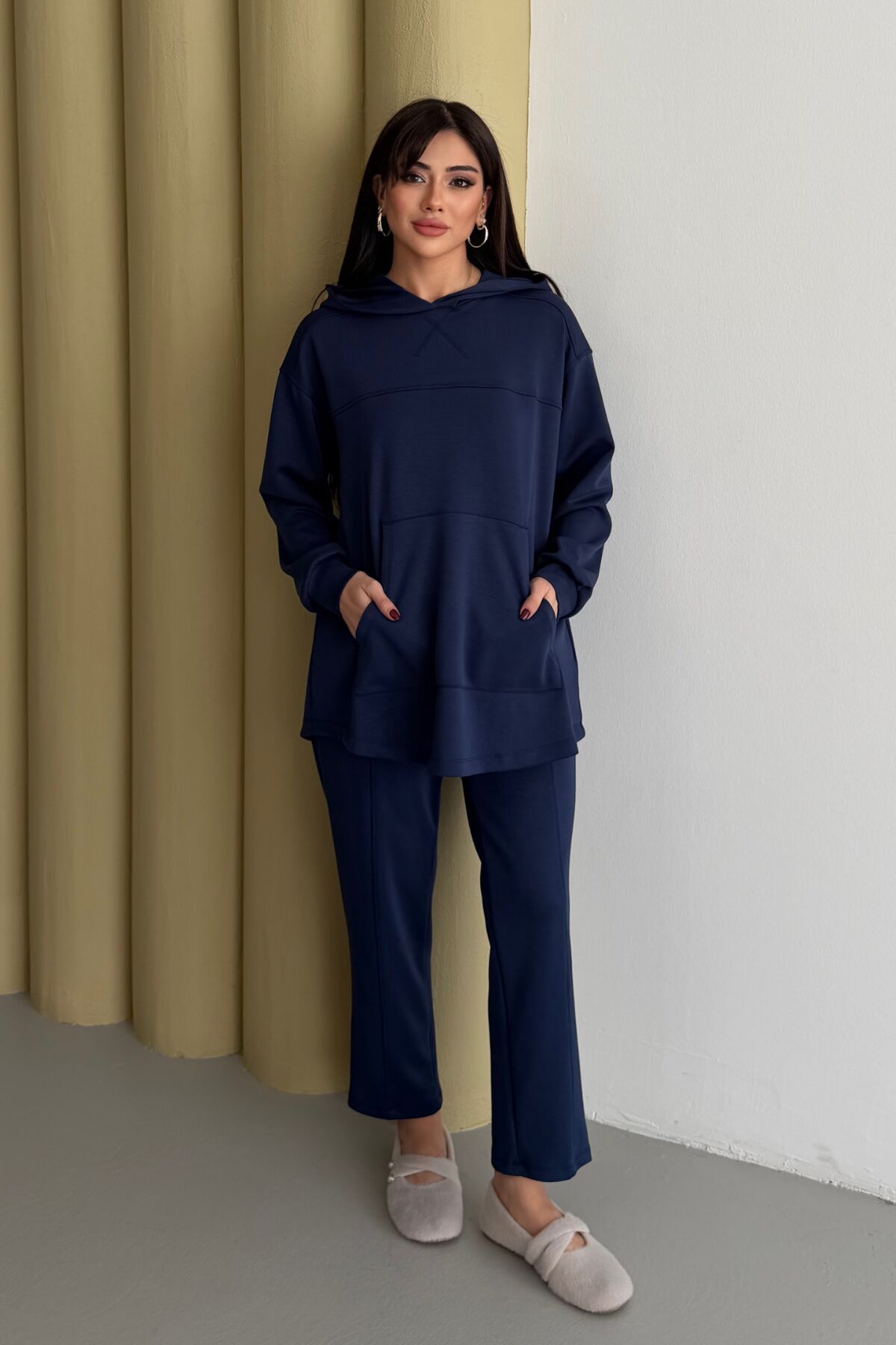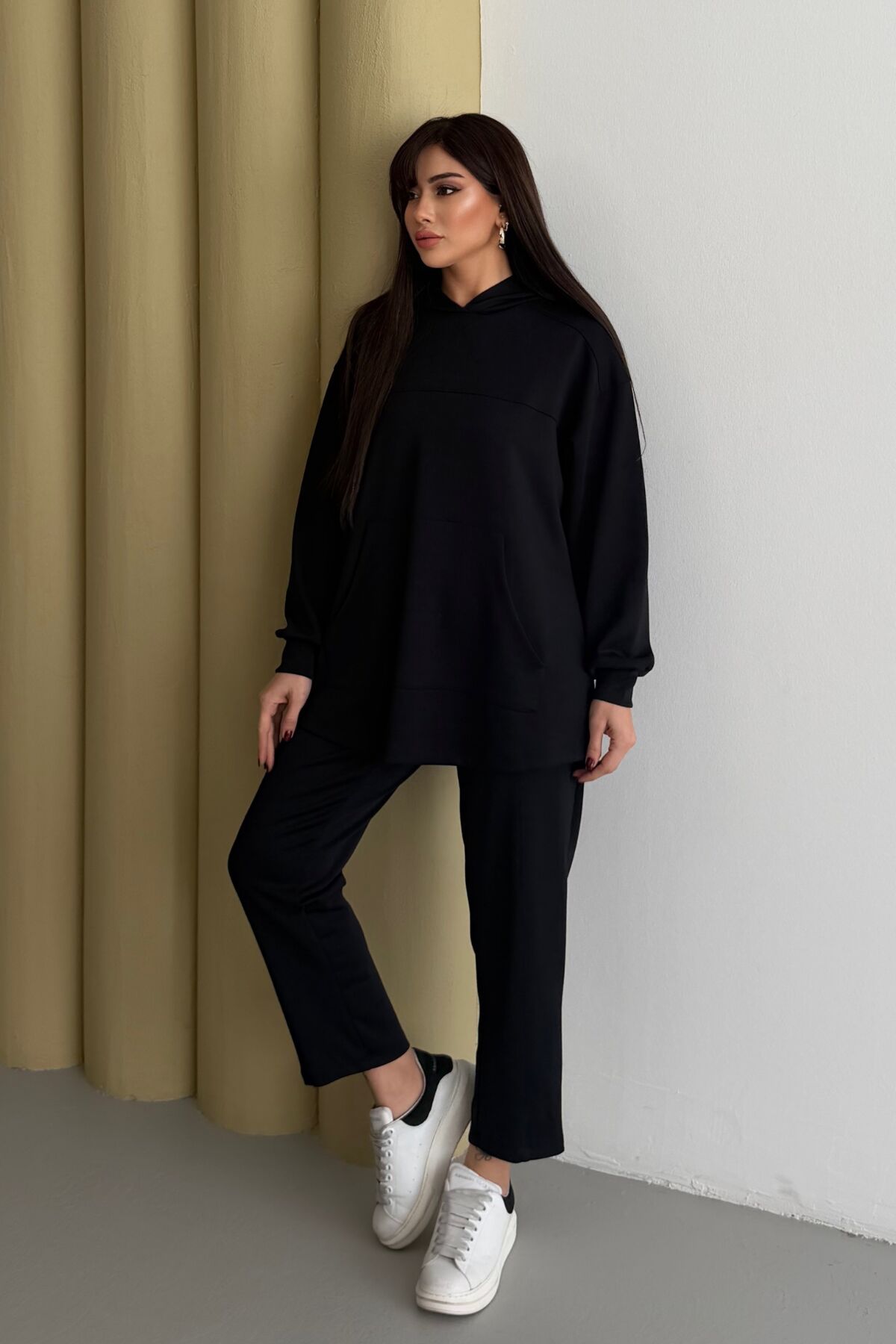 Balenbi Oversize Kapüşonlu Kanguru Cepli Modal Tesettür Takım 1192 - Form Serisi