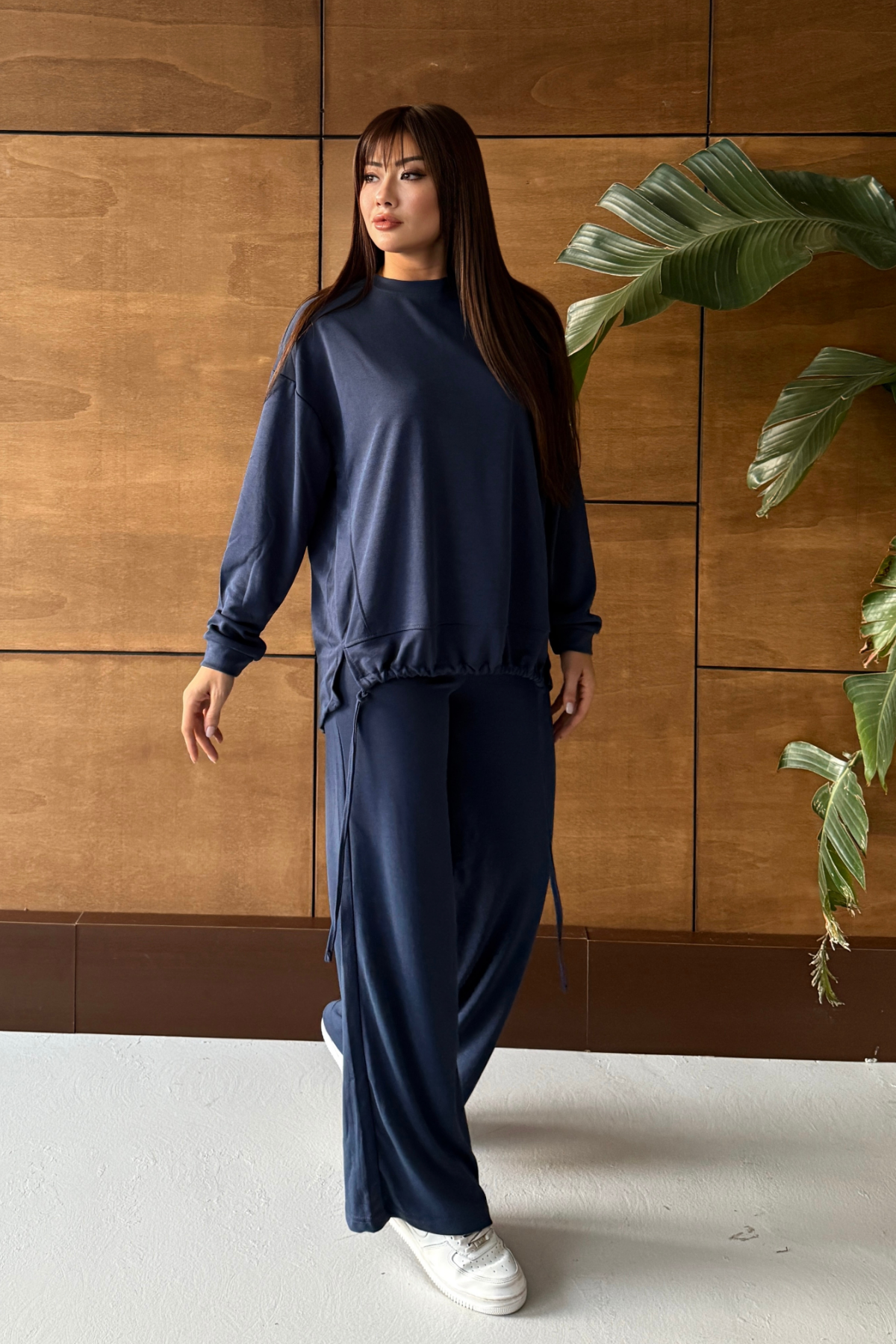 Balenbi Oversize Modal Pike Büzgü Detaylı Tesettür Kadın Takım 1164 – Form Serisi 2XL - Lacivert