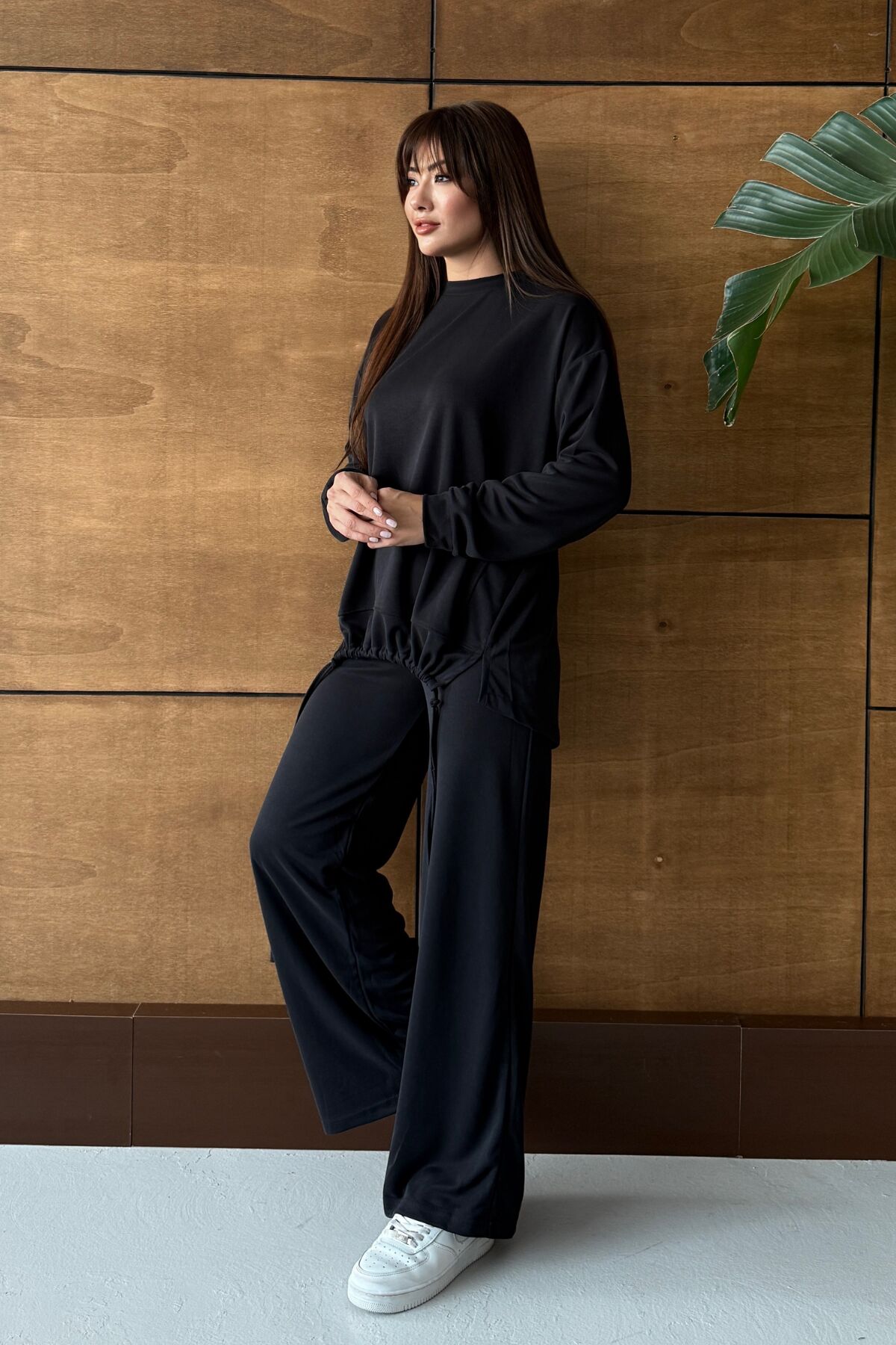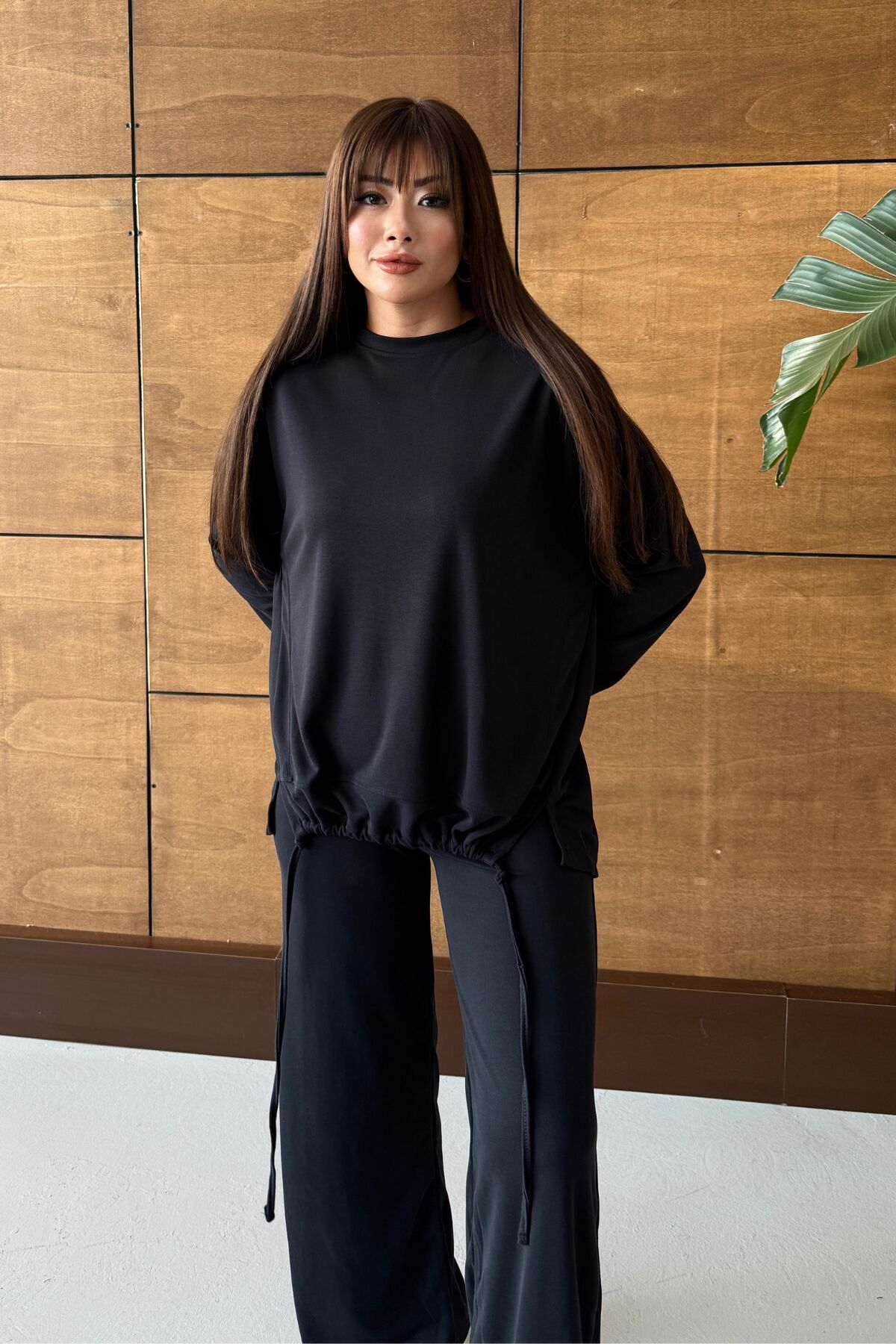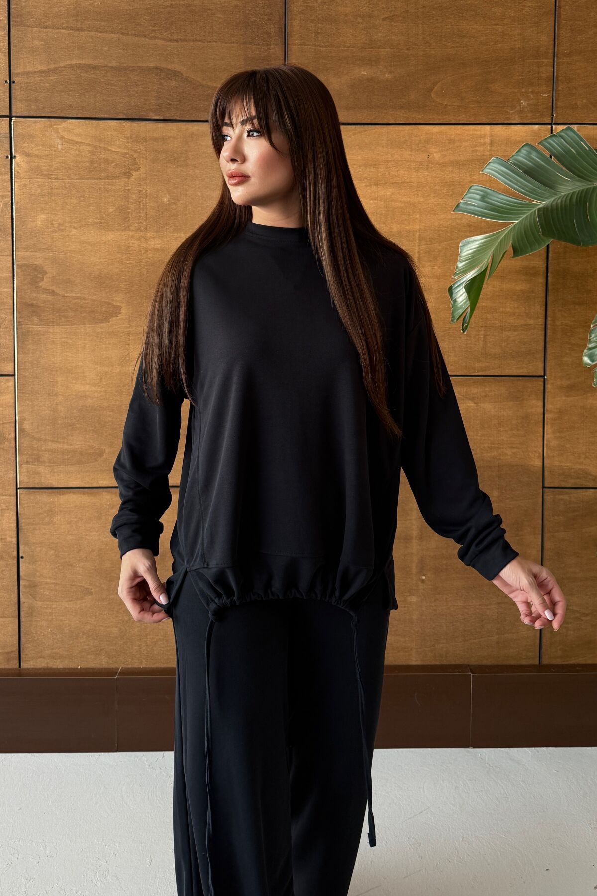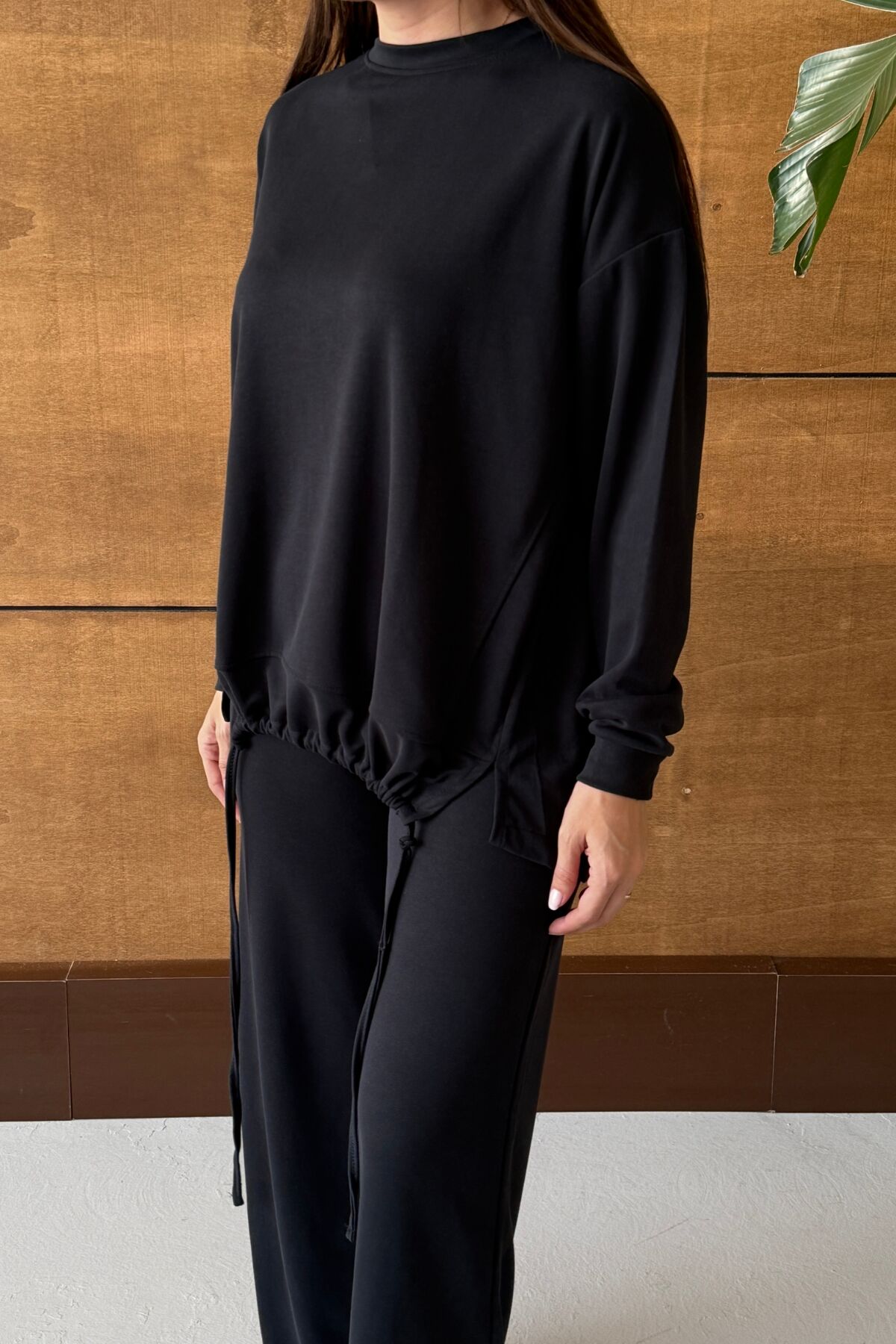 Balenbi Oversize Modal Pike Büzgü Detaylı Tesettür Kadın Takım 1164 – Form Serisi S - Siyah
