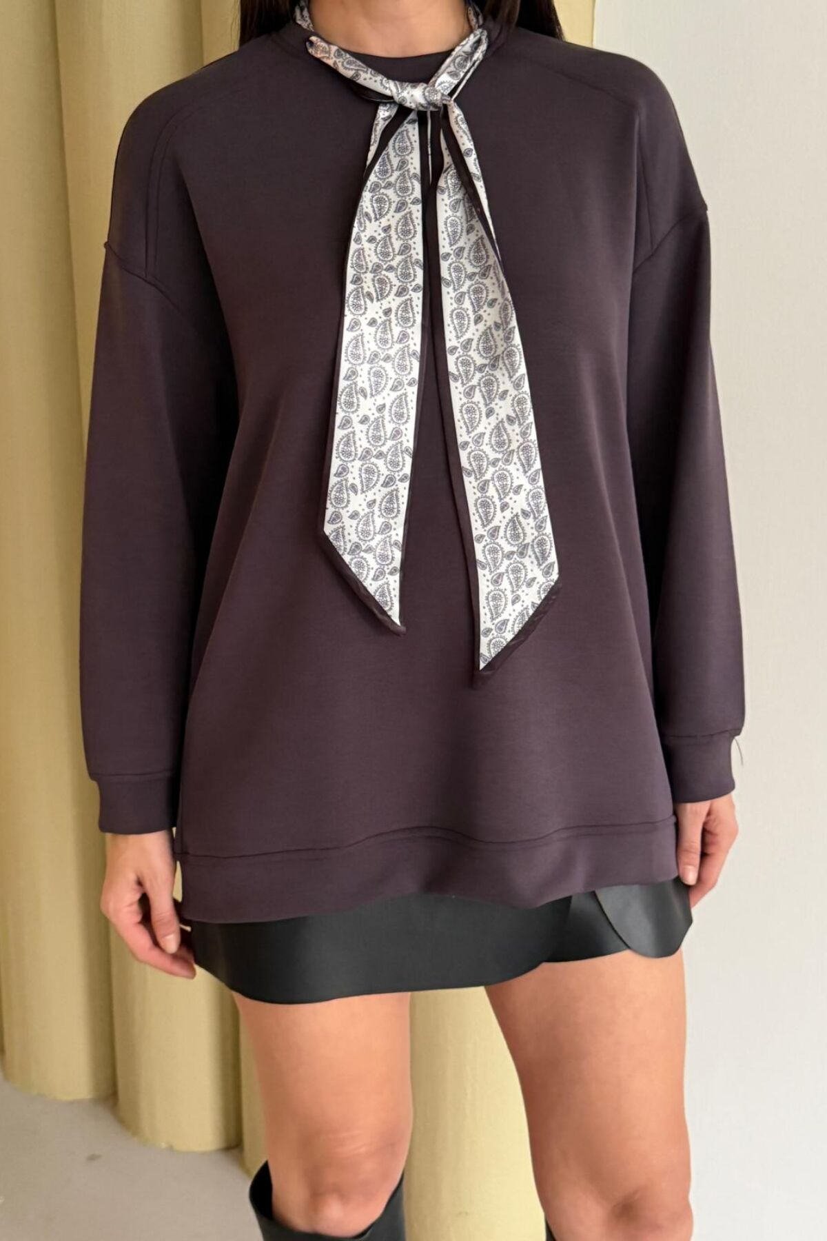 Balenbi Premium Modal Fular Detaylı Bisiklet Yaka Oversize Tunik 1177