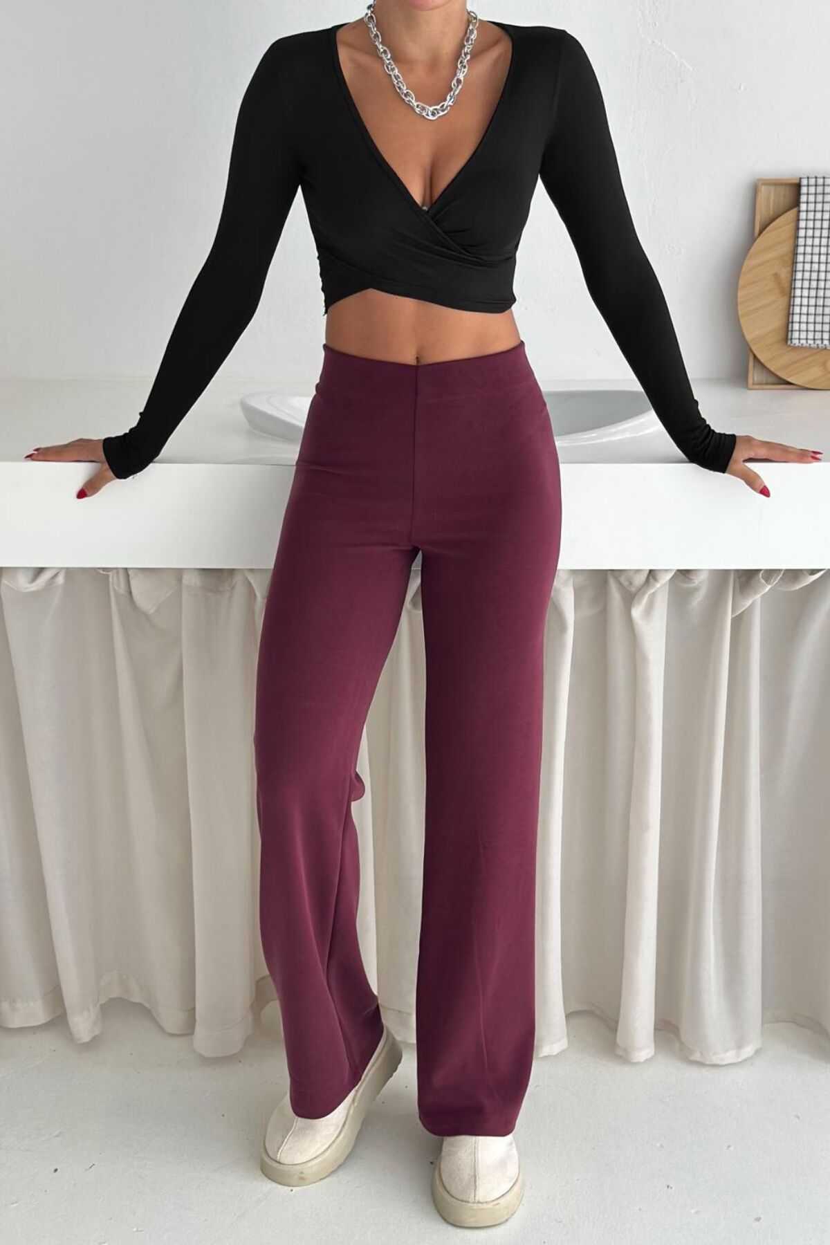 Balenbi Premium Modal Kumaş Boru Paça Kadın Yürüyüş Pantolonu 1116 40 - Bordo