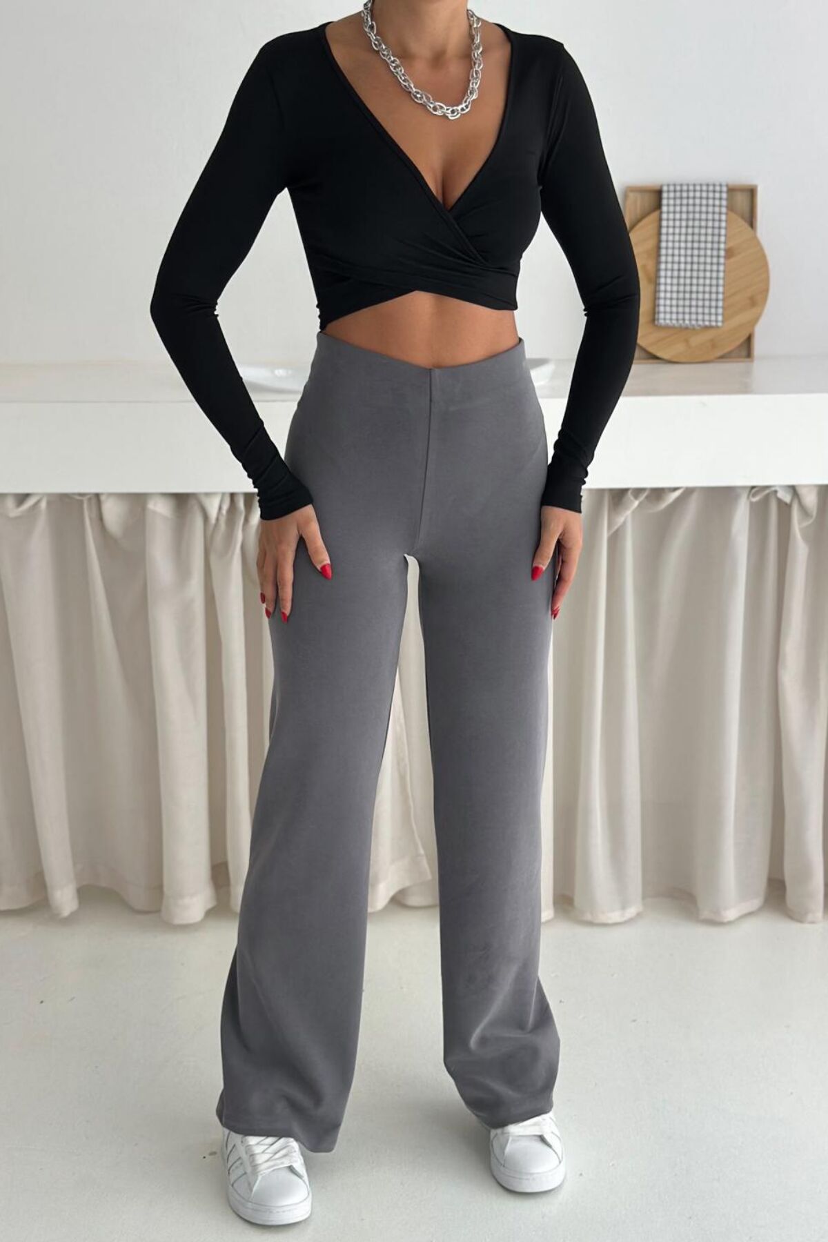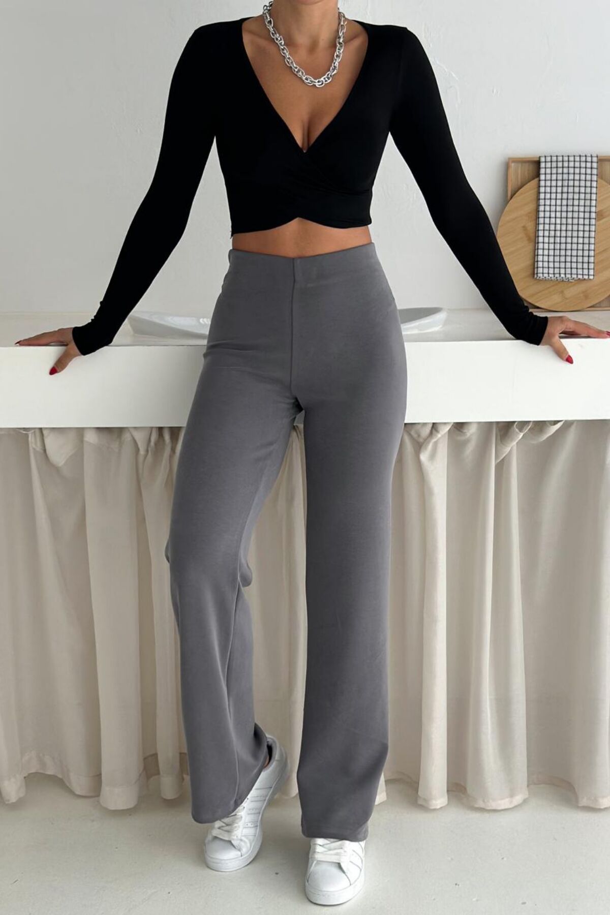 Balenbi Premium Modal Kumaş Boru Paça Kadın Yürüyüş Pantolonu 1116 42 - Gri