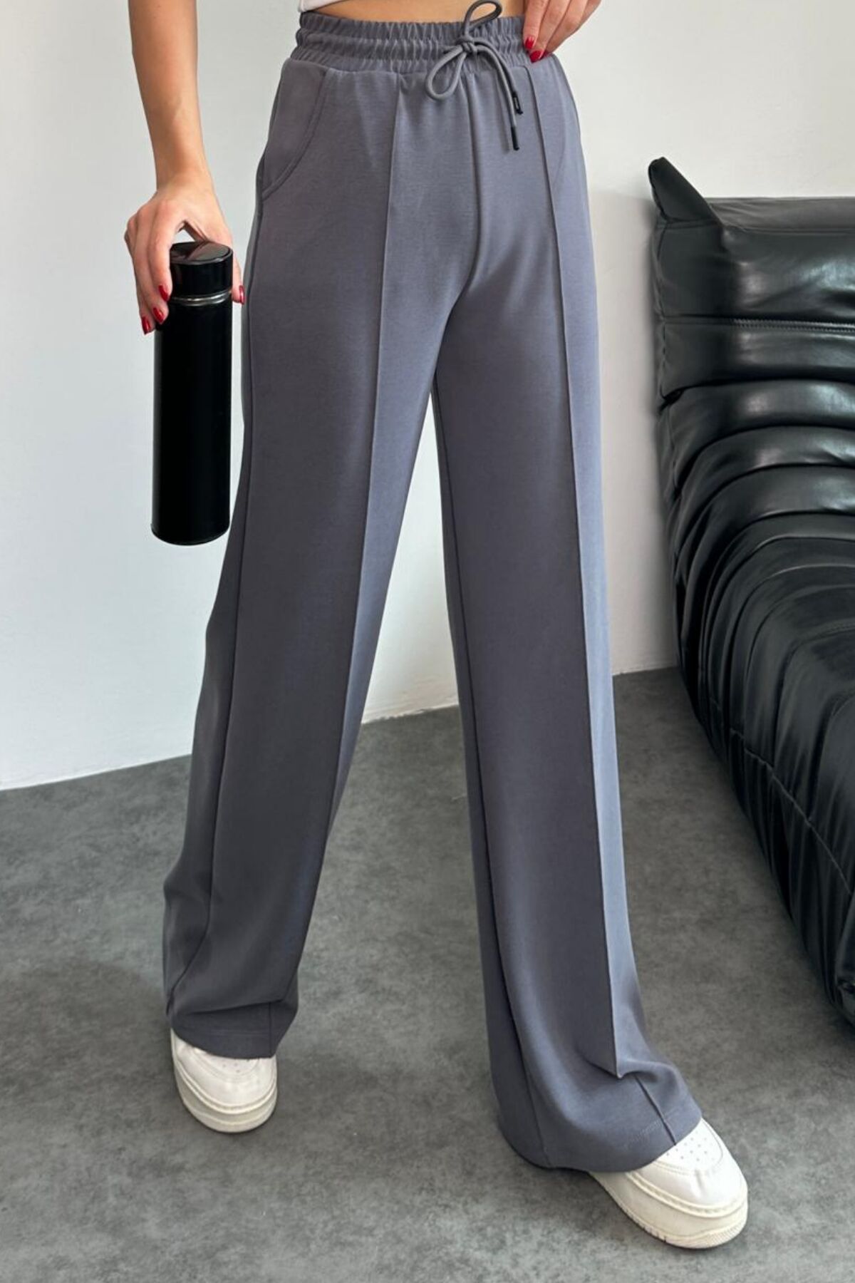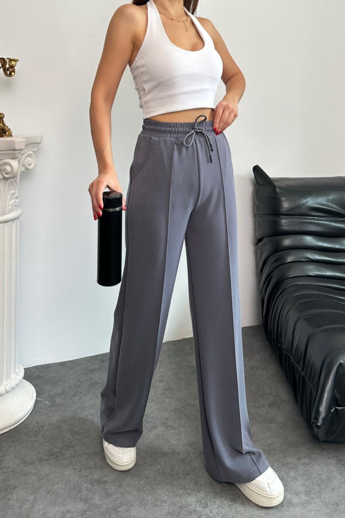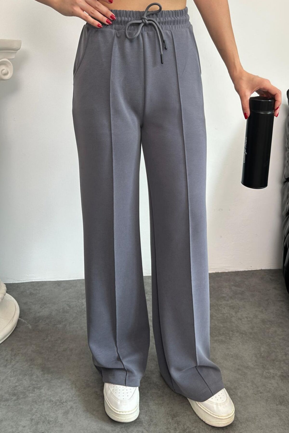 Balenbi Premium Modal Kumaş Çımalı Palazzo Kadın Pantolon 1115 40 - Gri