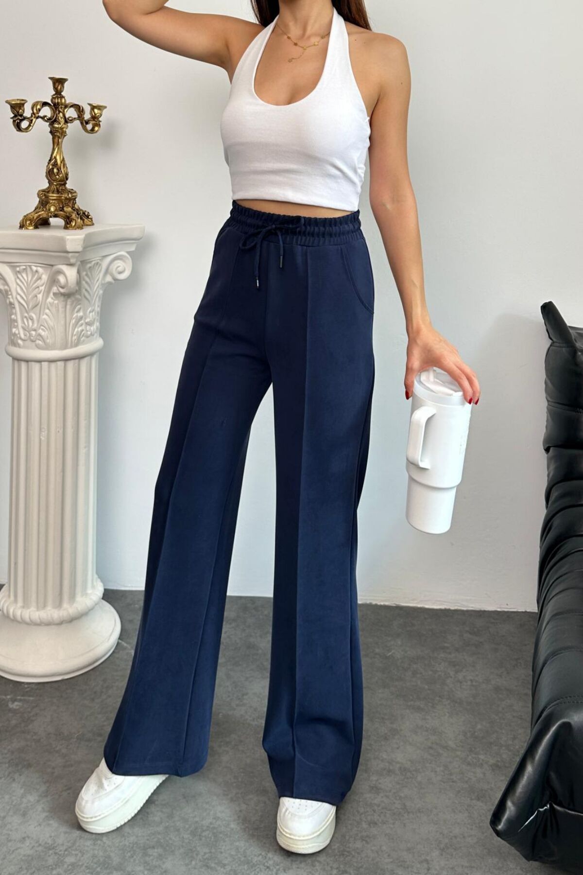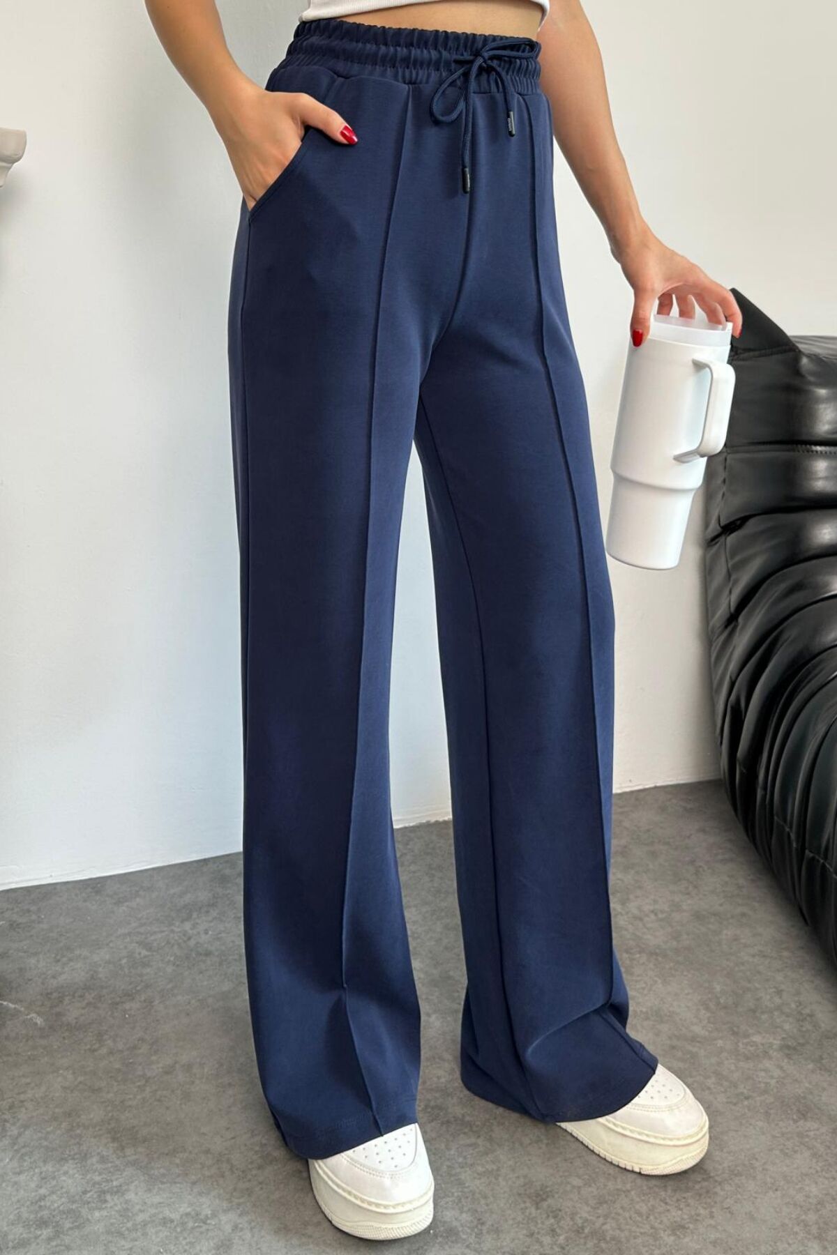 Balenbi Premium Modal Kumaş Çımalı Palazzo Kadın Pantolon 1115 40 - Lacivert