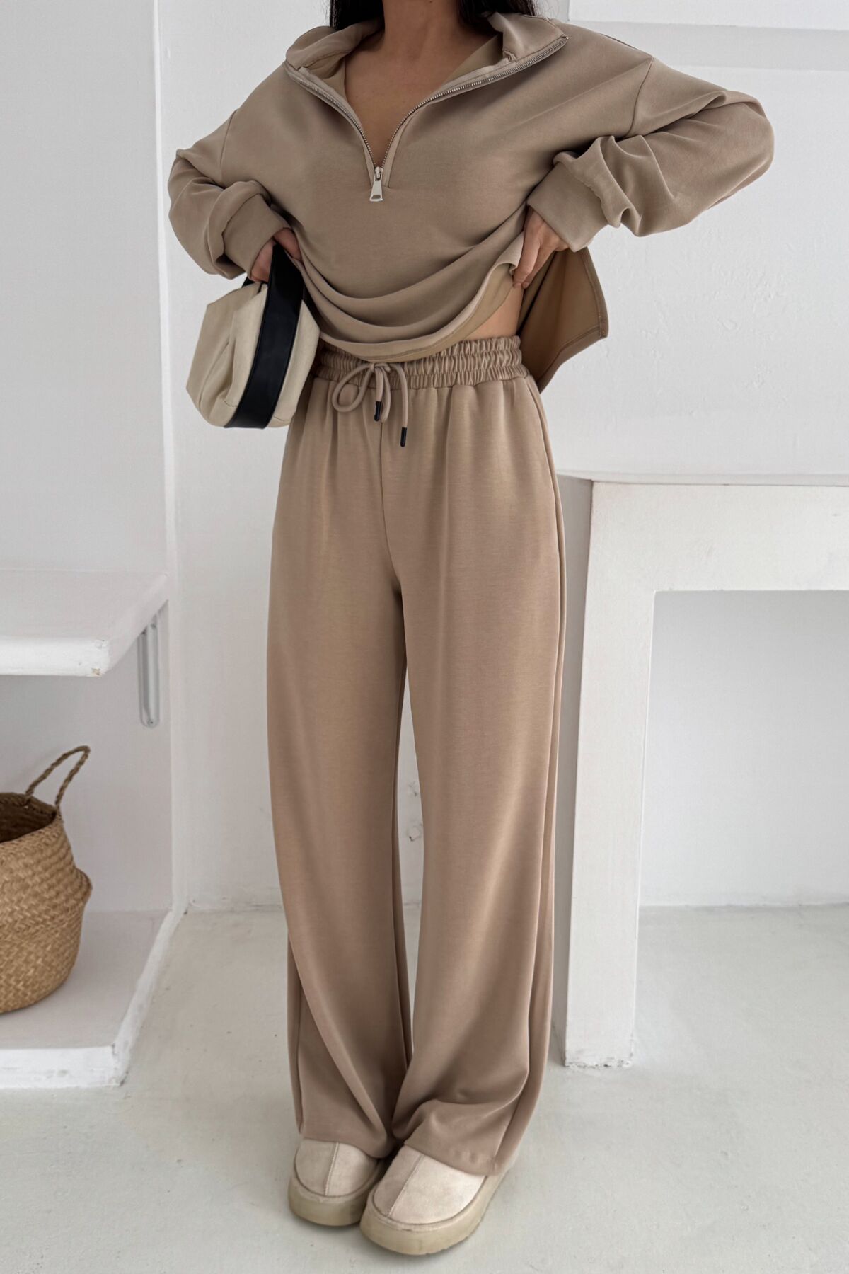 Balenbi Premium Modal Kumaş Fermuarlı Yaka Kadın Takım 1153 XL - Bej