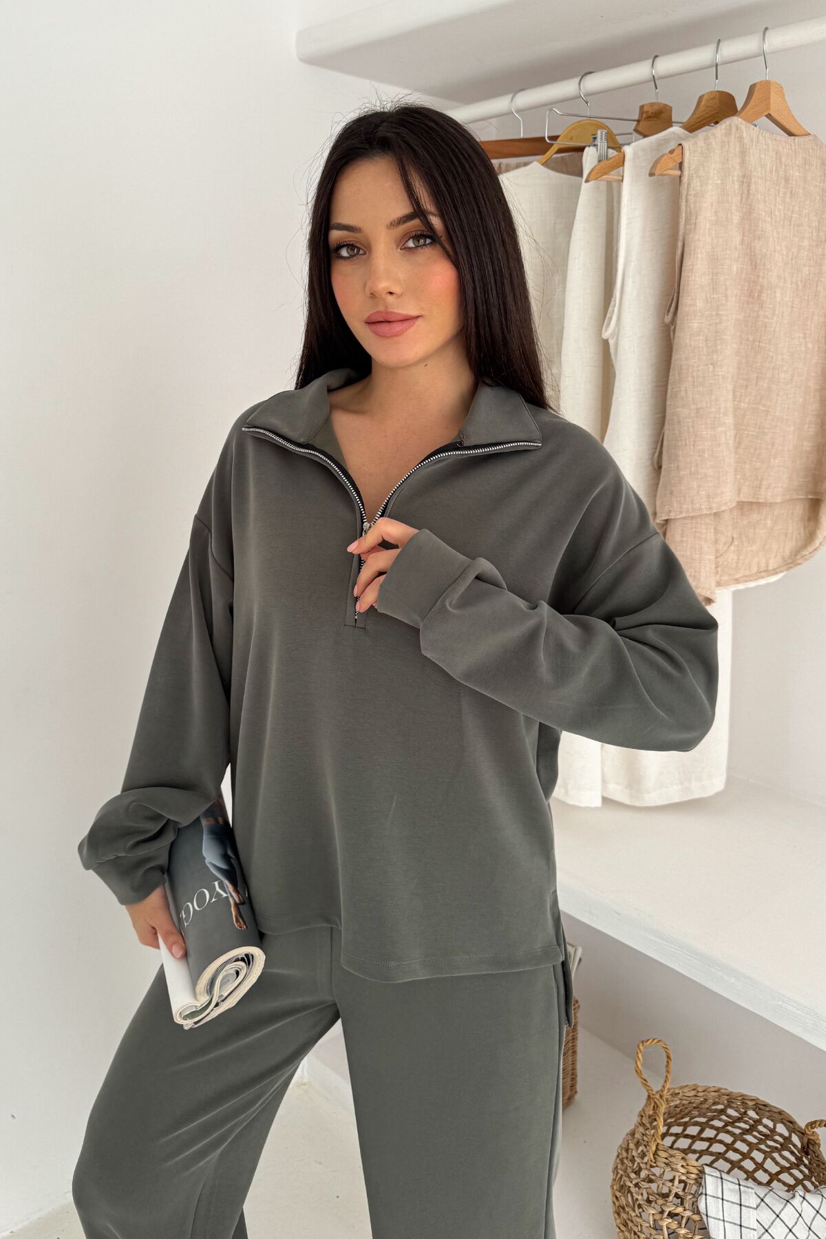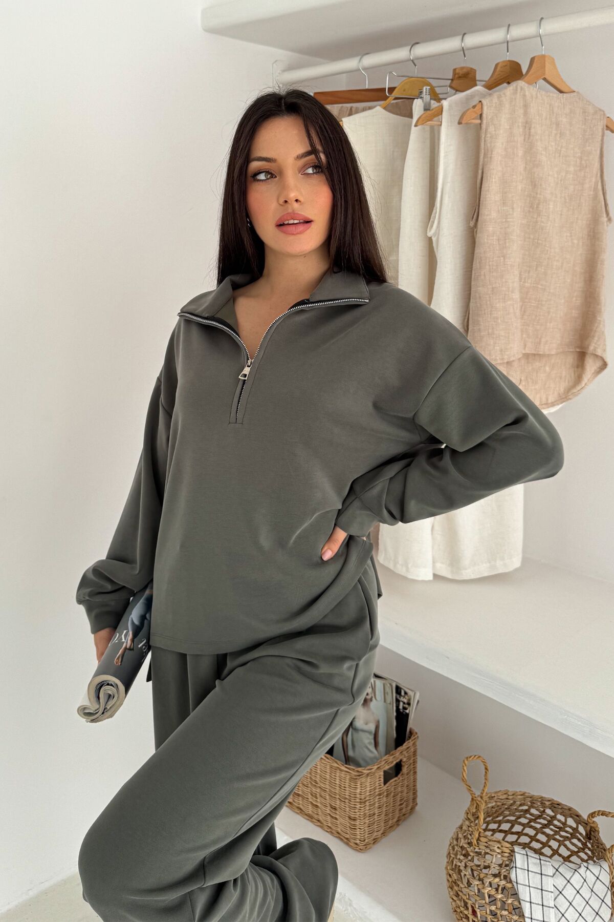Balenbi Premium Modal Kumaş Fermuarlı Yaka Kadın Takım 1153 S - Haki