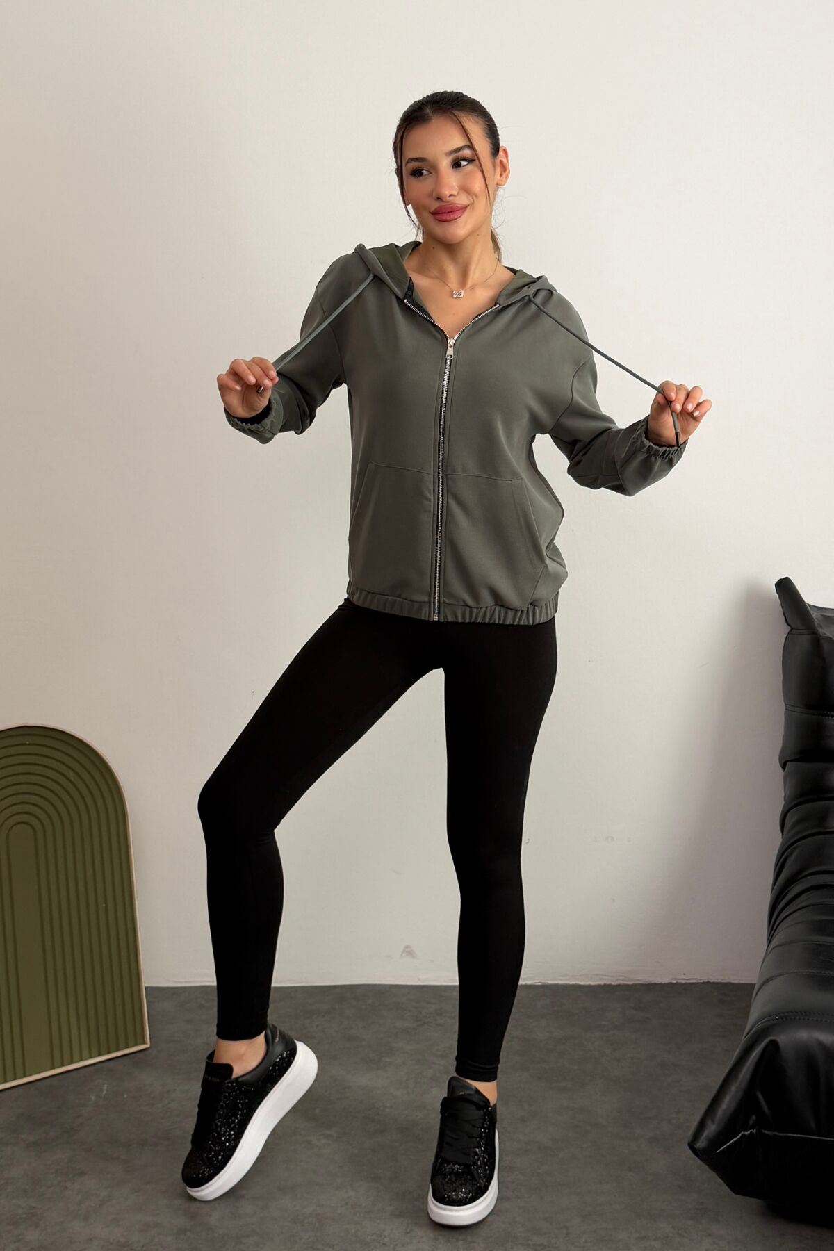 Tam fermuar kapaması ve kapüşon detayıyla hem sportif hem de şık kombinlere kolayca entegre olur.