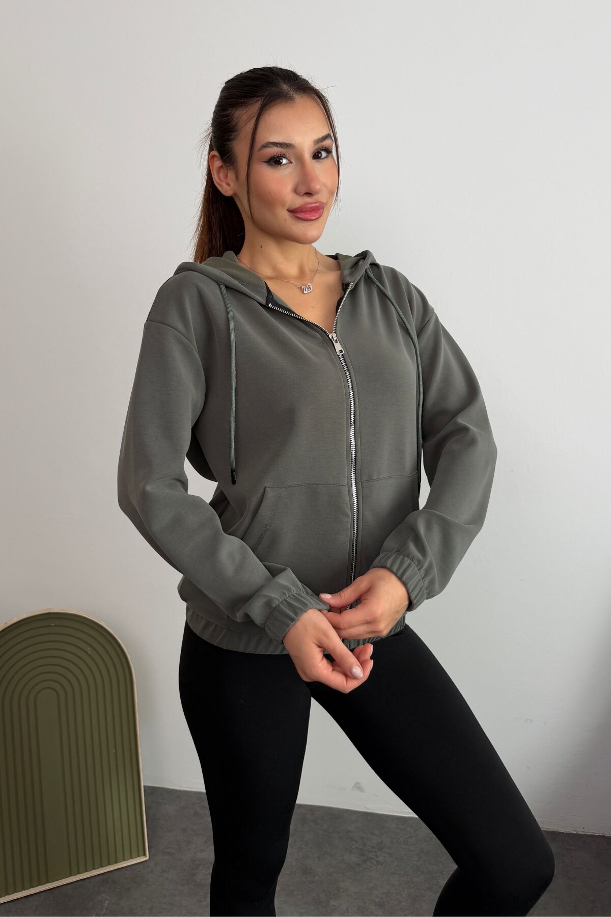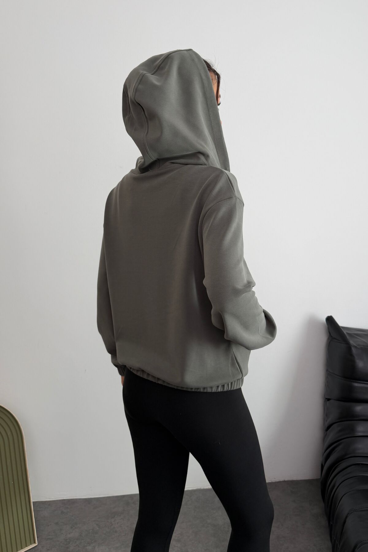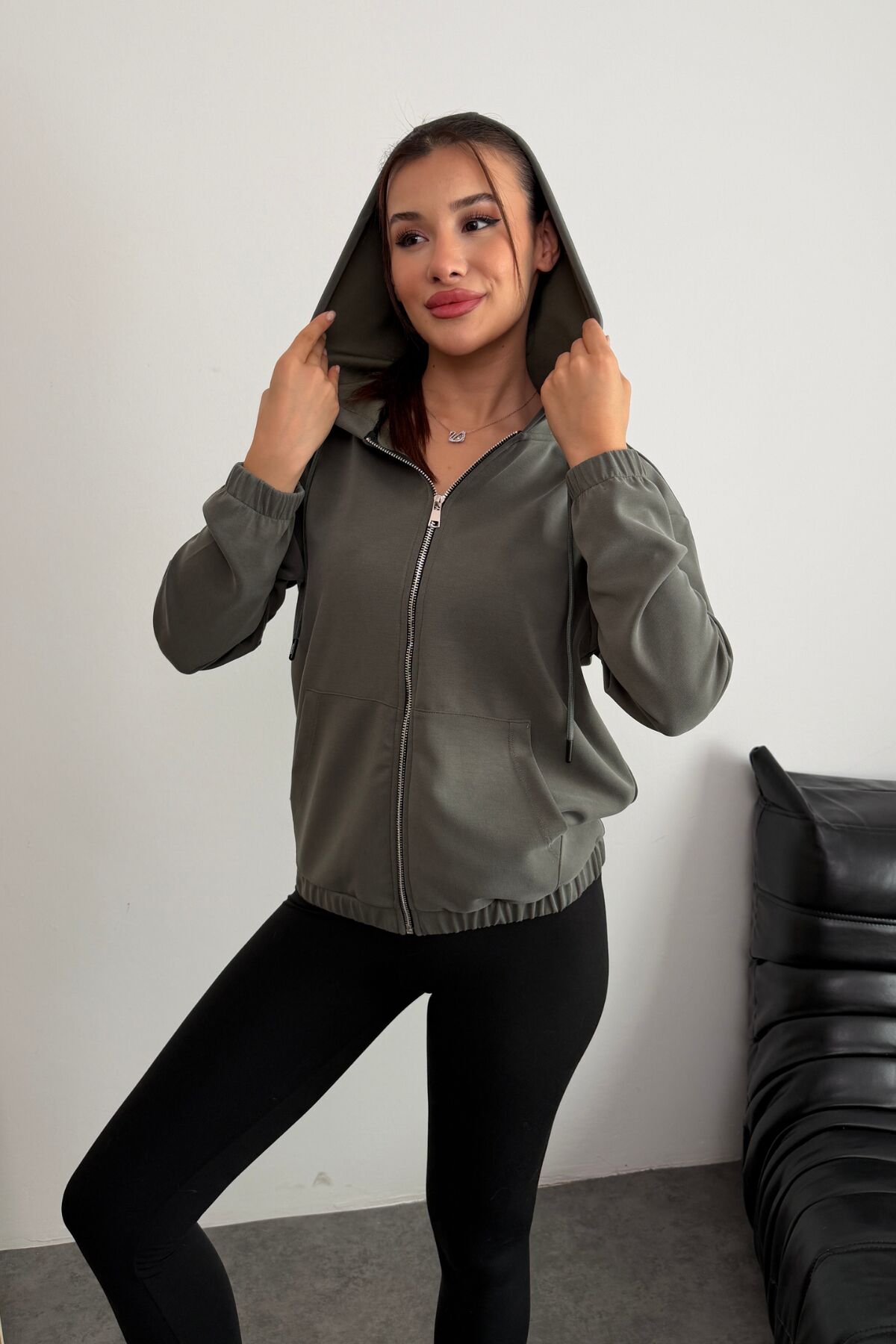Balenbi Premium Modal Kumaş Kapüşonlu Kadın Hırka 1149 S - Haki