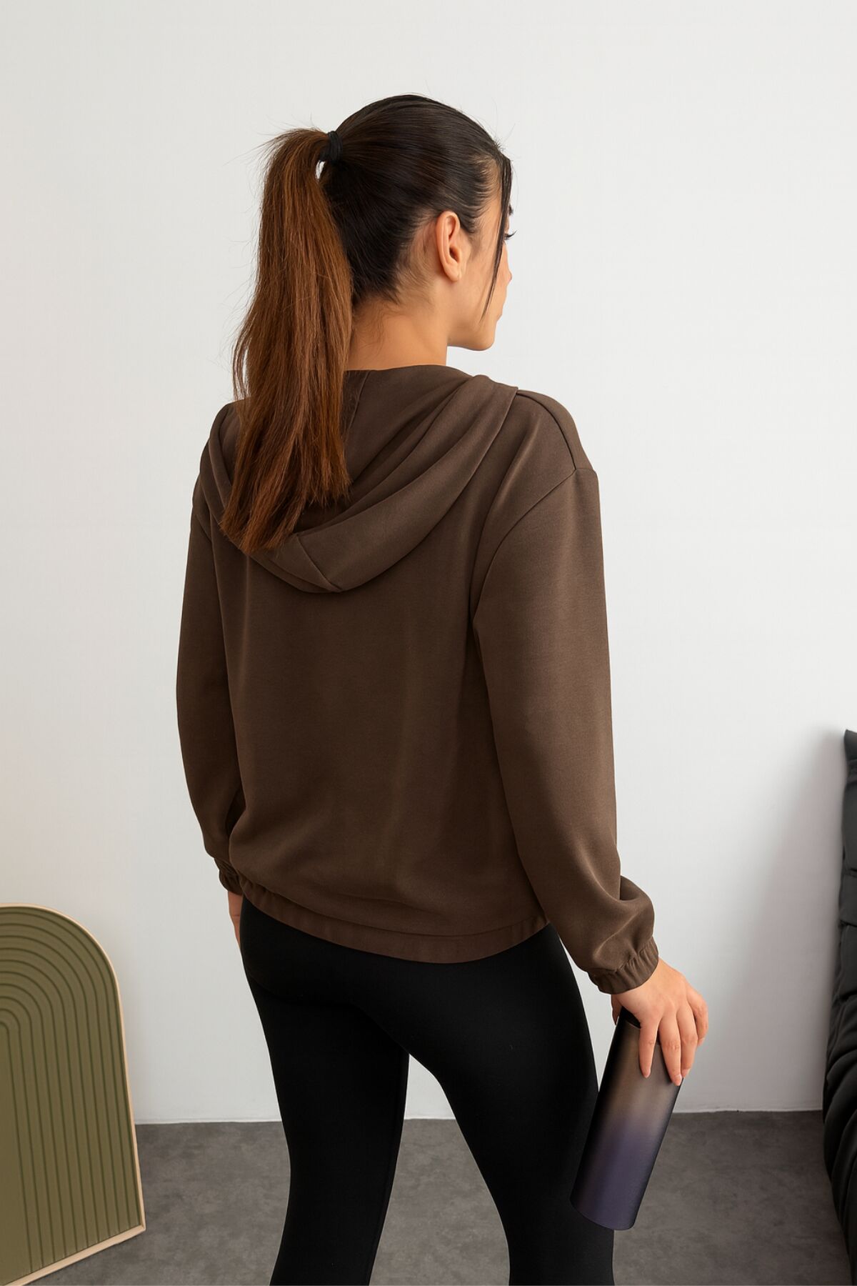 Balenbi Premium Modal Kumaş Kapüşonlu Kadın Hırka 1149 L - Kahverengi