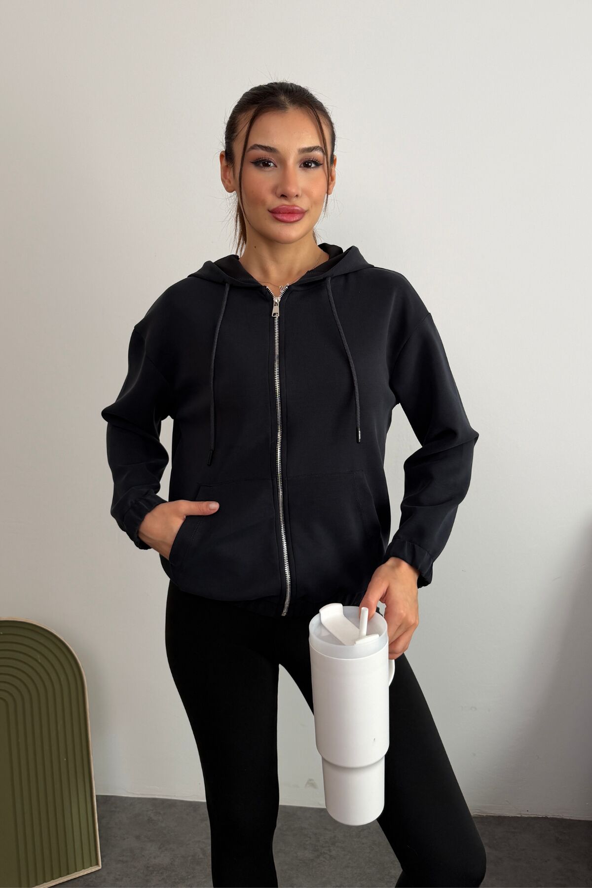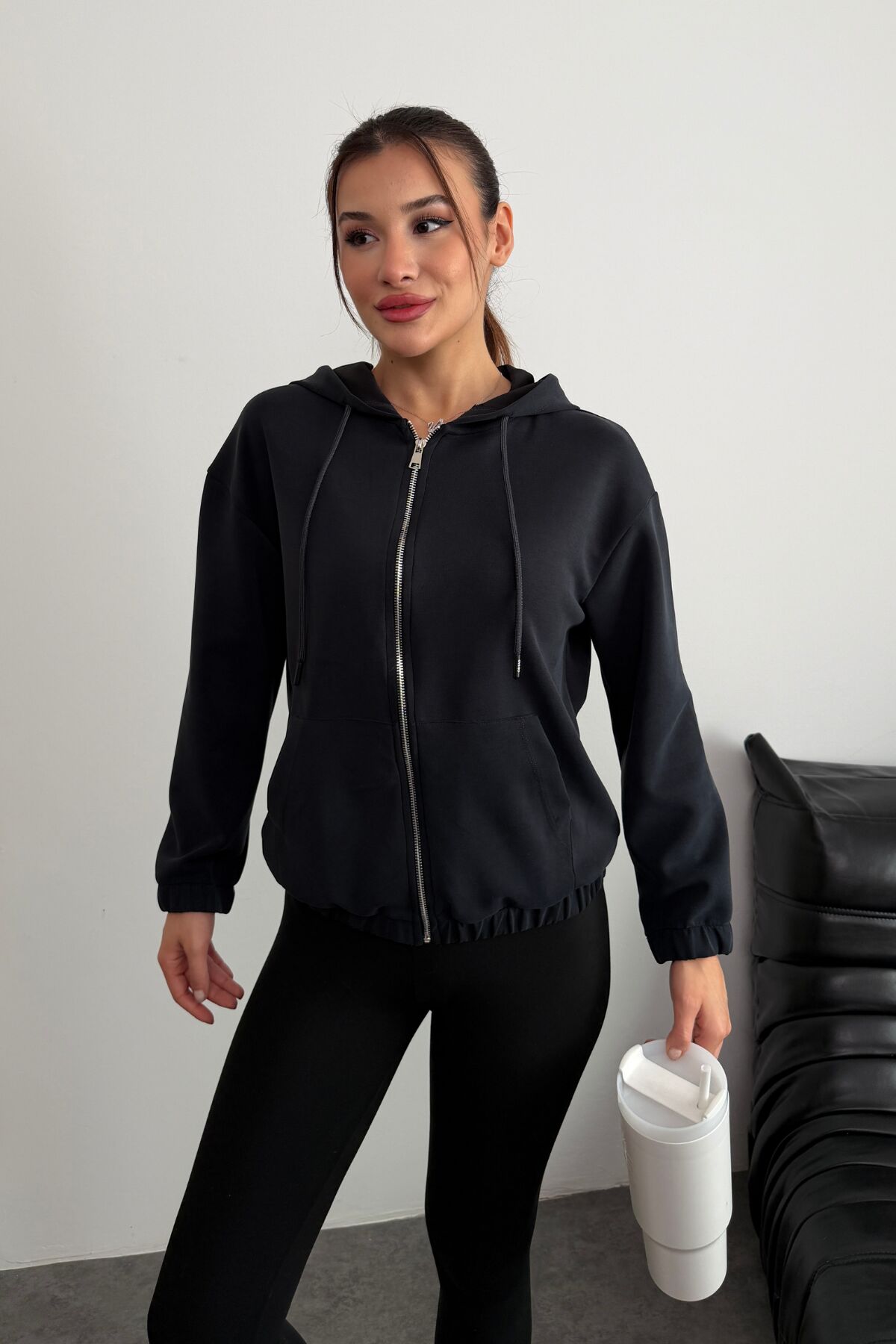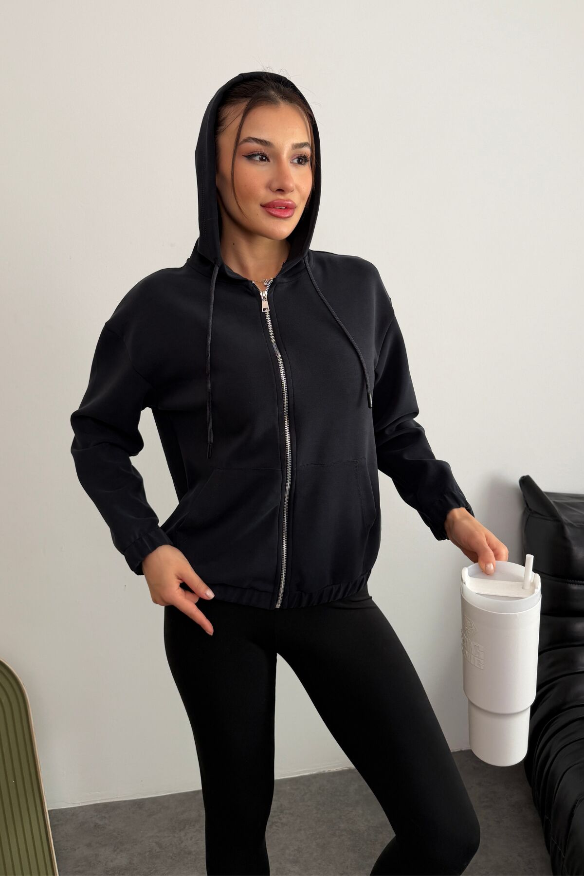 Tam fermuar kapaması ve kapüşon detayıyla hem sportif hem de şık kombinlere kolayca entegre olur.