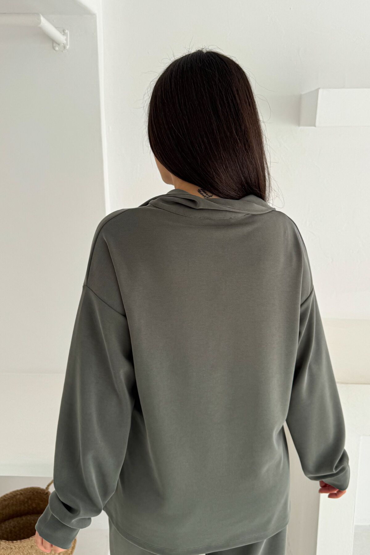 Balenbi Premium Modal Kumaş Yarım Fermuar Kadın Sweatshirt 1114 M - Haki