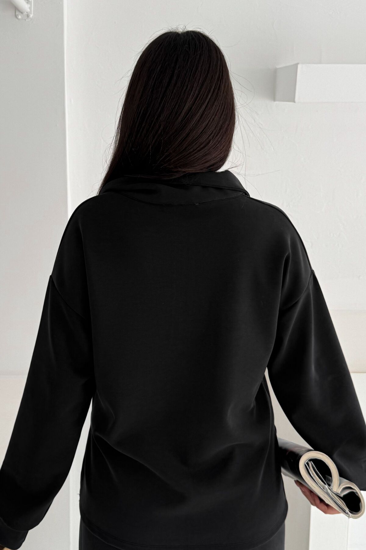 Balenbi Premium Modal Kumaş Yarım Fermuar Kadın Sweatshirt 1114 XL - Siyah