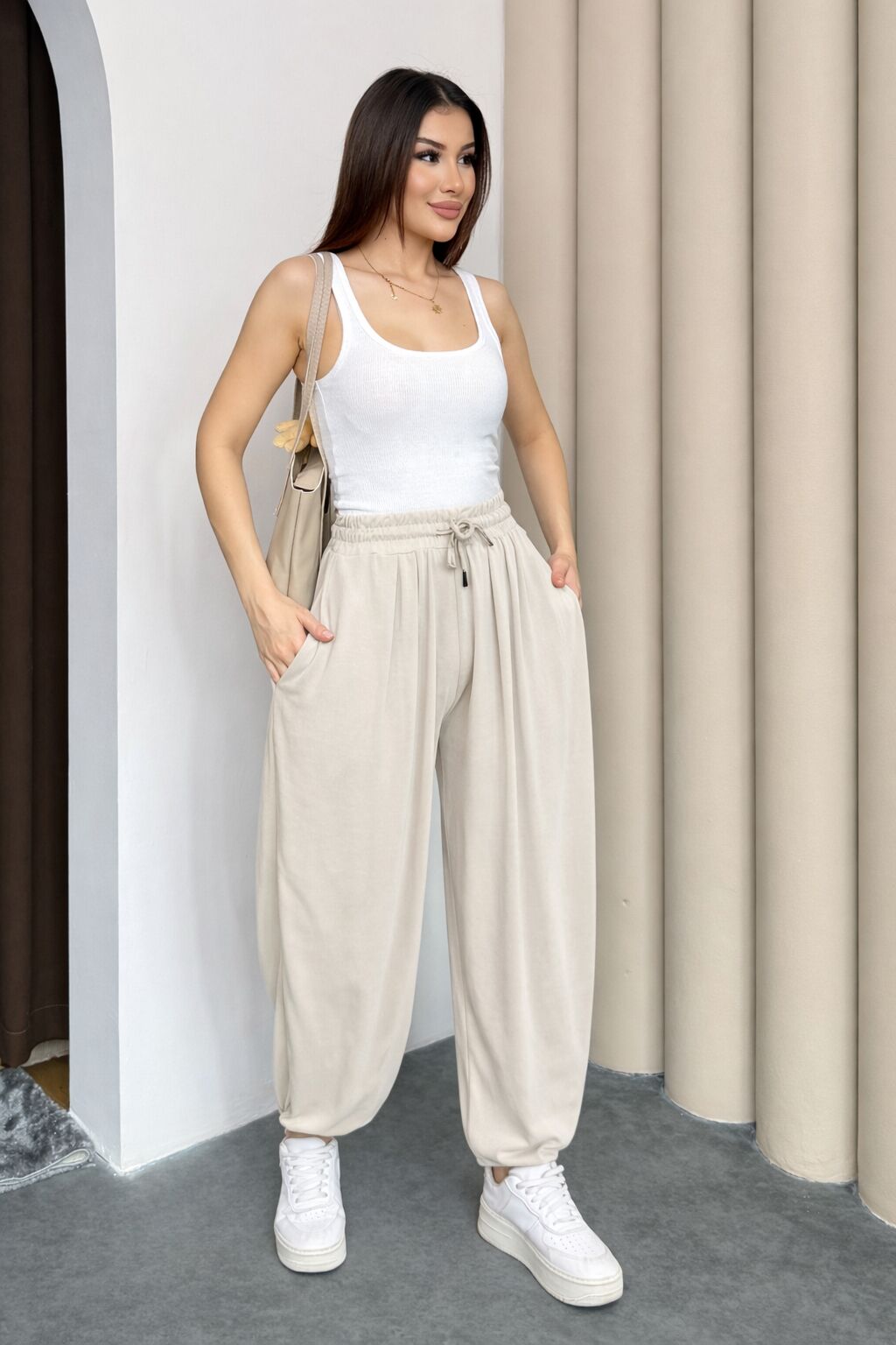 Balenbi Premium Stirrup Model Kadın Modal Şalvar Pantolon 1184 42 - Taş