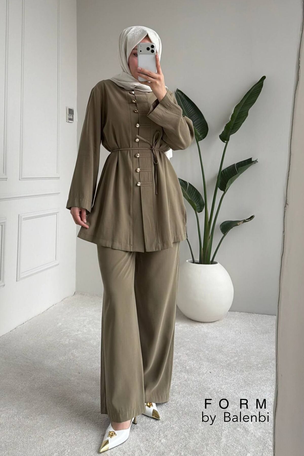 Balenbi Rahat Kesim Düğme Detaylı Tesettür Kadın Tnsel Takım 1166 – Form Serisi 40 - Haki