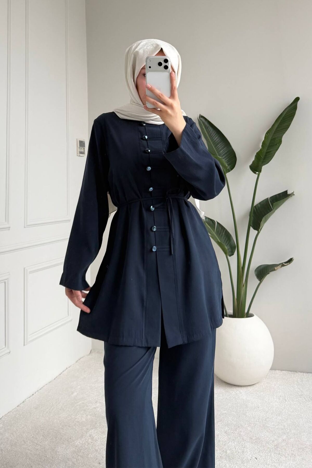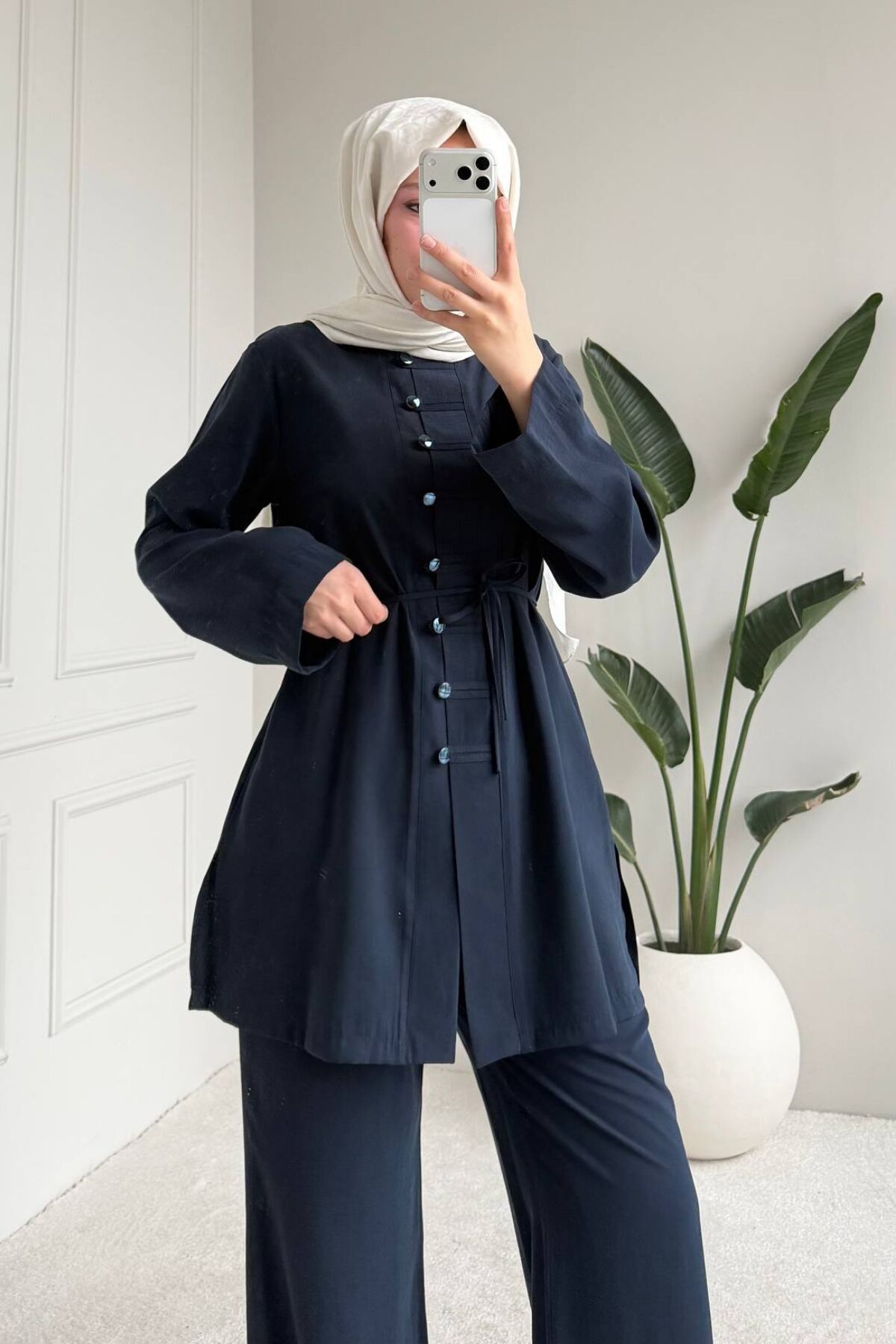 Balenbi Rahat Kesim Düğme Detaylı Tesettür Kadın Tnsel Takım 1166 – Form Serisi 42 - Lacivert