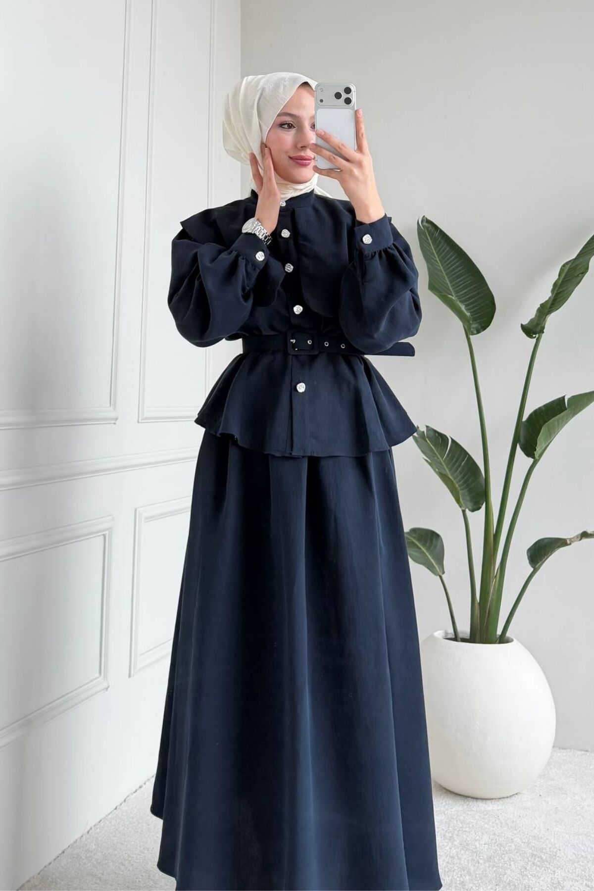 Balenbi Rahat Kesim Kemer Detaylı Tesettür Kadın Etekli Takım 1167 – Form Serisi 38 - Lacivert