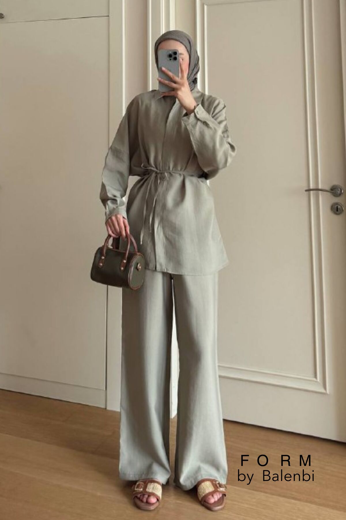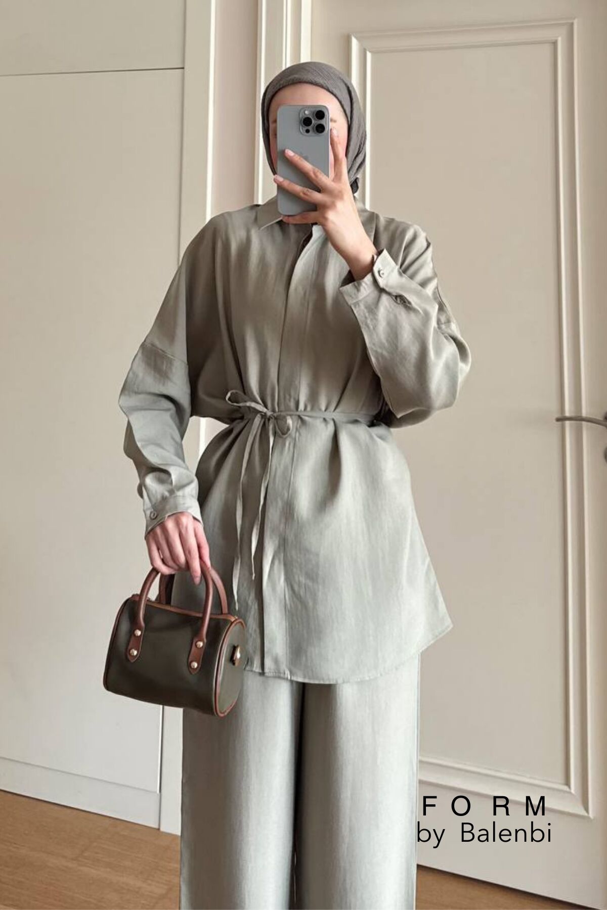 Balenbi Robası Dikiş Detaylı Tesettür Kadın Oversize Tnsel Takım 1174 – Form Serisi M/L - Haki