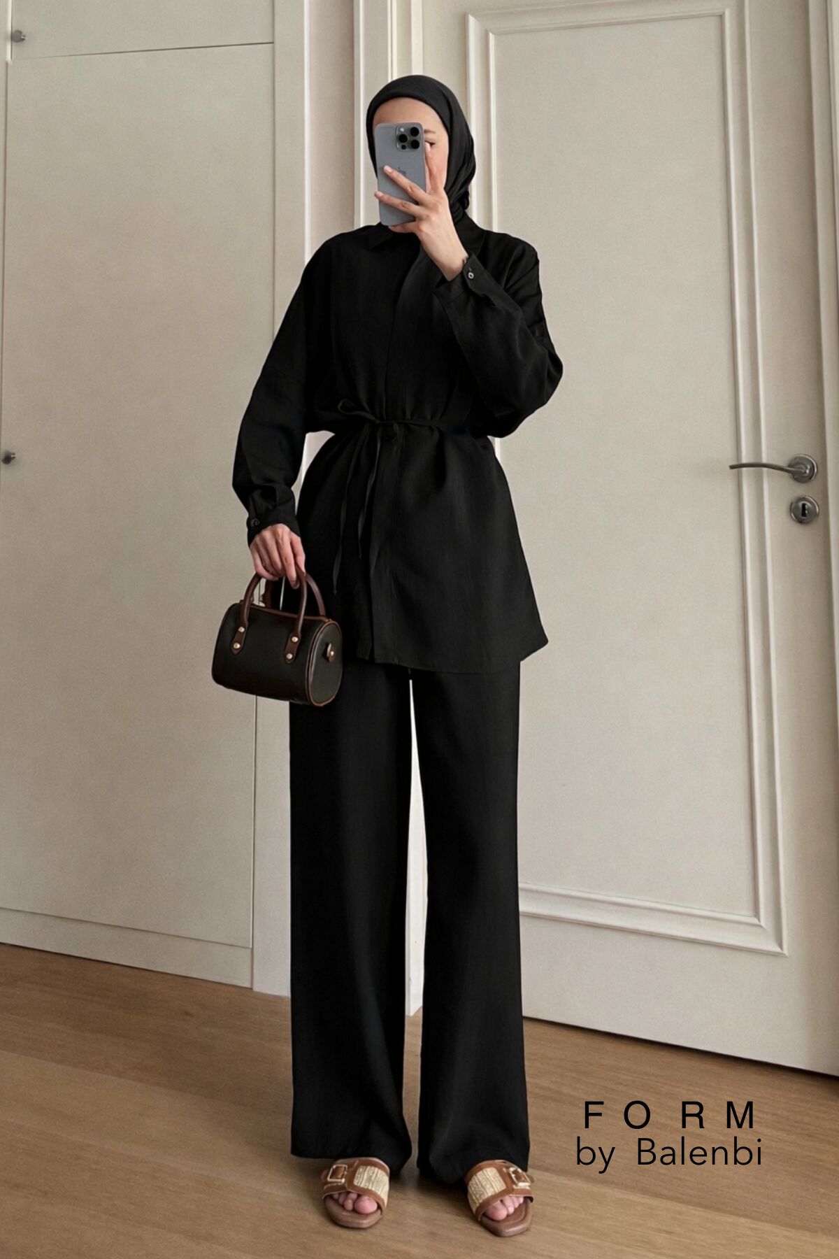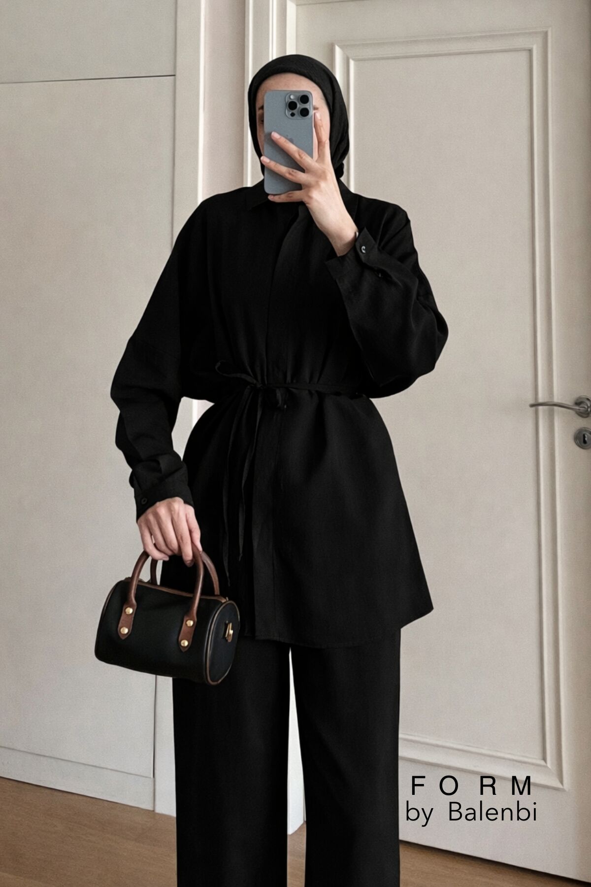 Balenbi Robası Dikiş Detaylı Tesettür Kadın Oversize Tnsel Takım 1174 – Form Serisi S/M - Siyah