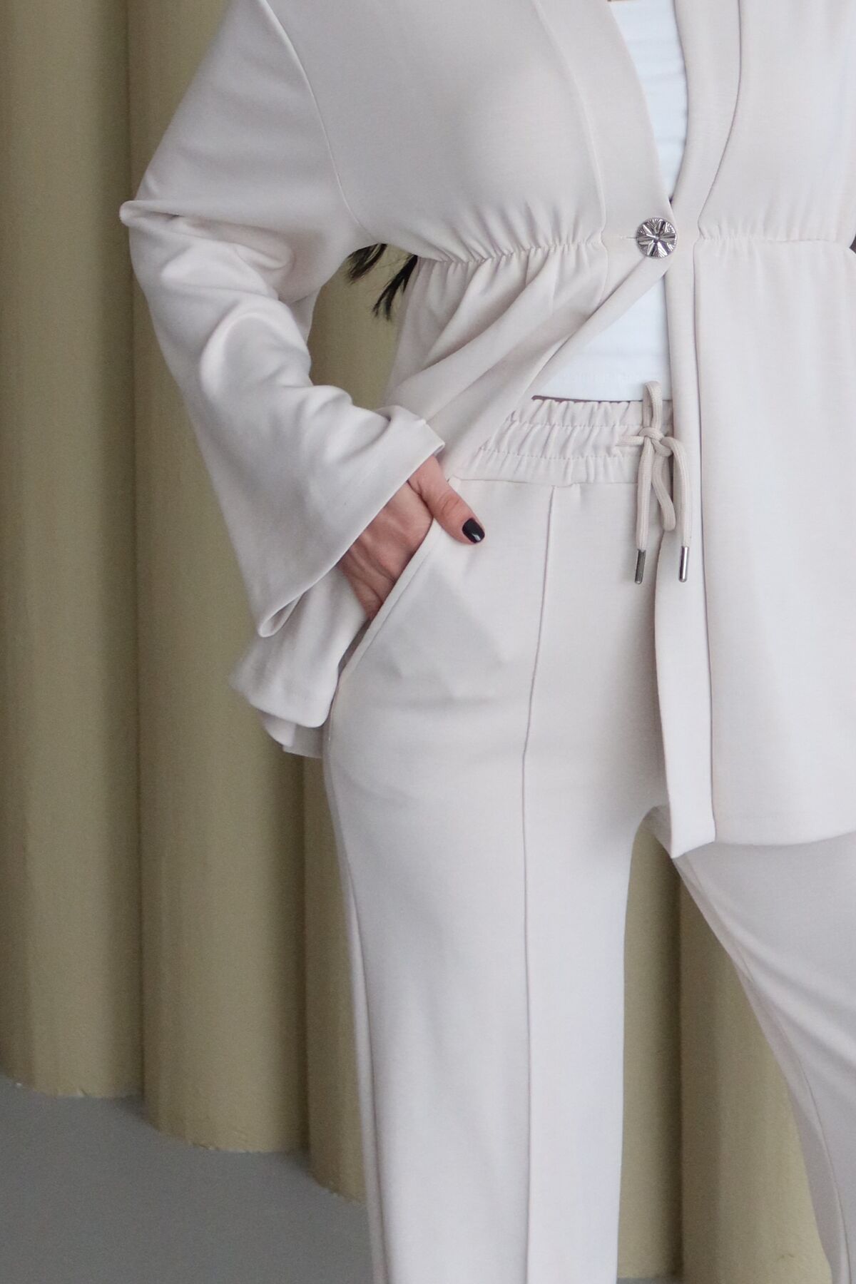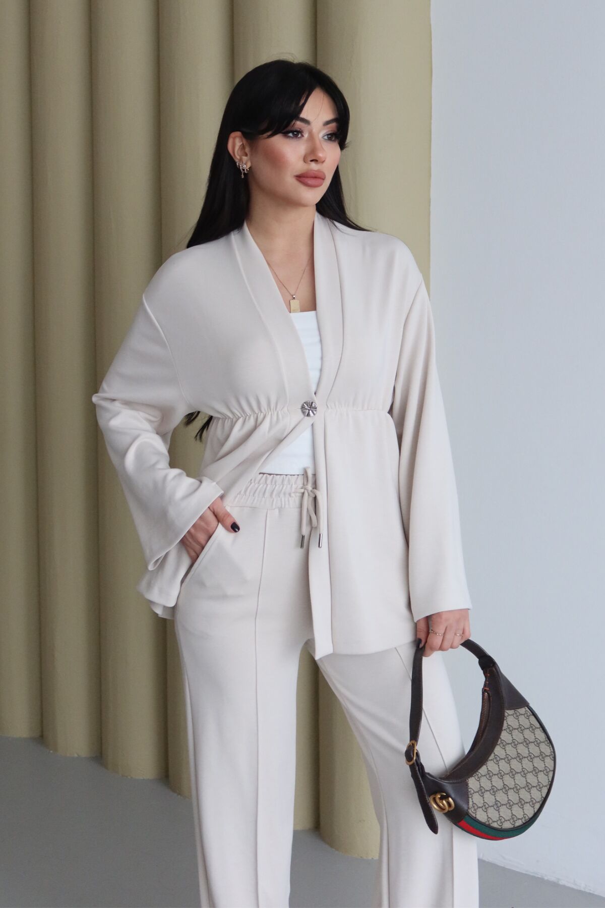 Balenbi Şal Yaka Büzgü Detaylı Rahat Kalıp Modal Kimono Tesettür Takım 1179