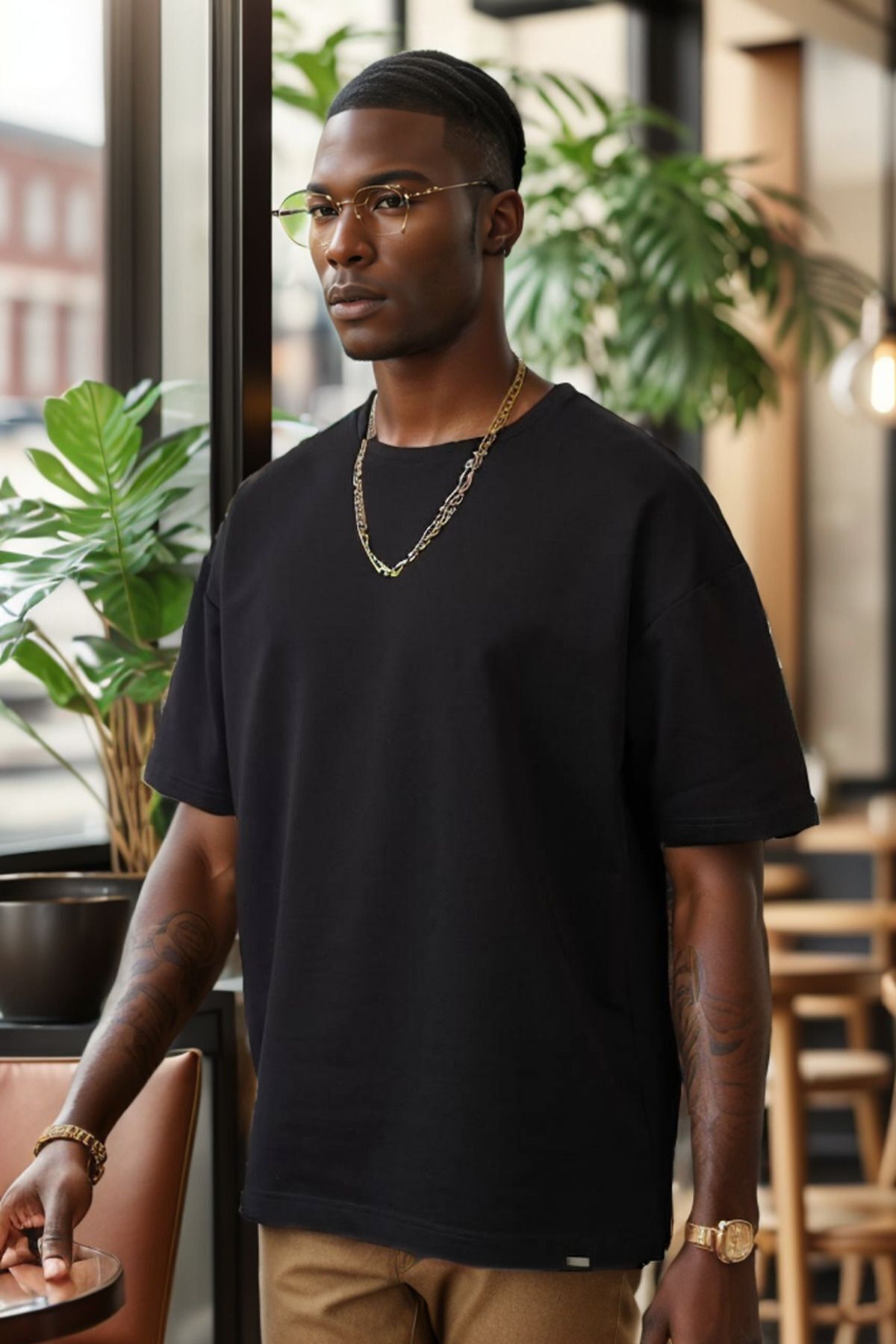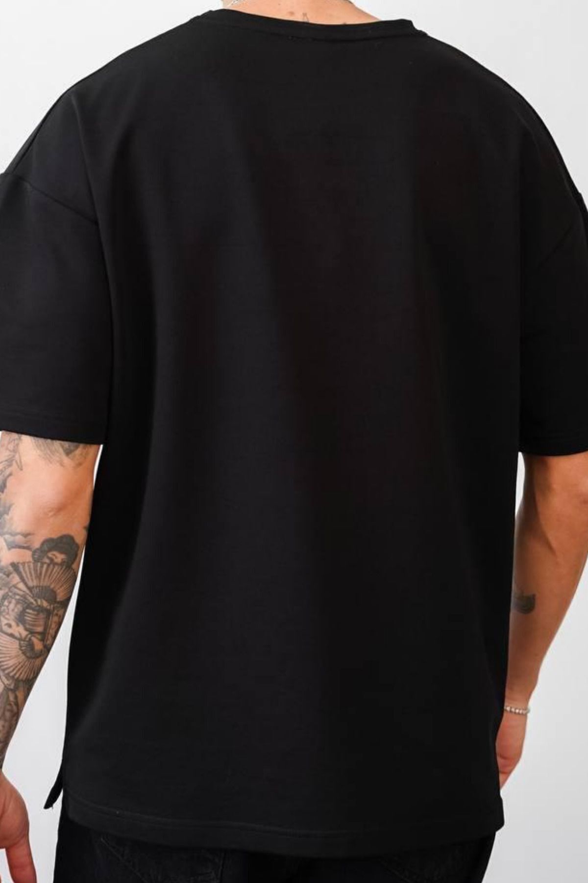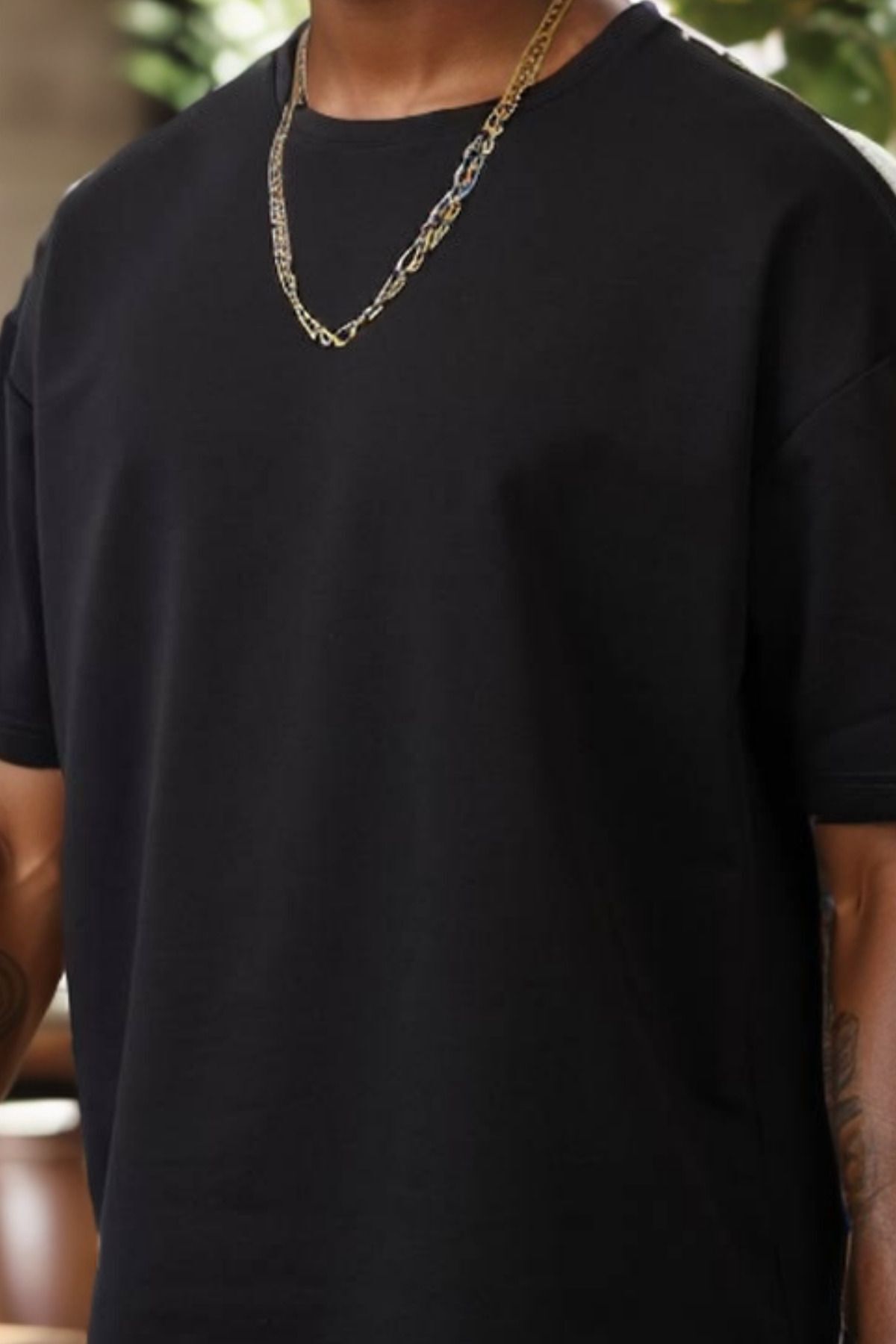 Balenbi Unisex Bisiklet Yaka 2 Iplik Basic Oversize Penye Tişört 1009 M - Black
