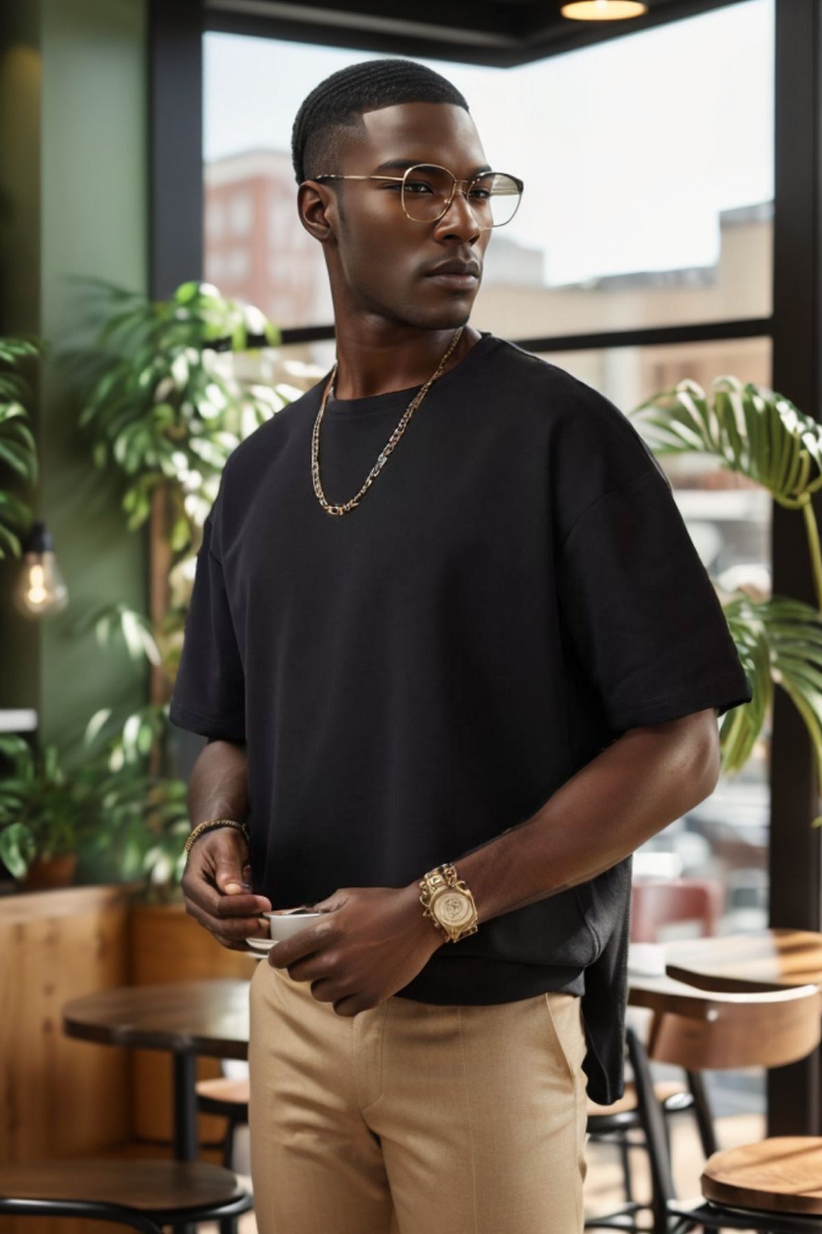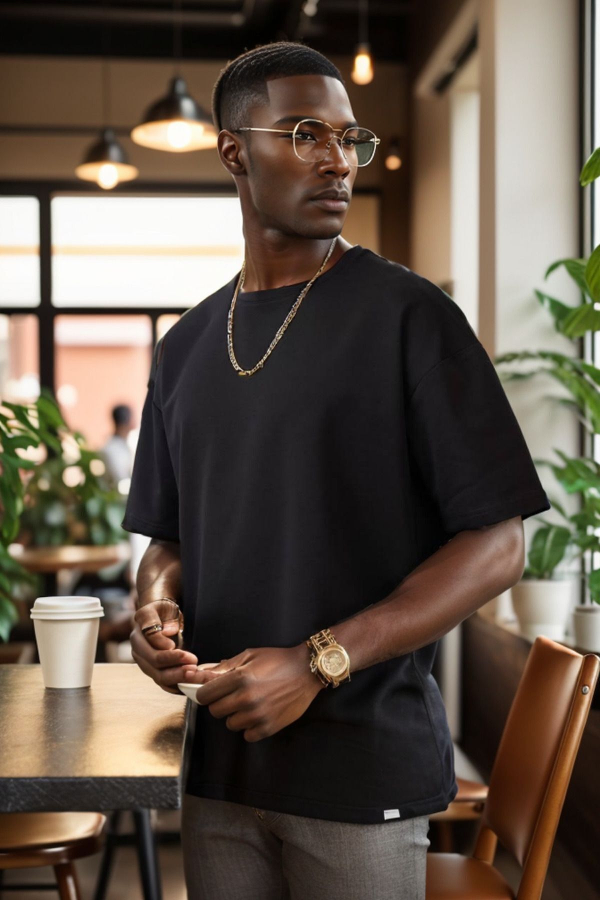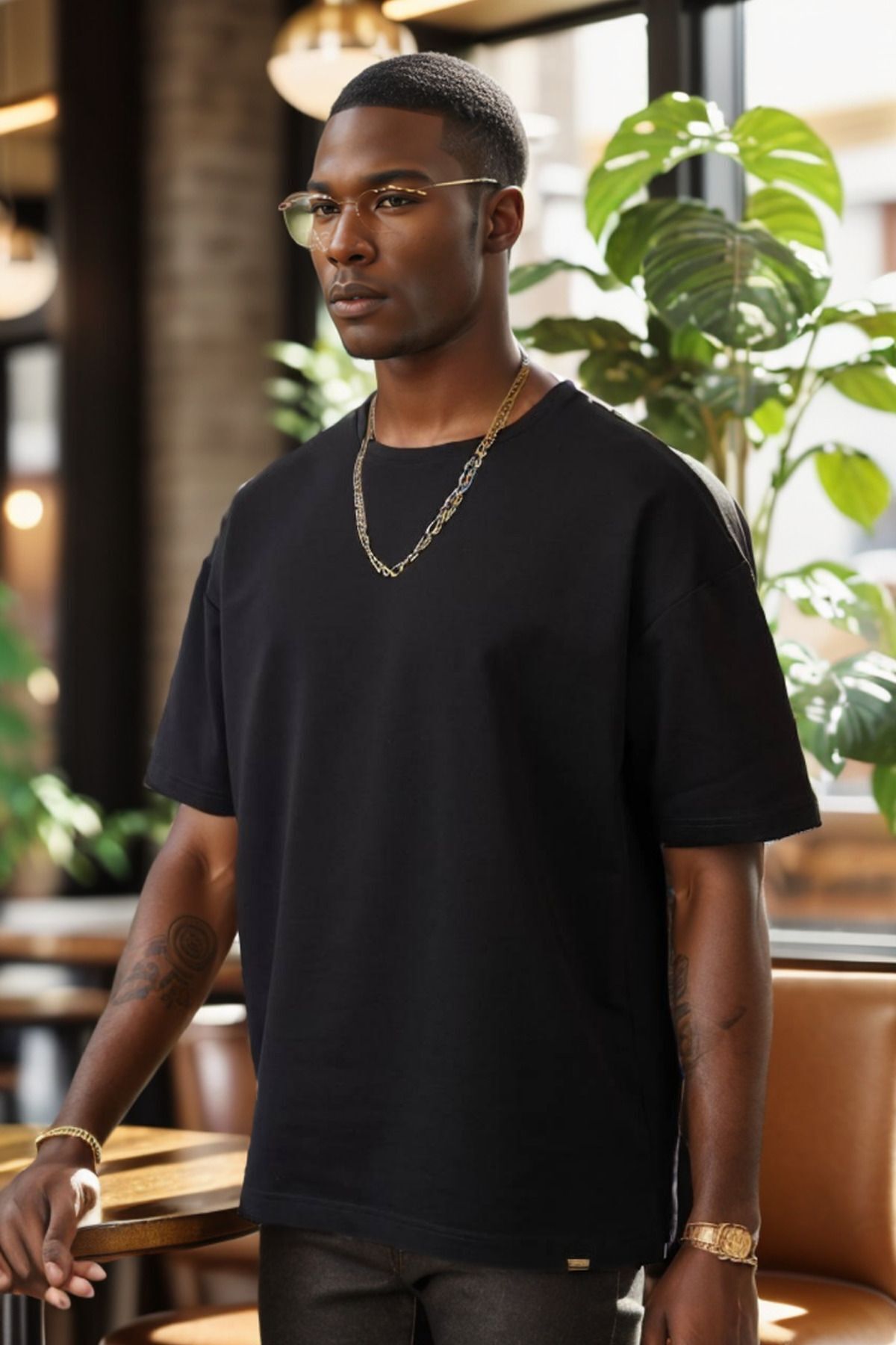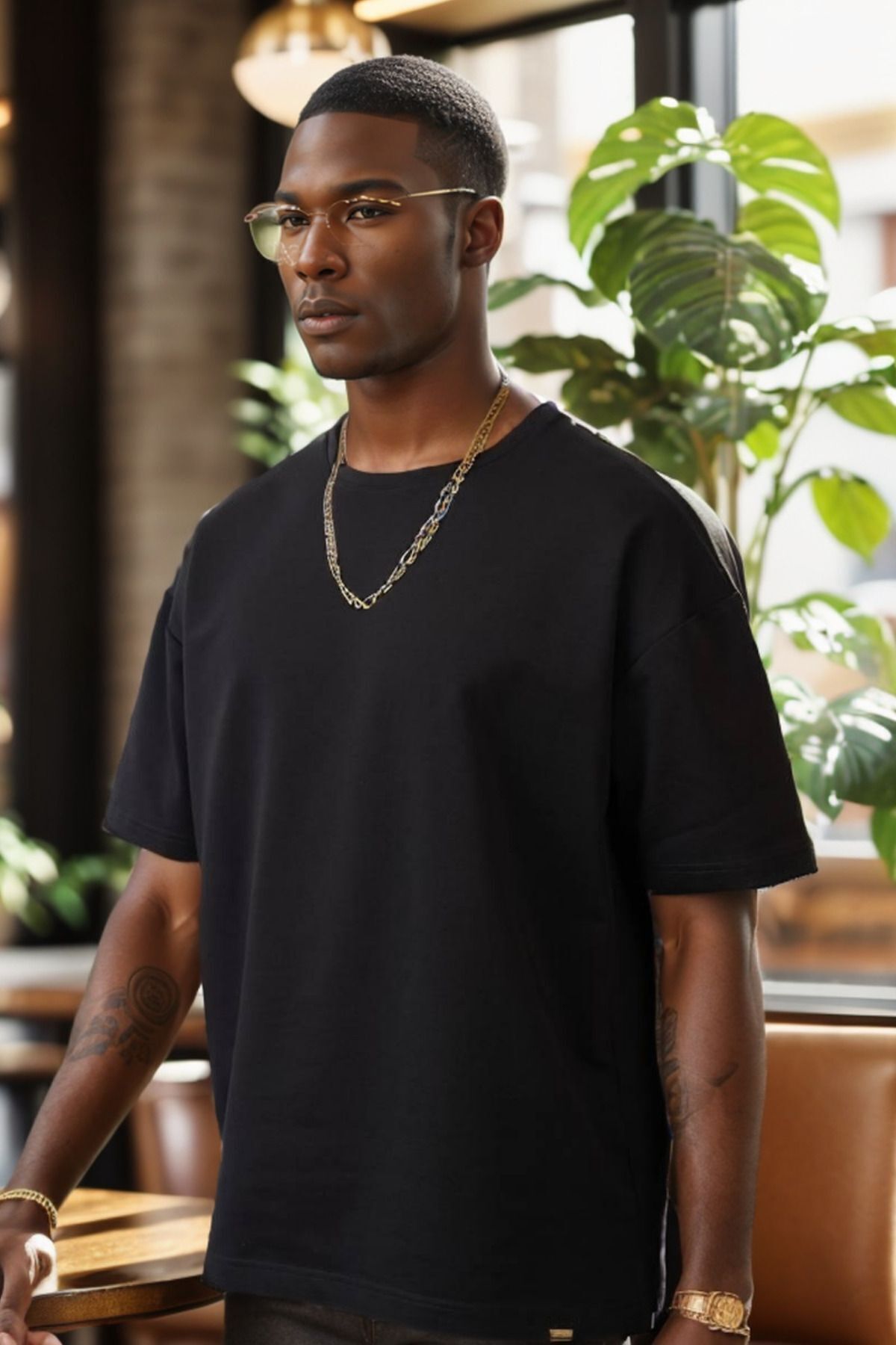 Balenbi Unisex Bisiklet Yaka 2 Iplik Basic Oversize Penye Tişört 1009 M - Black